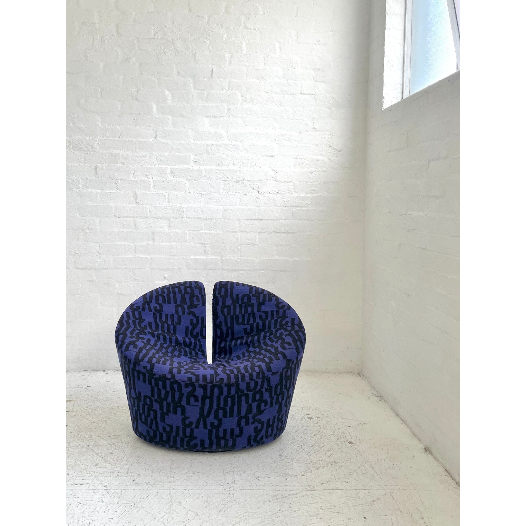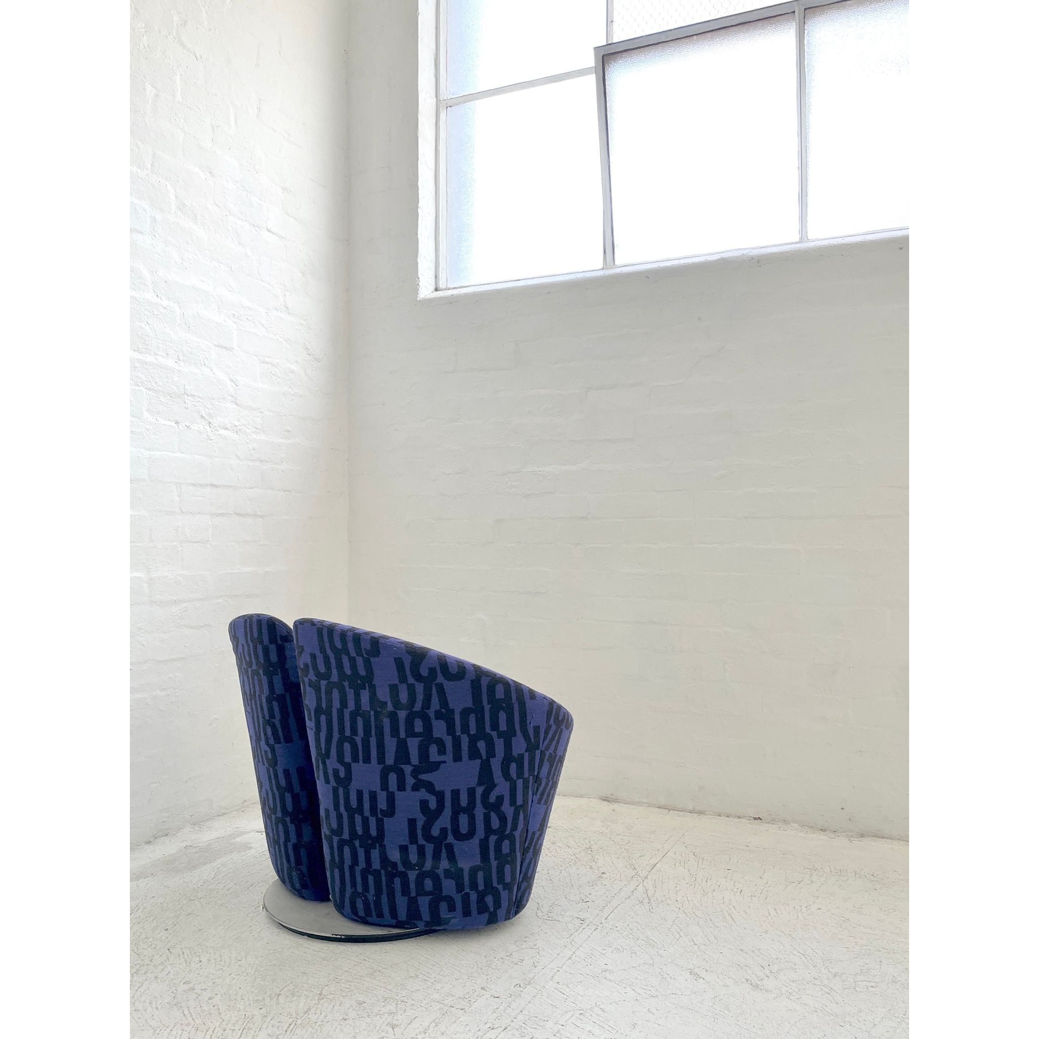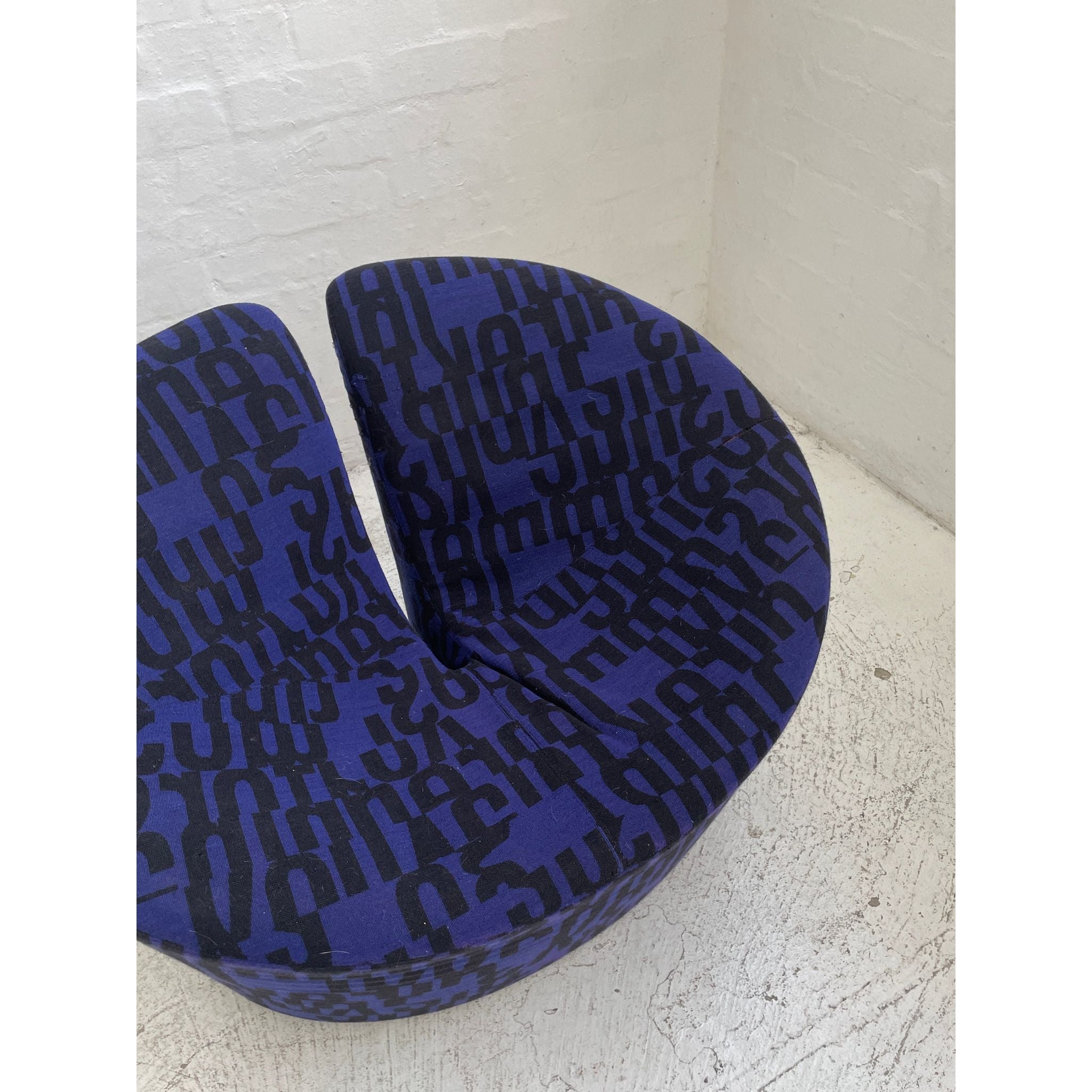 Designed in 1998 by Flemming Busk and Stephan B. Hertzog. Produced by +Halle, Denmark. Upholstered in Kvadrat 'Letters'. In vintage condition with wear and tear.