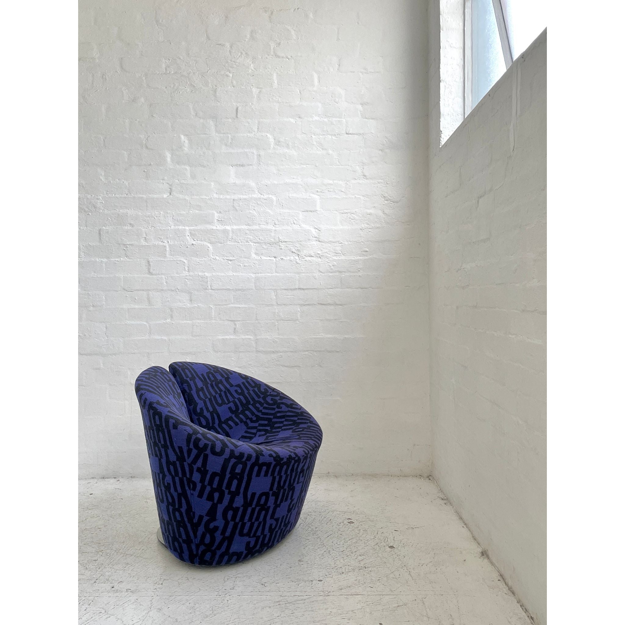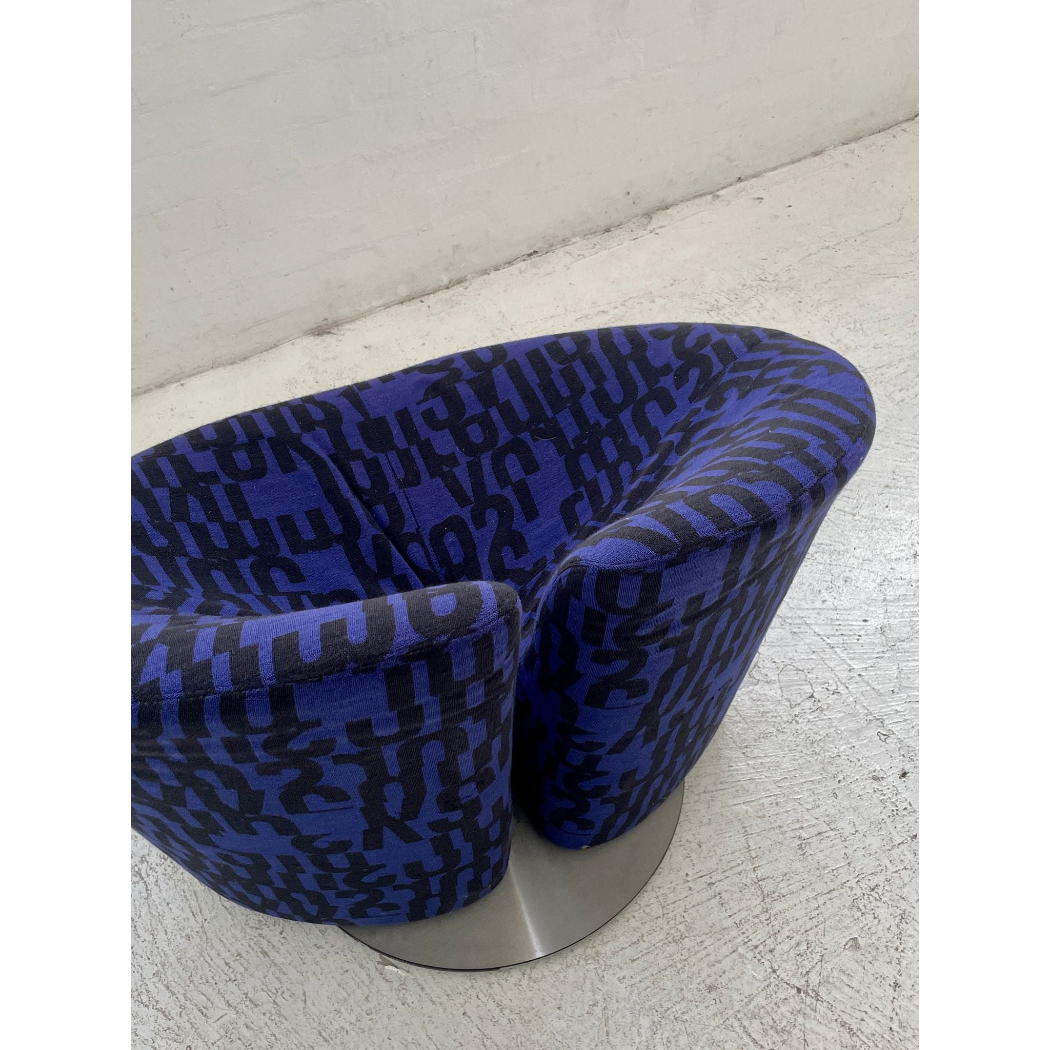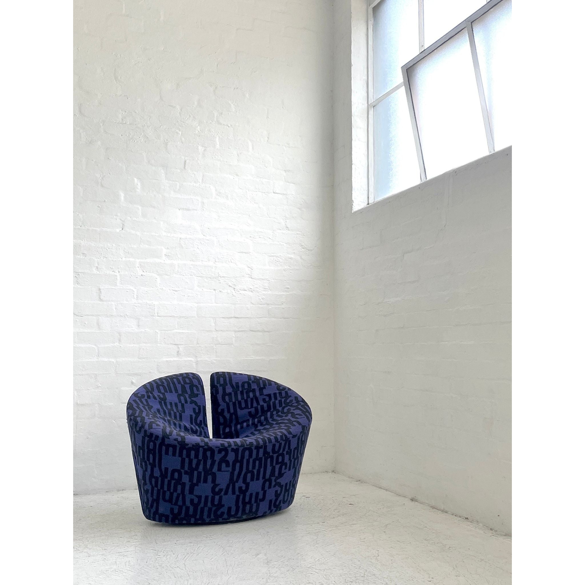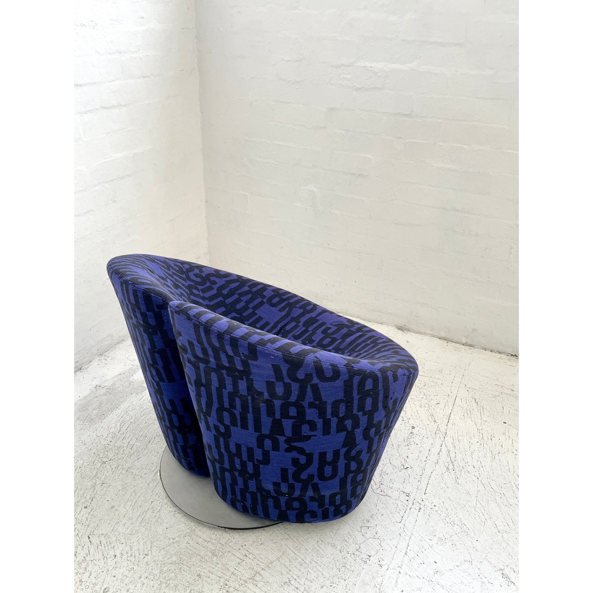 Designed in 1998 by Flemming Busk and Stephan B. Hertzog. Produced by +Halle, Denmark. Upholstered in Kvadrat 'Letters'. In vintage condition with wear and tear.