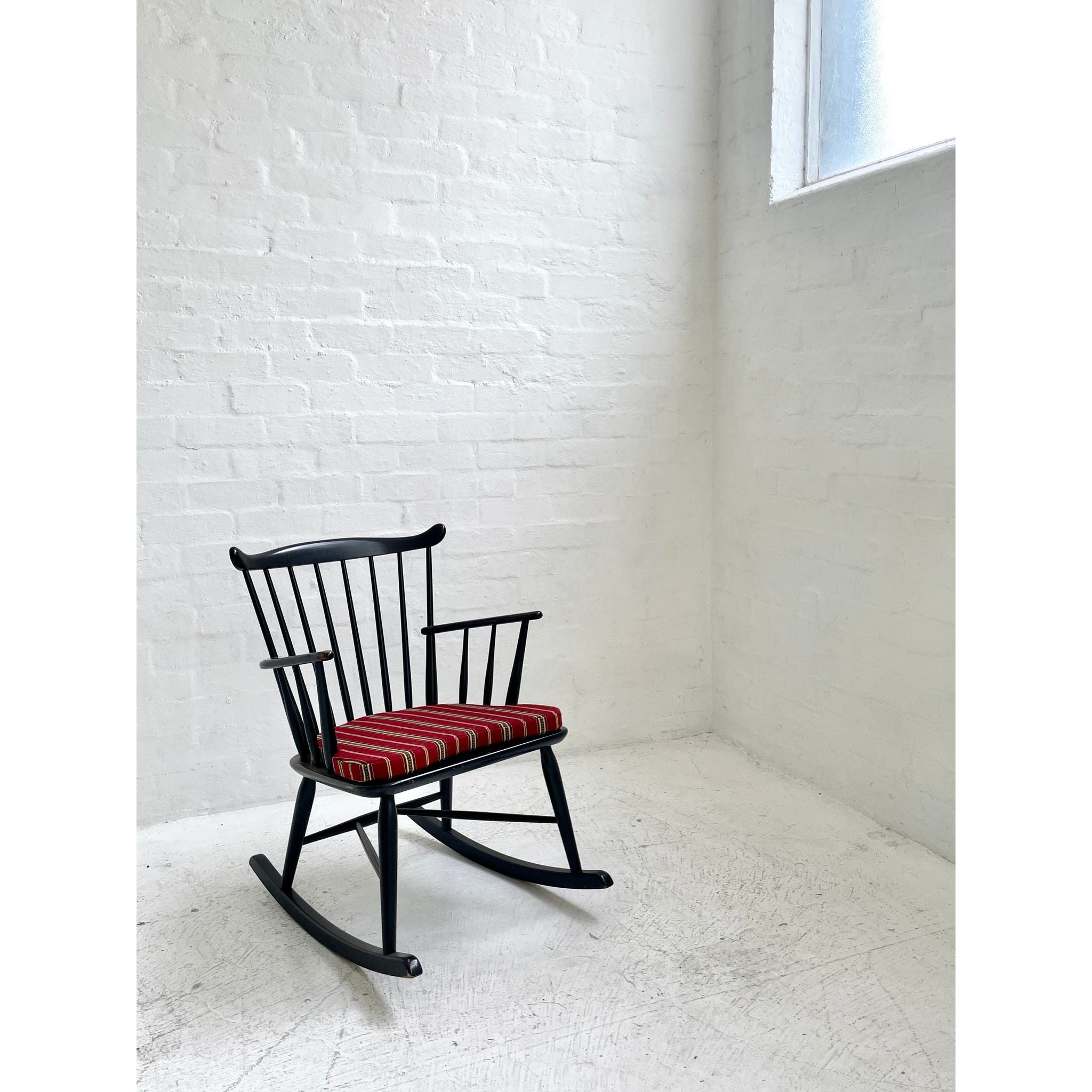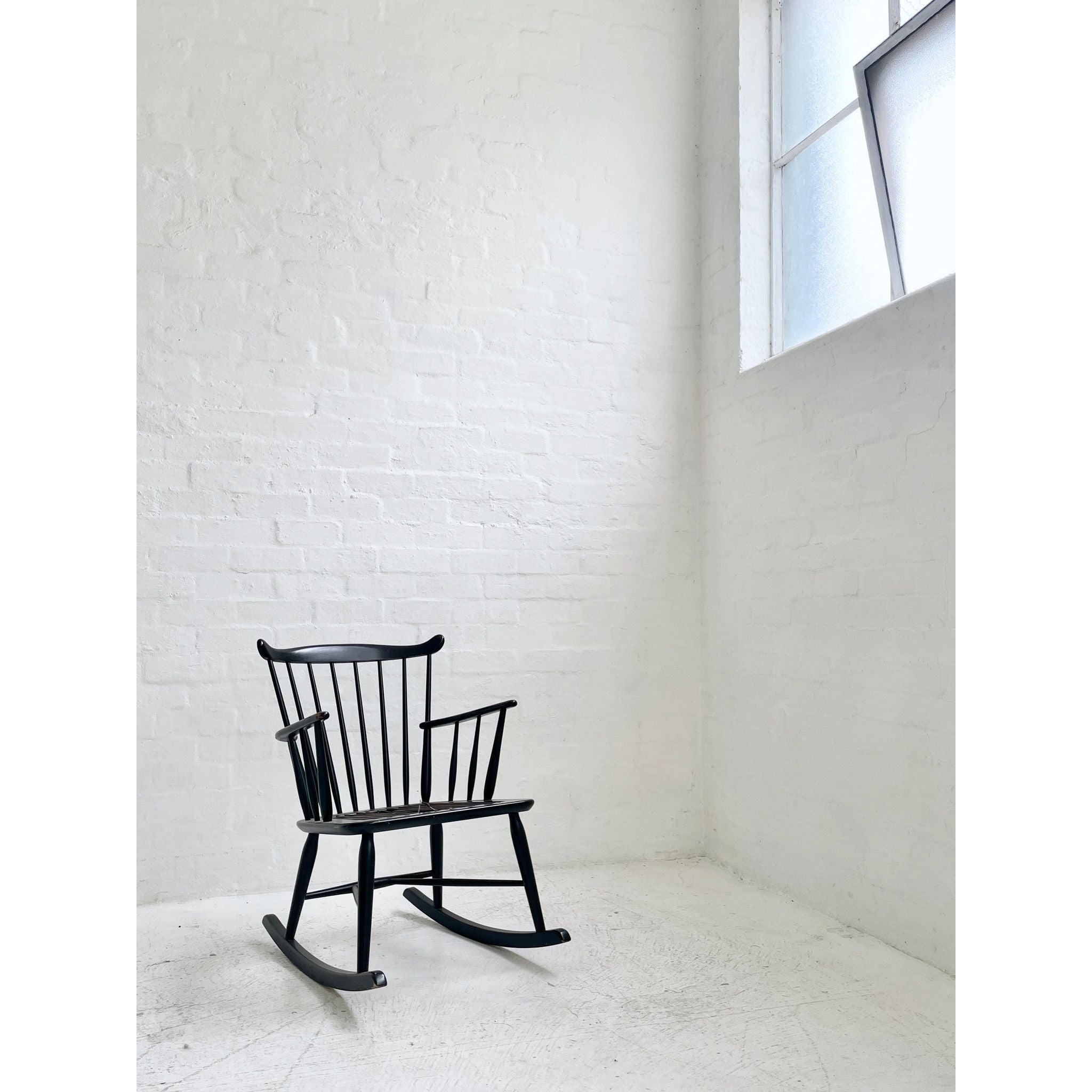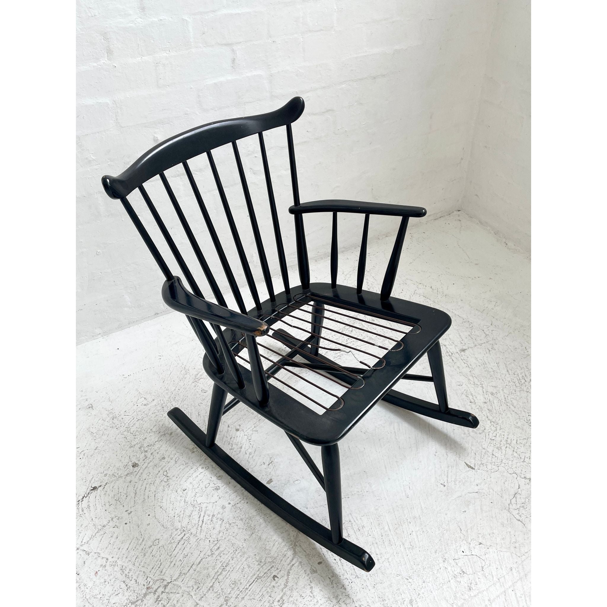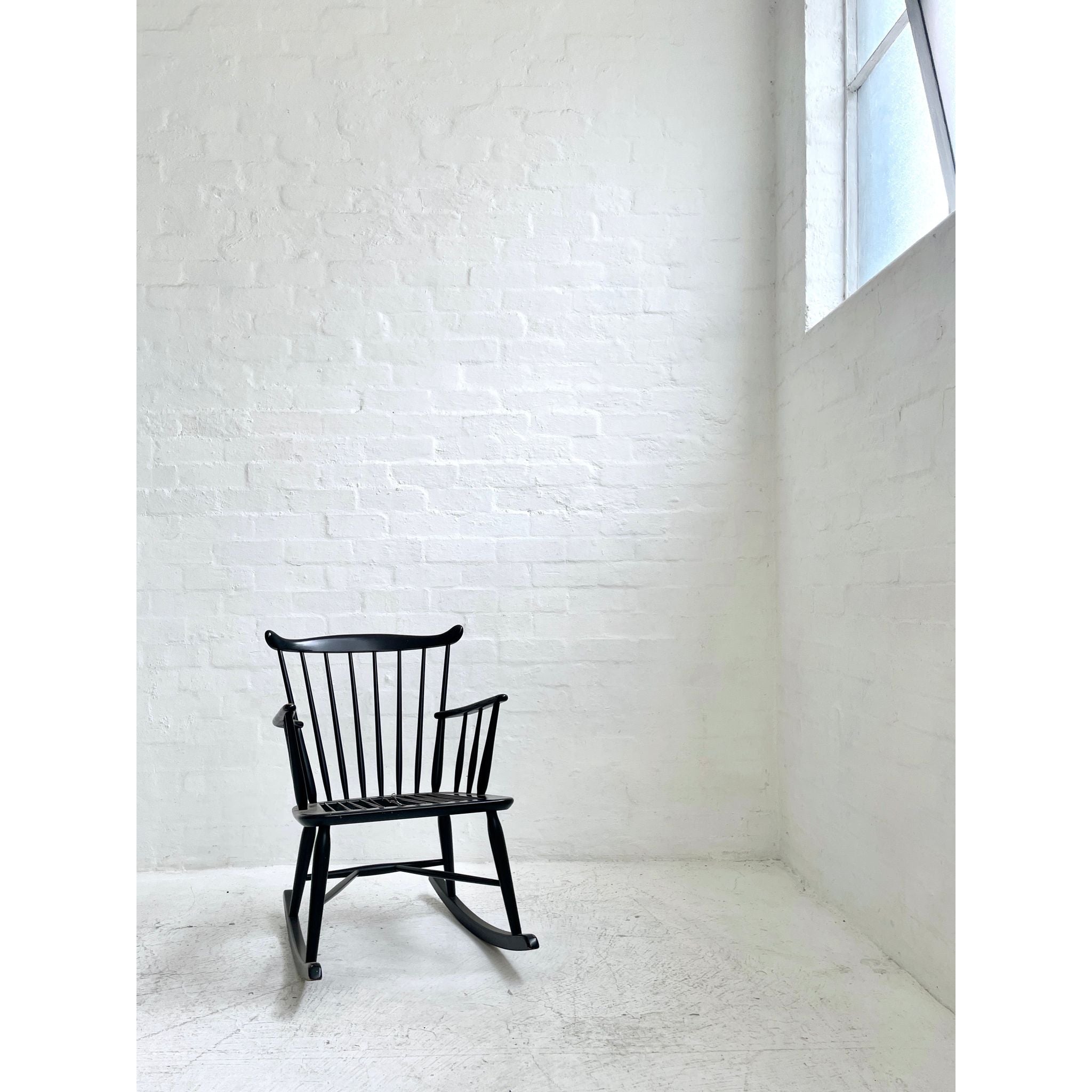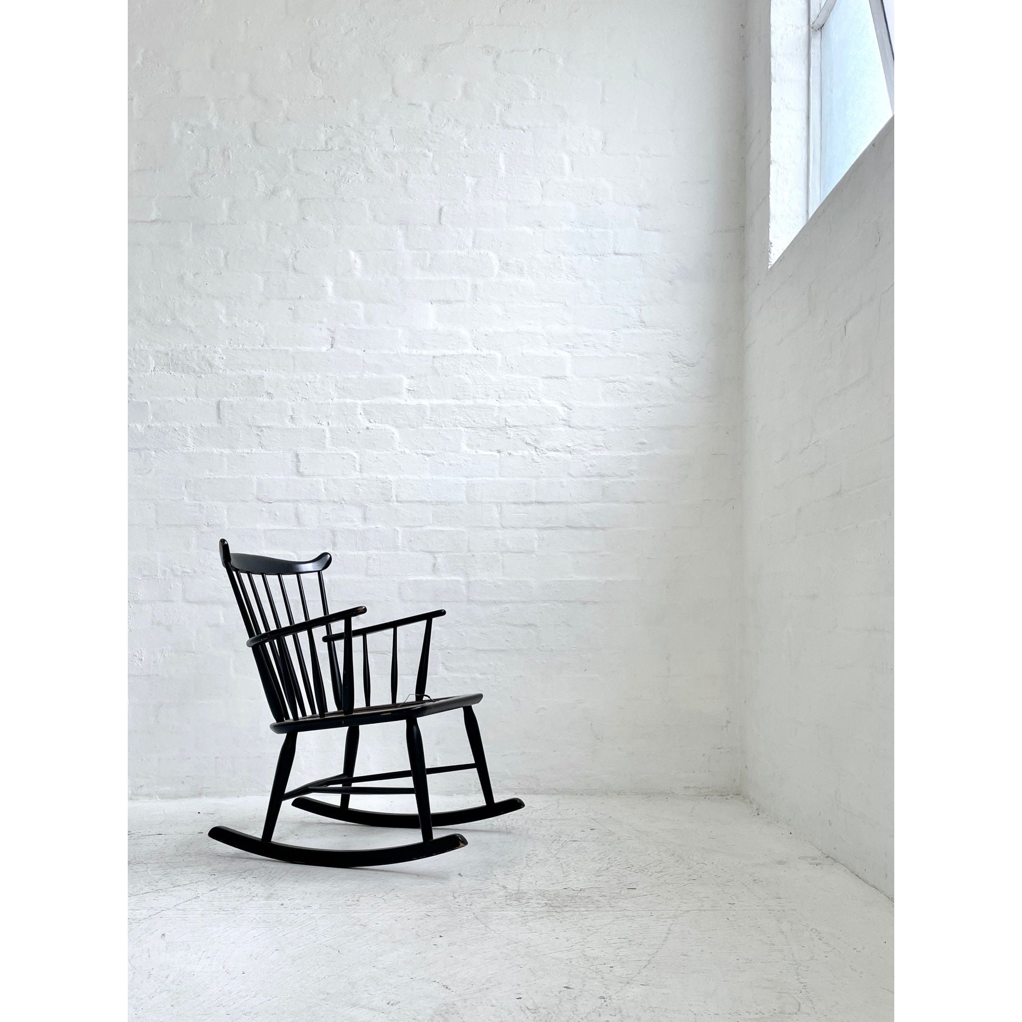 Black laquered spindle back chair. Produced by Farstrup Mobler, Denmark.
