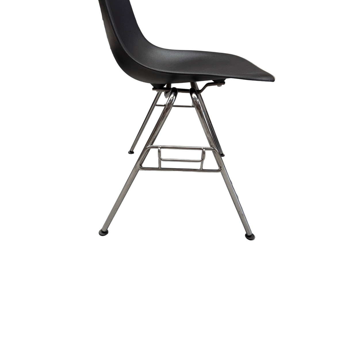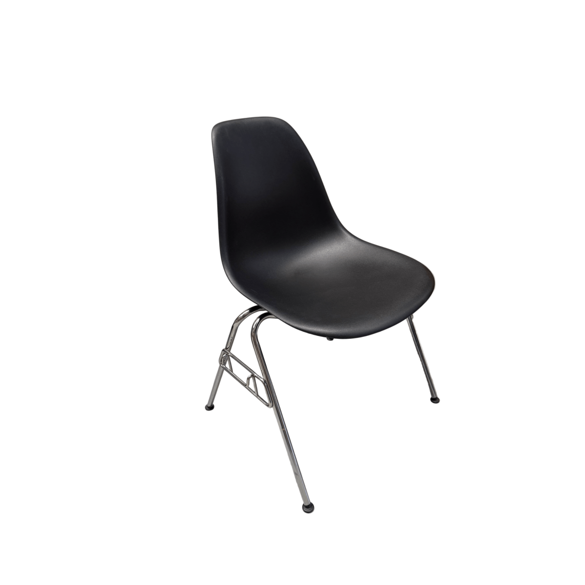 This pre-loved Eames DSS White Stacking Chair exemplifies the innovative design of Charles and Ray Eames, blending style and practicality seamlessly. The DSS—short for “dining side stacking”—offers adaptable seating with a sleek chrome tubular steel frame and a molded plastic seat reinforced with fiberglass for enhanced durability. Its modern aesthetic is matched by sturdy construction, ensuring long-lasting use. Dimensions: 500mm width, 450mm depth, 810mm height, with a seat height of 430mm. Features include black or bright zinc steel base with protective floor glides for stability and floor protection.