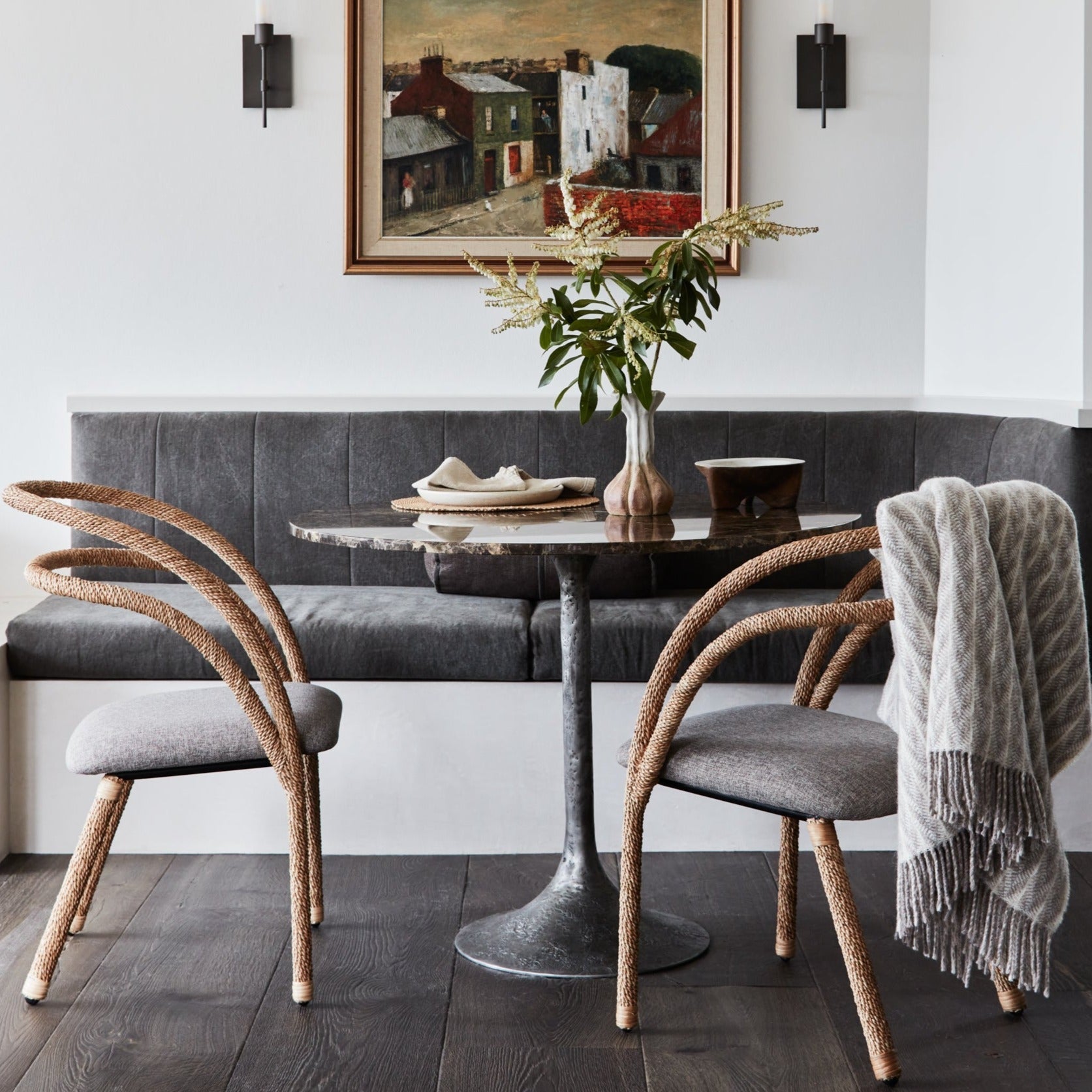 Material: Natural Rope, upholstered muslin seat