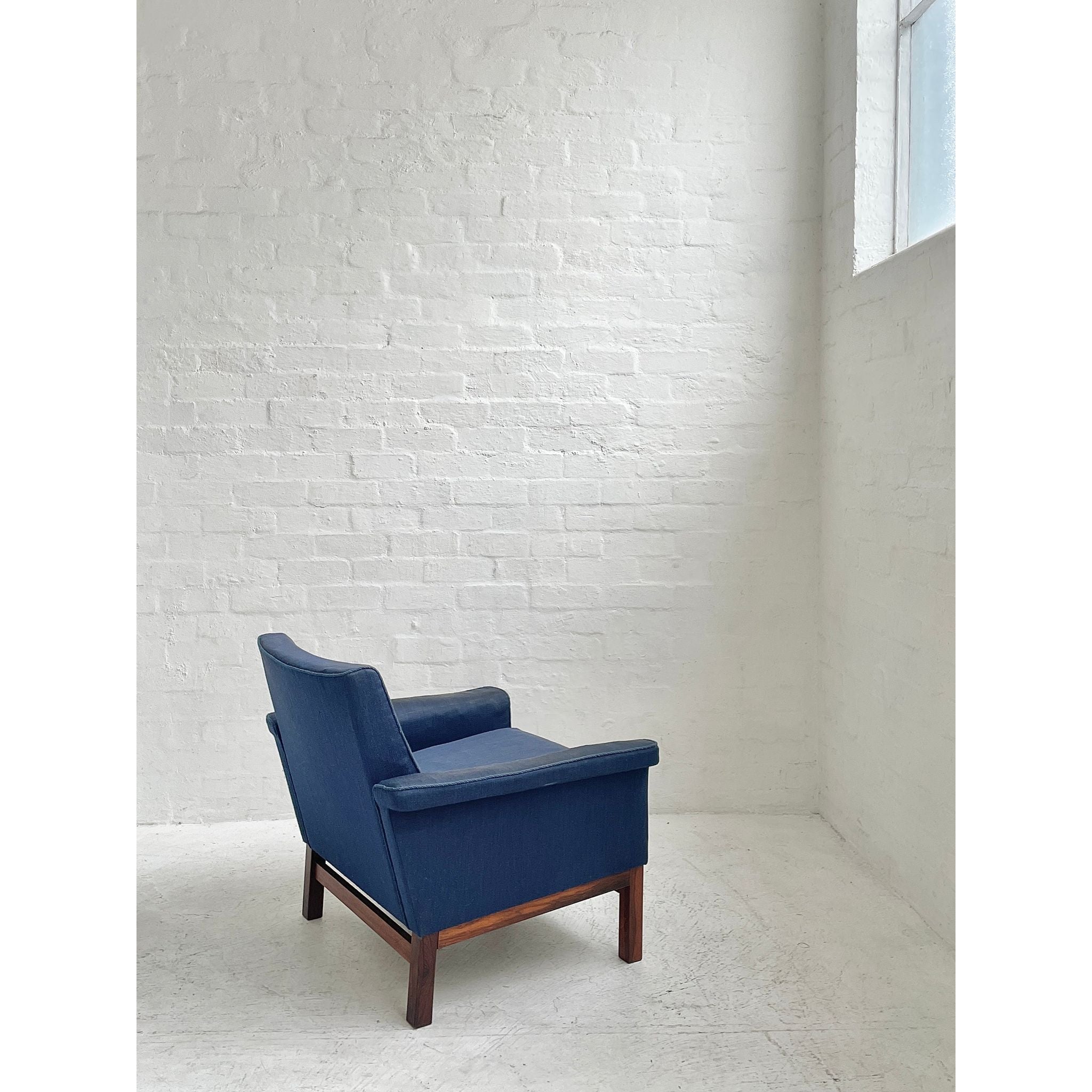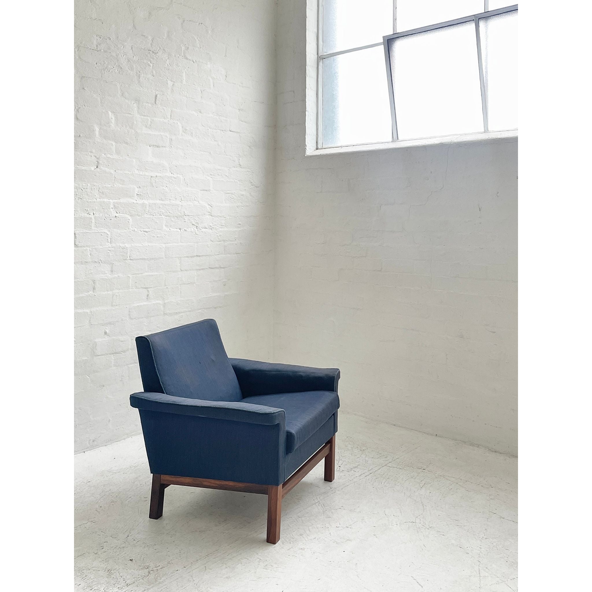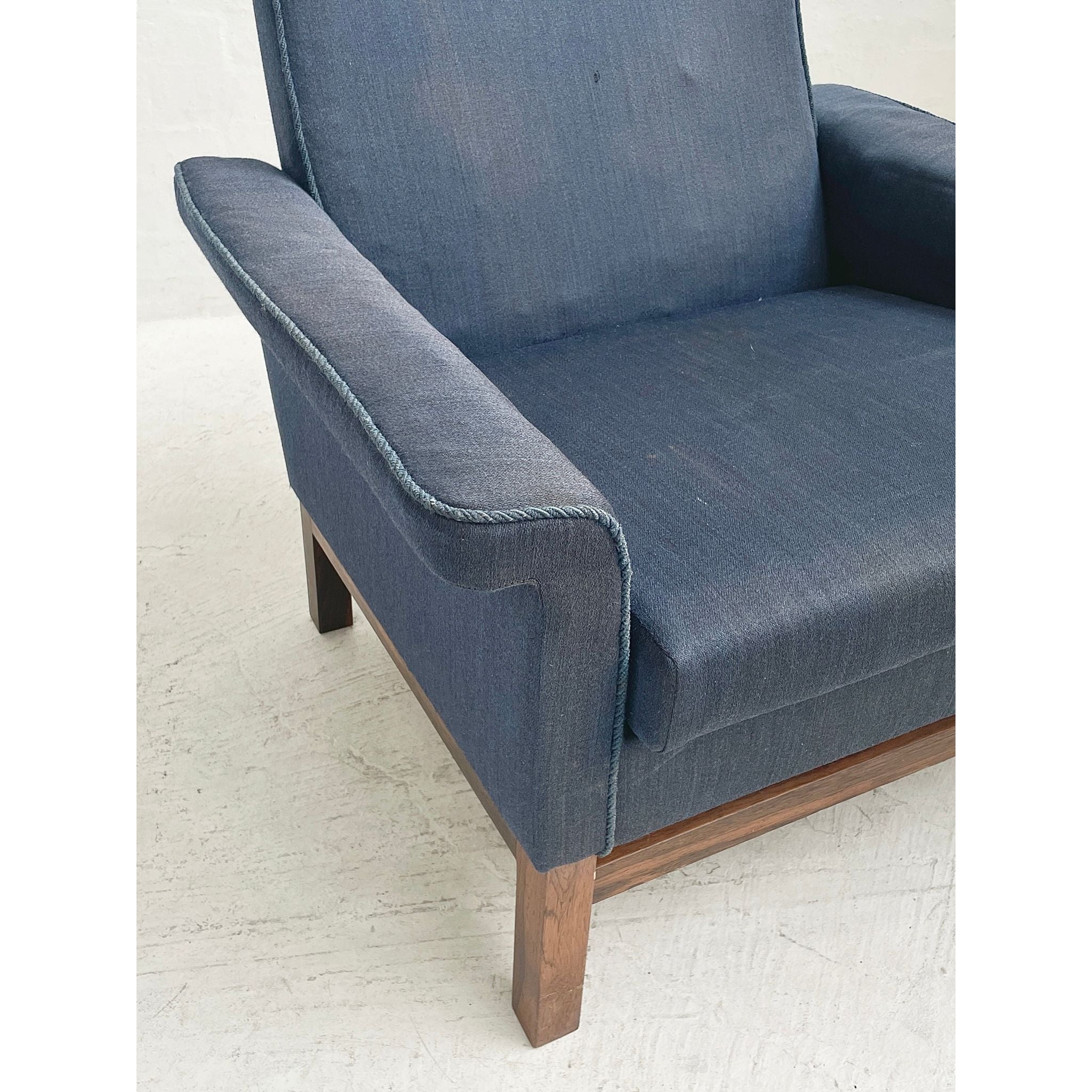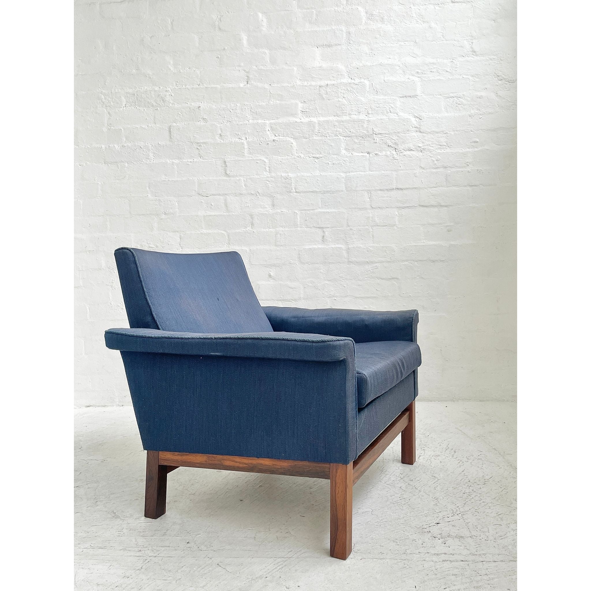 By unknown maker/designer. With rosewood base. Foam is deteriorated. Contact us for reupholstery options.