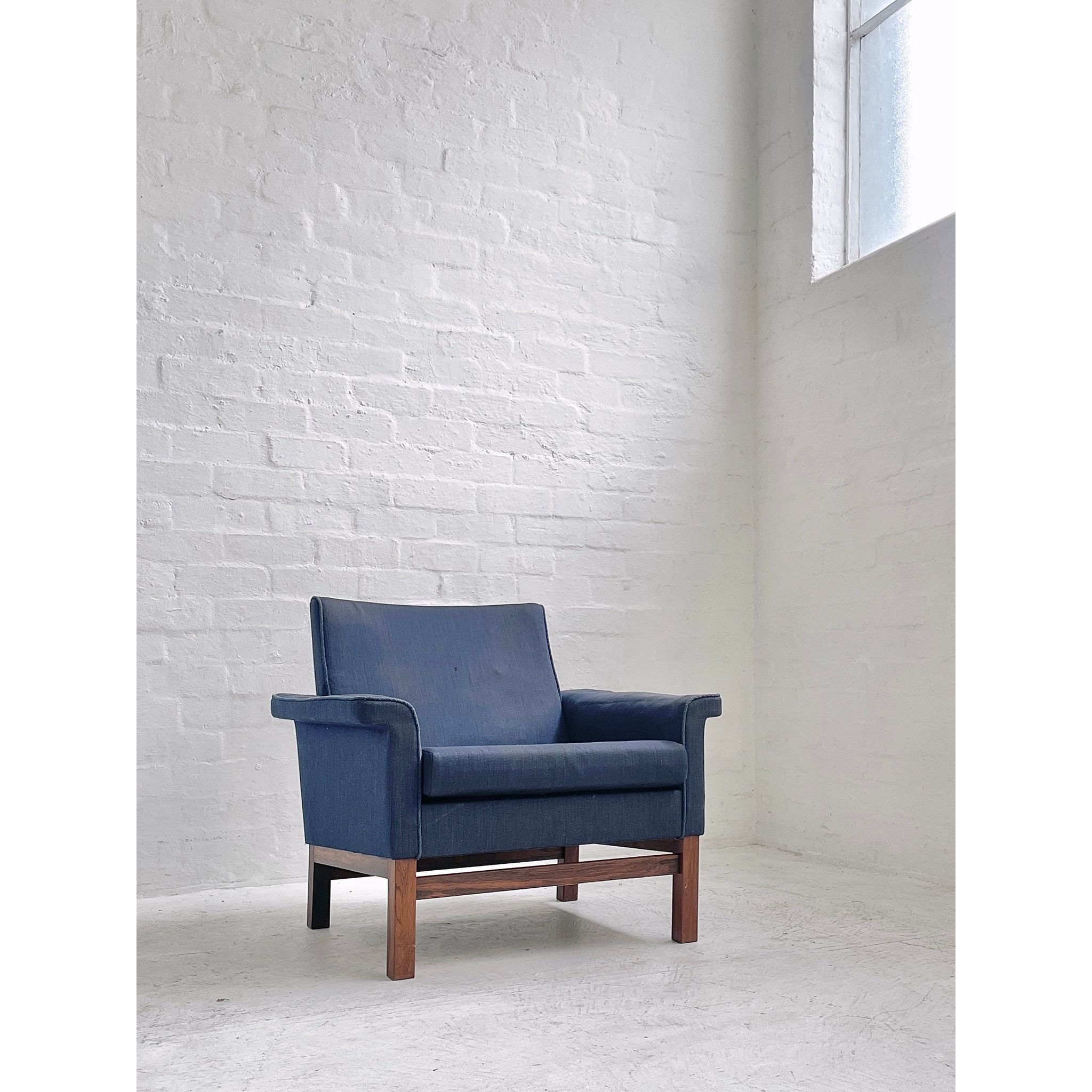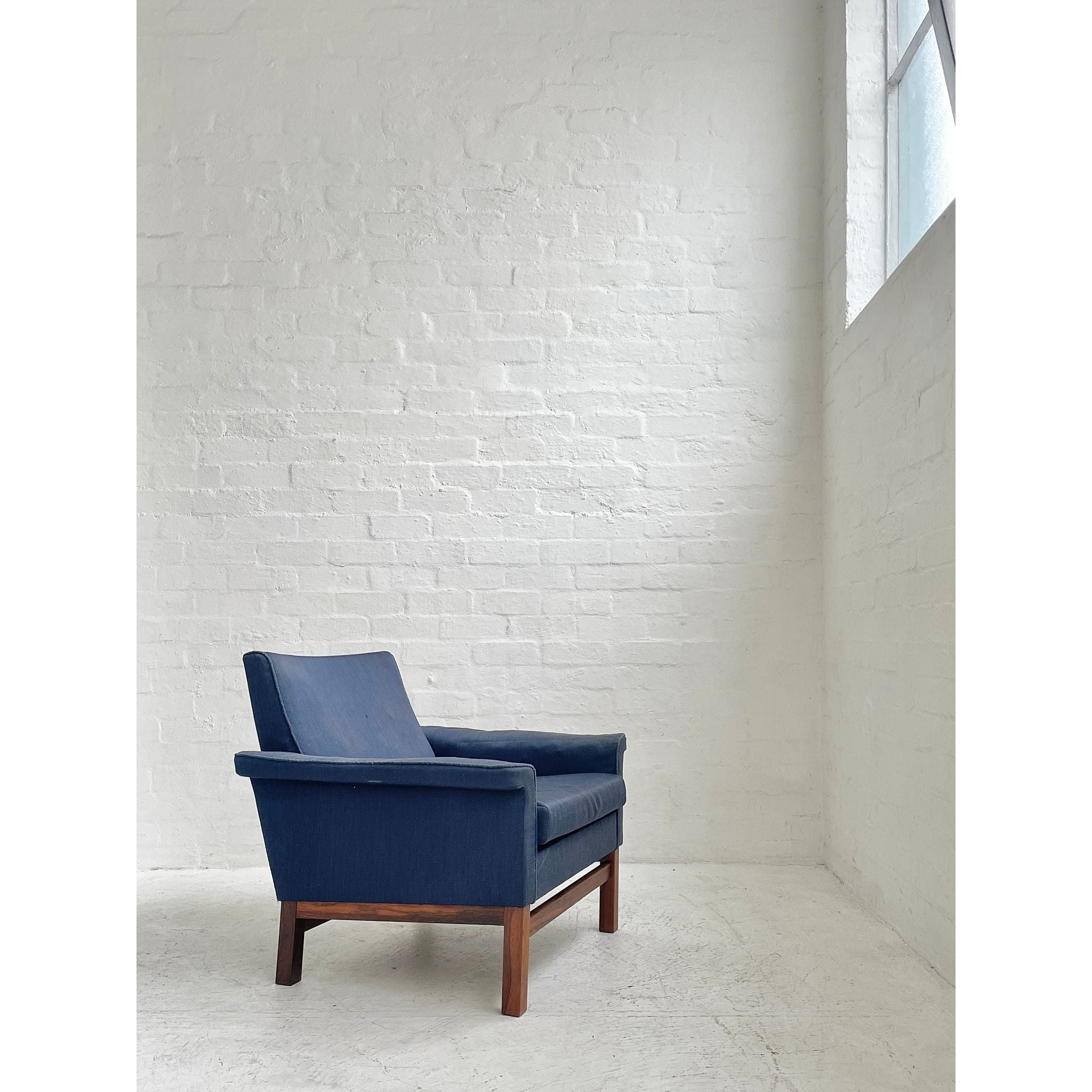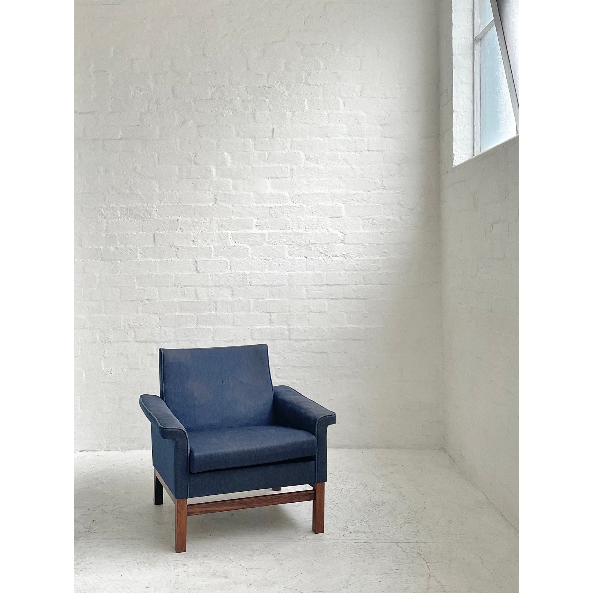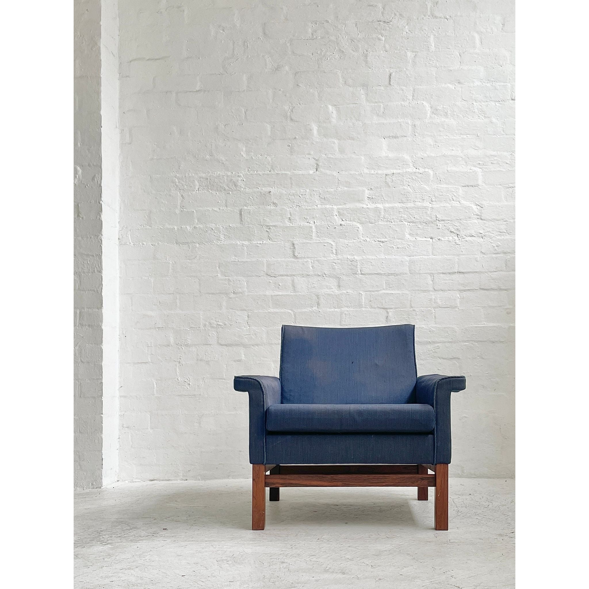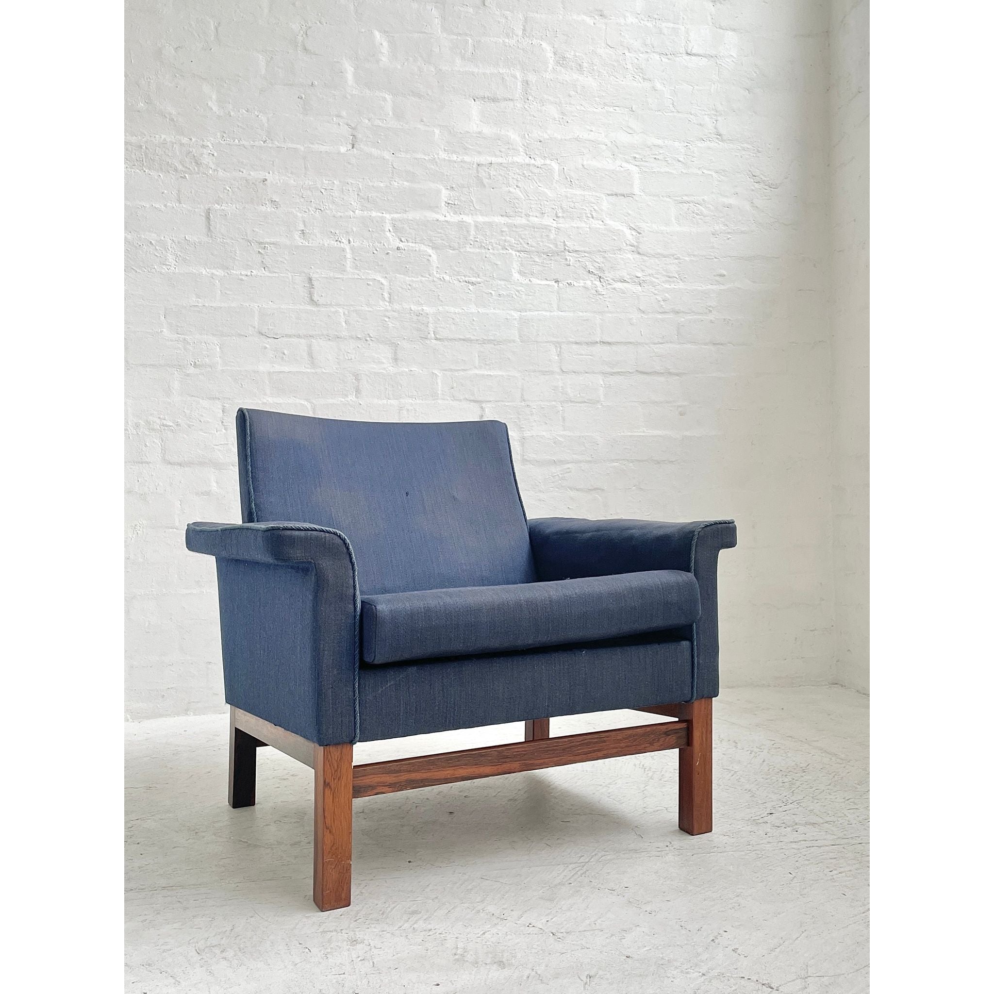 By unknown maker/designer. With rosewood base. Foam is deteriorated. Contact us for reupholstery options.