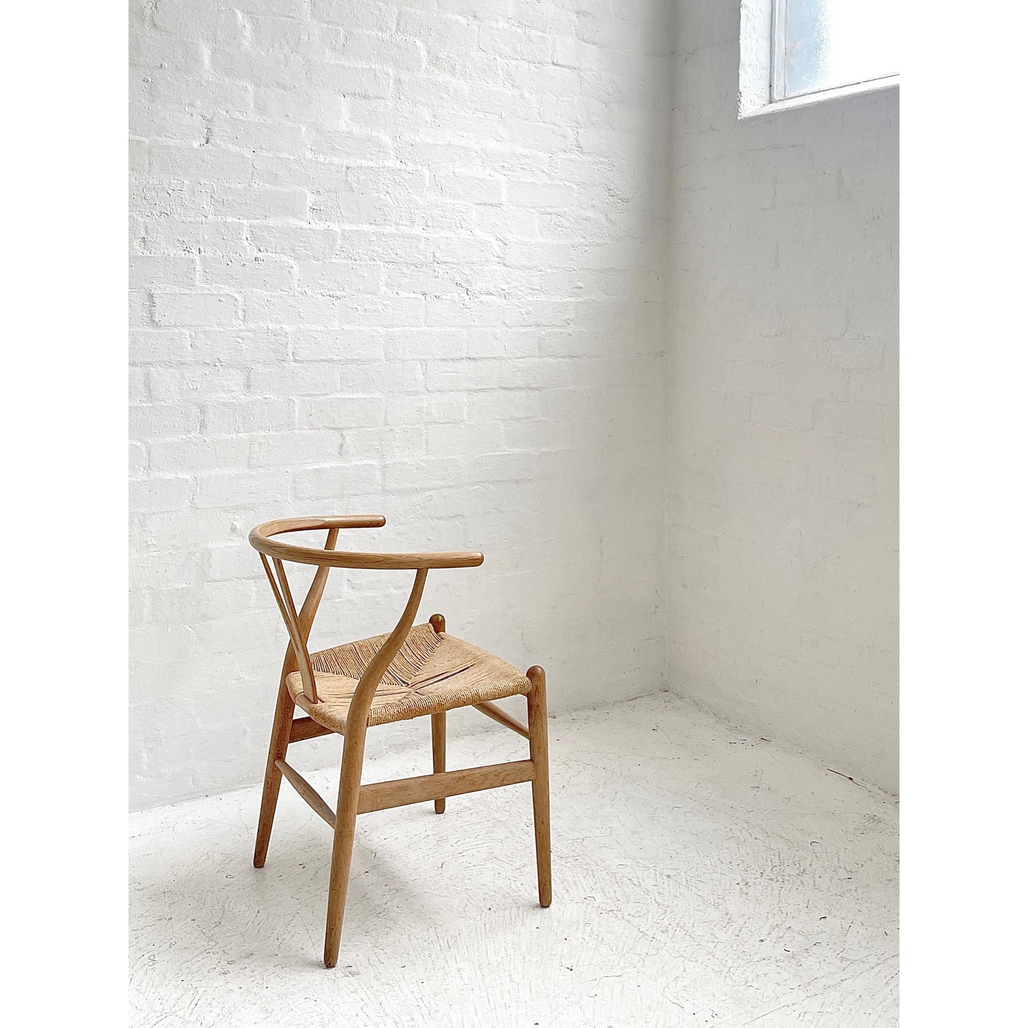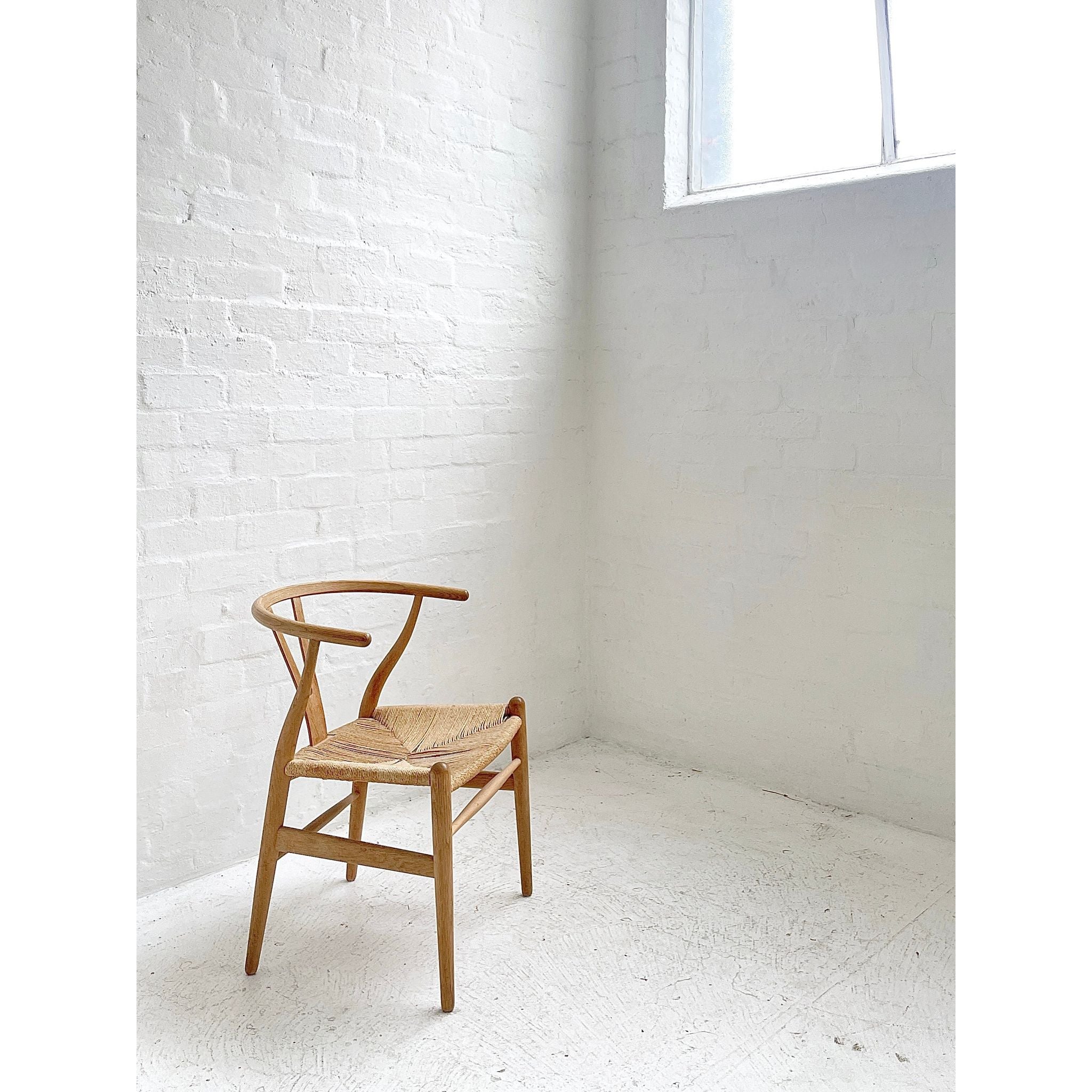 Produced by Carl Hansen. Oak, papercord and natural leather. In original vintage condition.