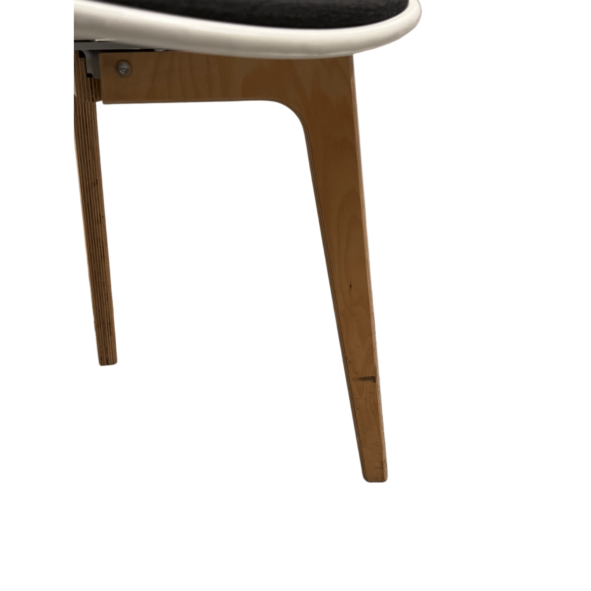 The Lottus Chair by Lievere Altherr Molina combines minimalist Scandinavian design with functional elegance. This piece features a white seat shell paired with a plush black upholstered seat pad, supported by natural timber legs that ground the contemporary silhouette. Showing signs of authentic vintage wear consistent with its history, this chair retains its structural integrity and design appeal. Ideal for those seeking character-rich furniture with genuine patina, it's a distinctive addition to eclectic interiors that celebrate pre-loved design.