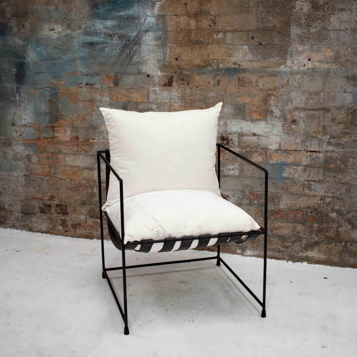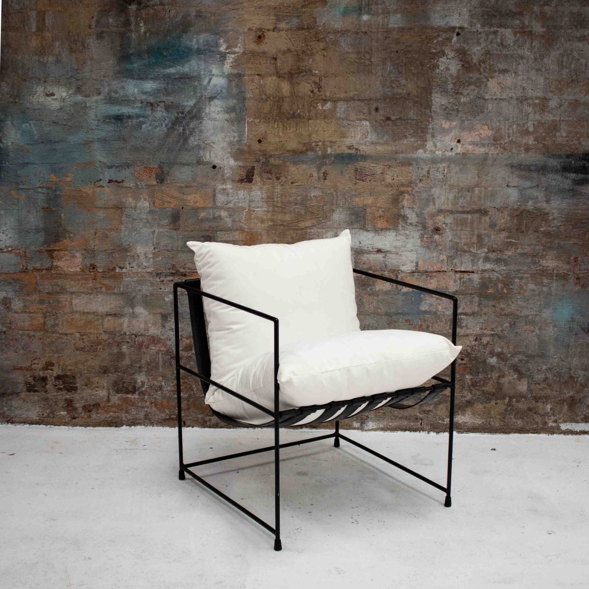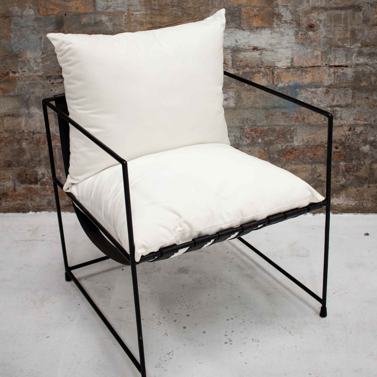 Our Lucull Sling Occasional Chair features a slender design with black iron box frame paired back with the most comfortable seat cushion. The real modern feel but sits so nicely next to a rustic piece or two. This Lucull is your answer to living comfortably