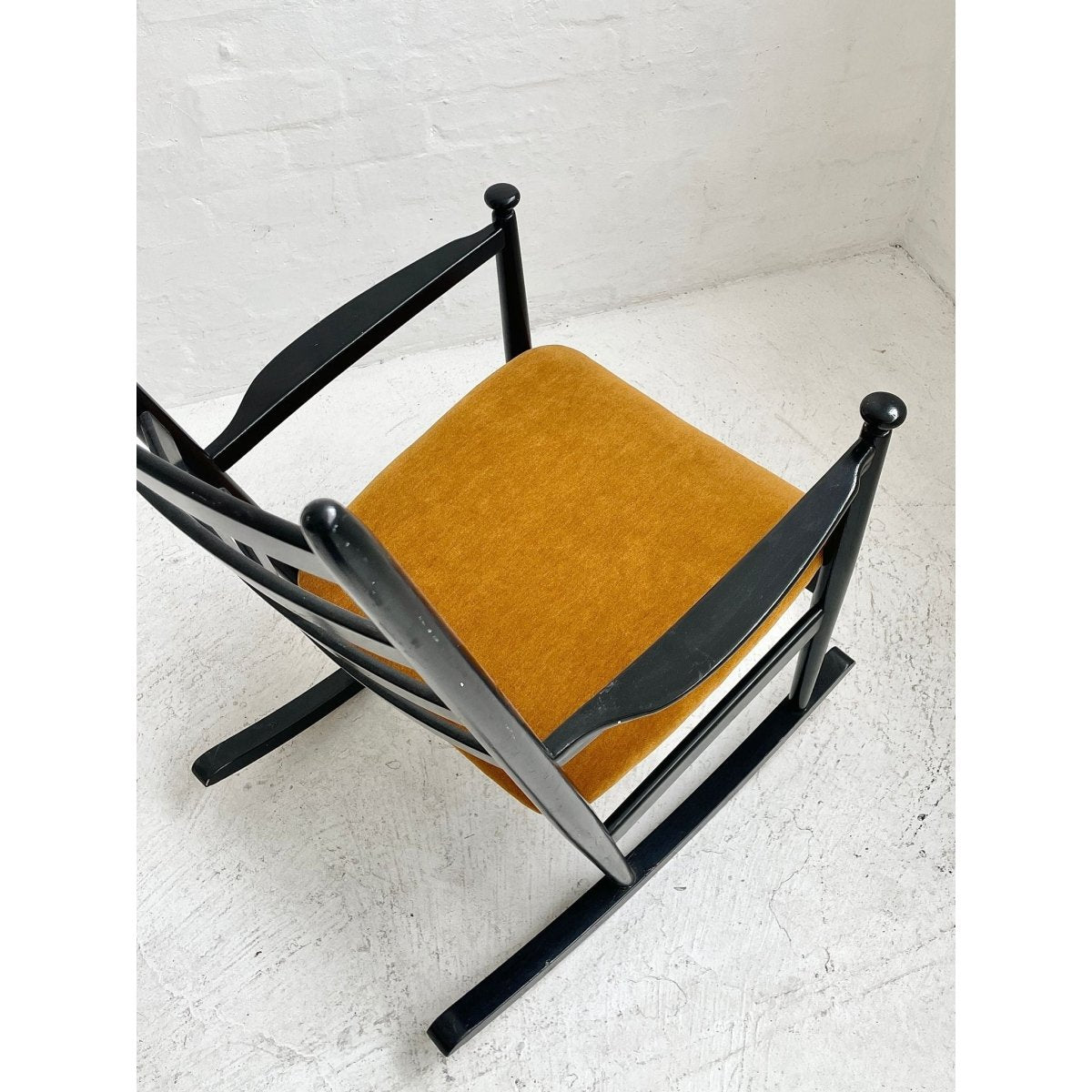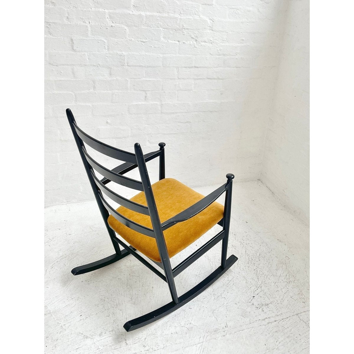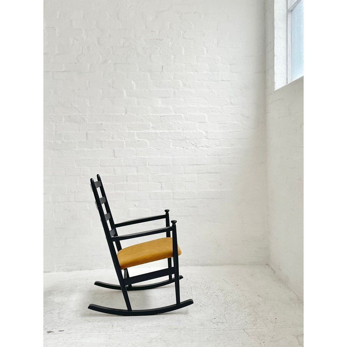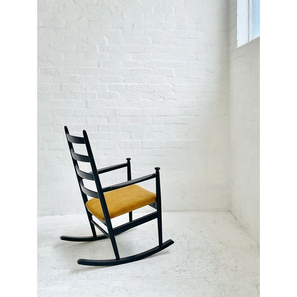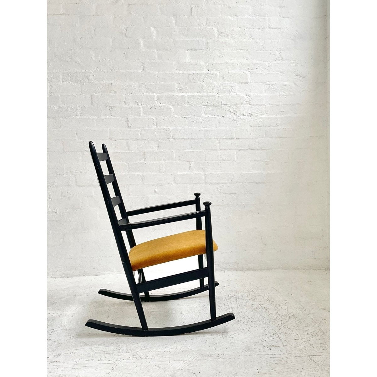 Danish pale timber rocking chair with a newly upholstered seat. In very good restored condition.