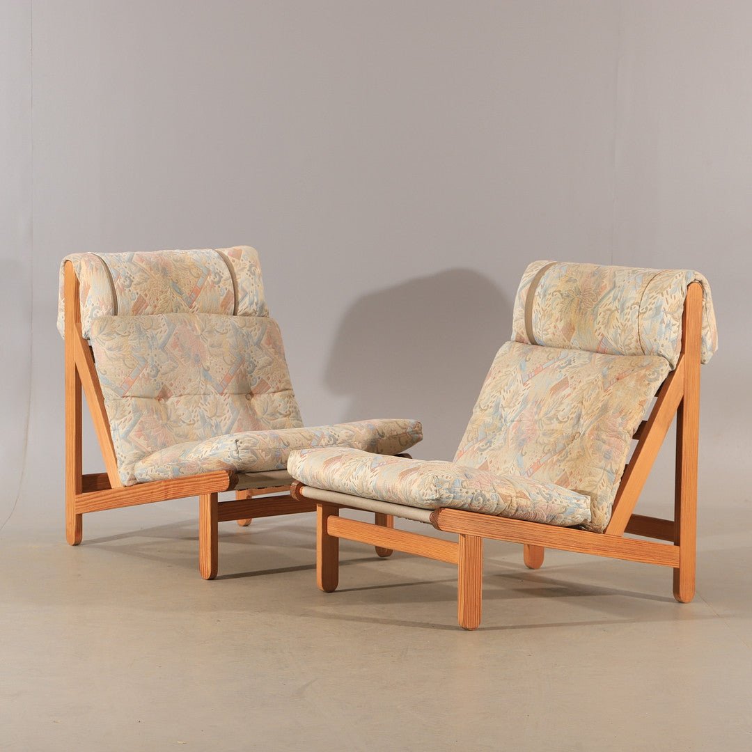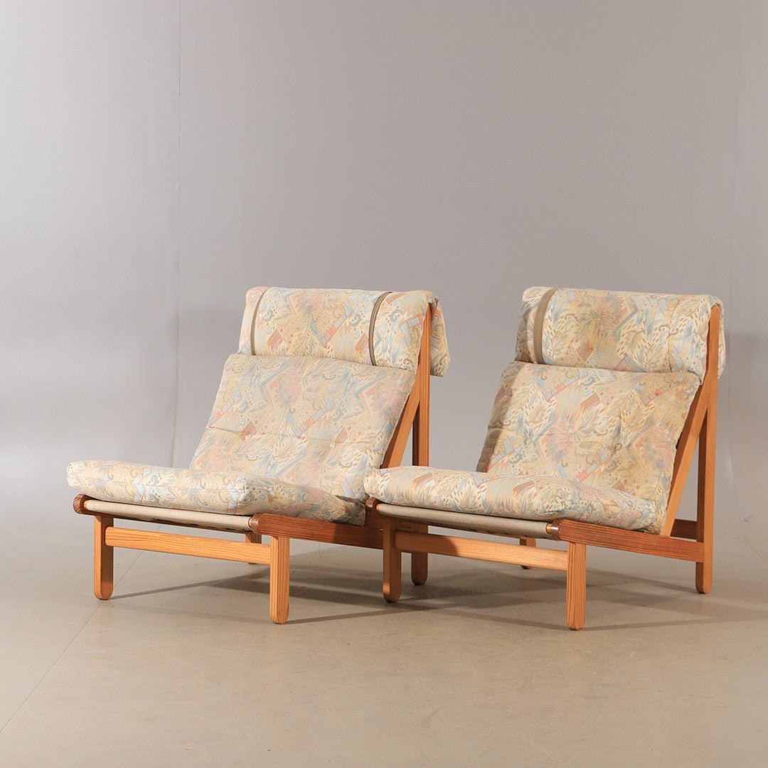 A stunning pair of iconic "Rag Chairs" (Model 120), designed in 1969 by the renowned Danish architect Bernt Petersen. Known for their architectural simplicity and "honest" joinery, these chairs are a staple of Scandinavian modernism.