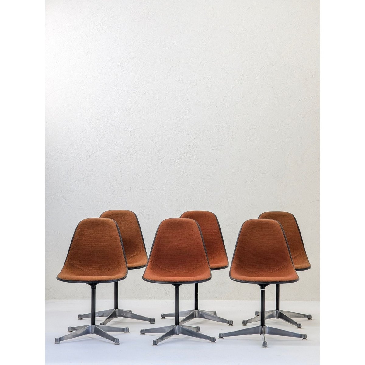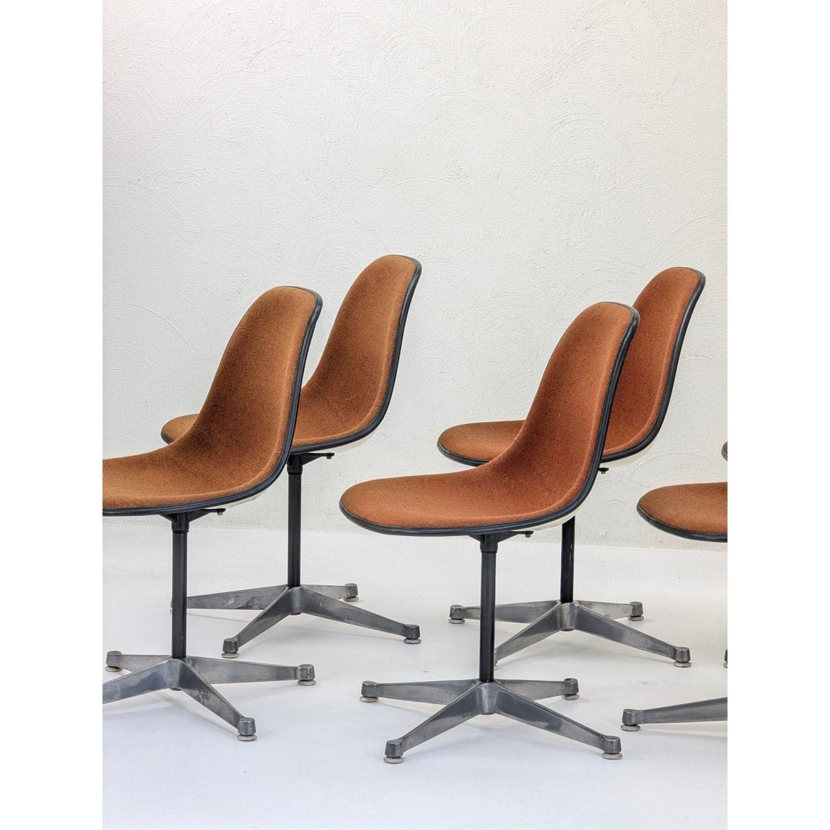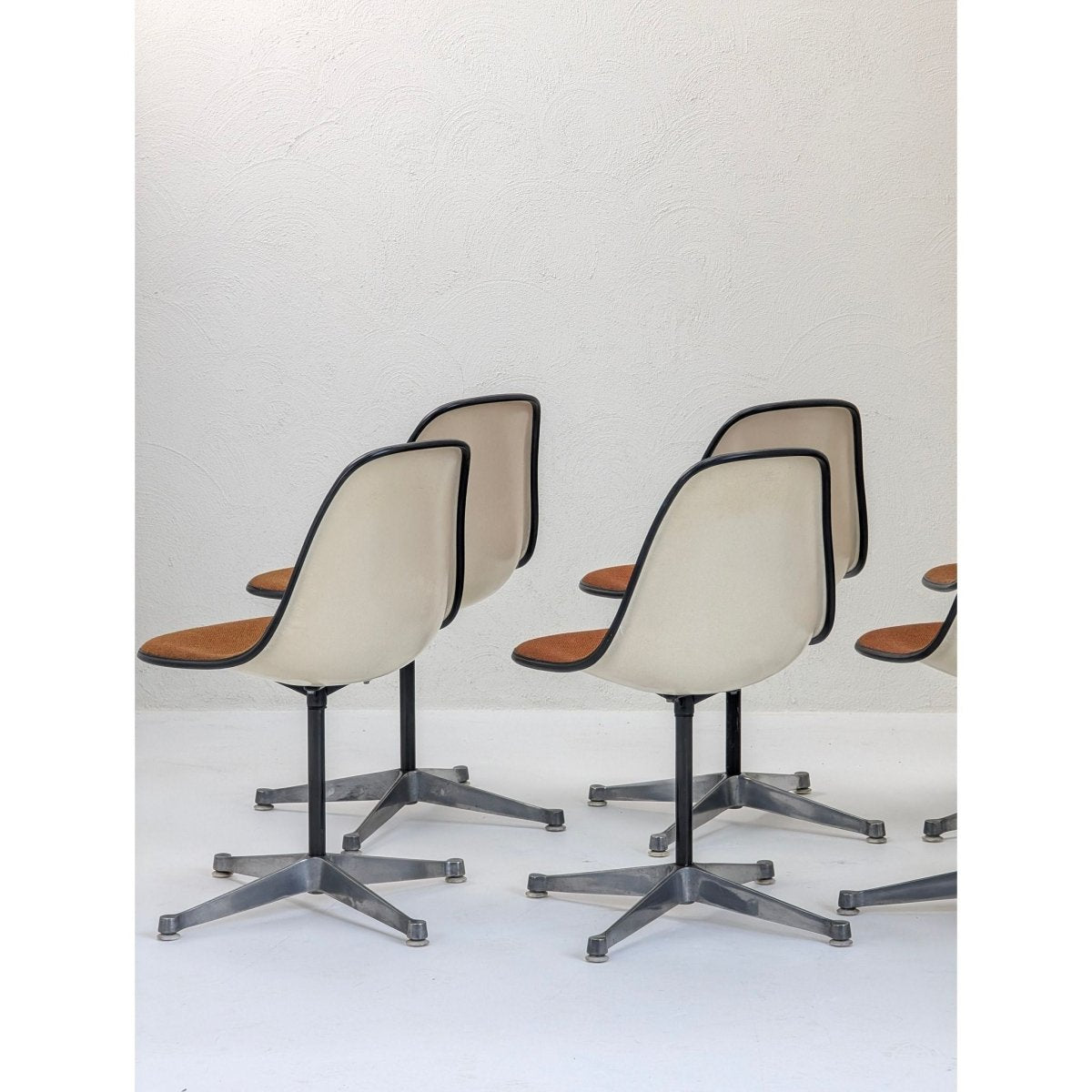An exceptional, matched set of six authentic mid-century Eames Pivot Side Chairs (PSC) for Herman Miller.
