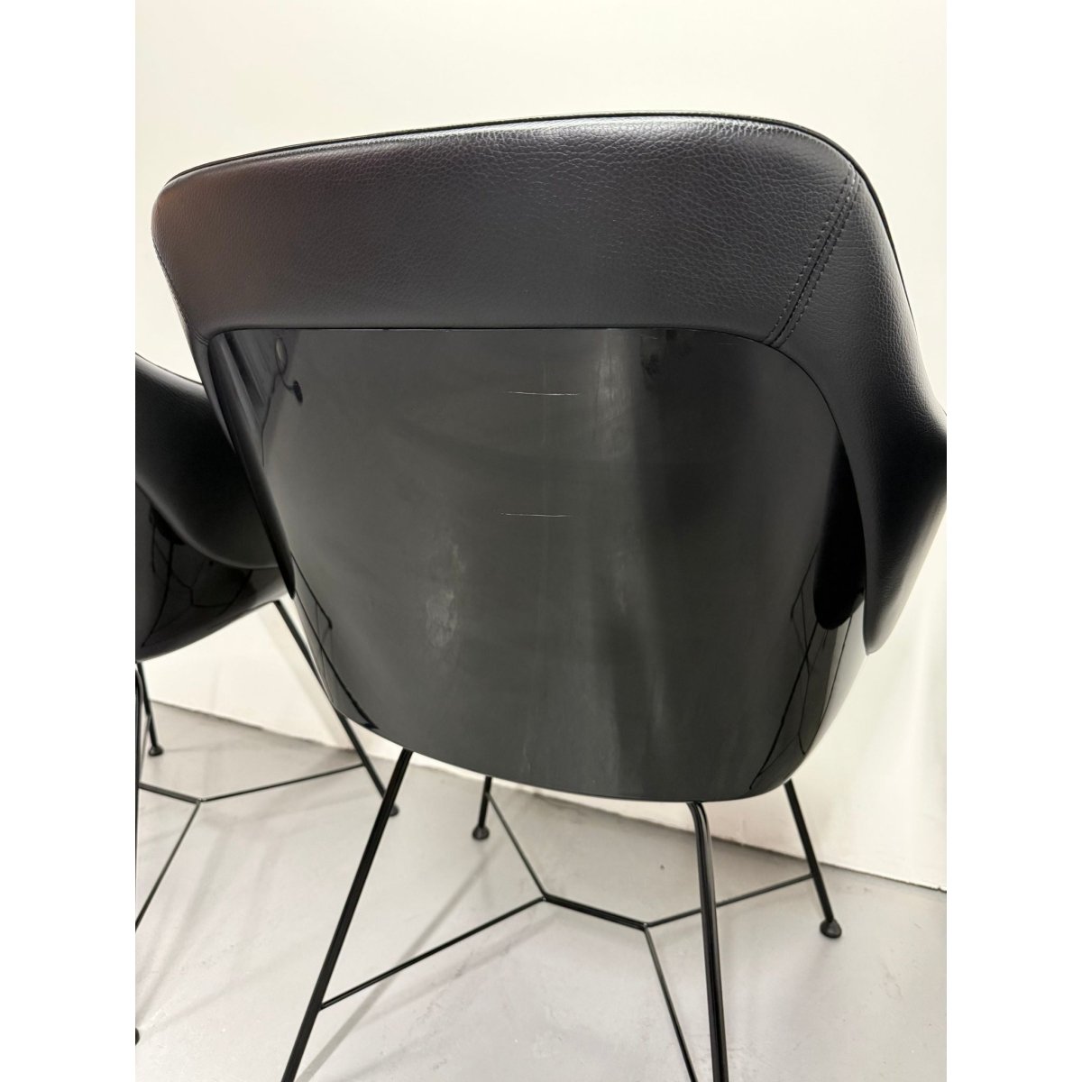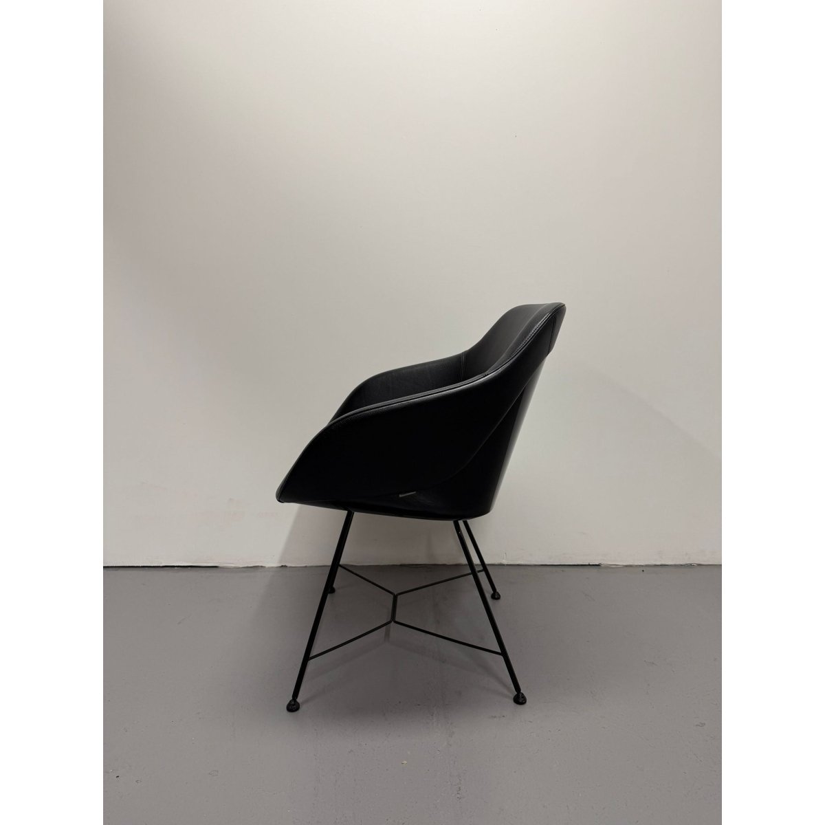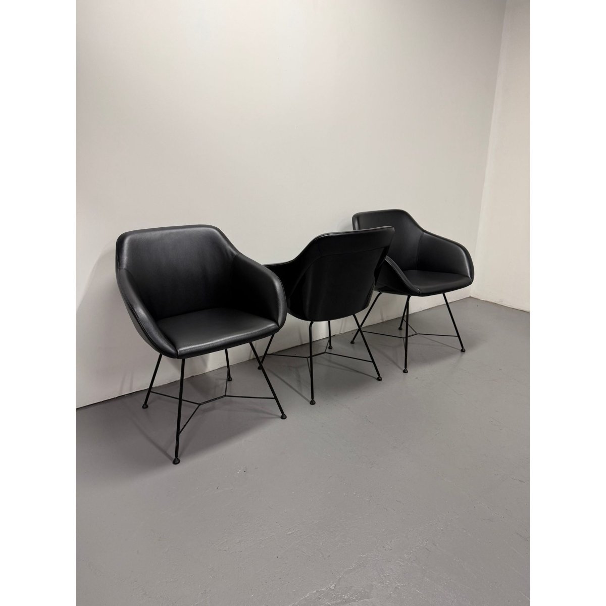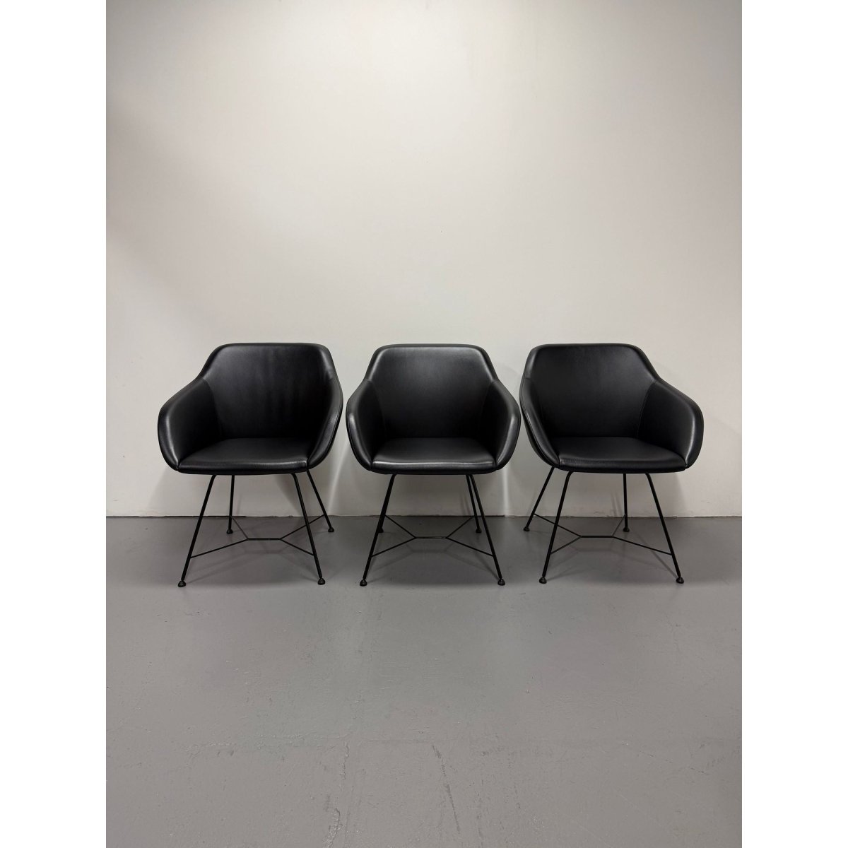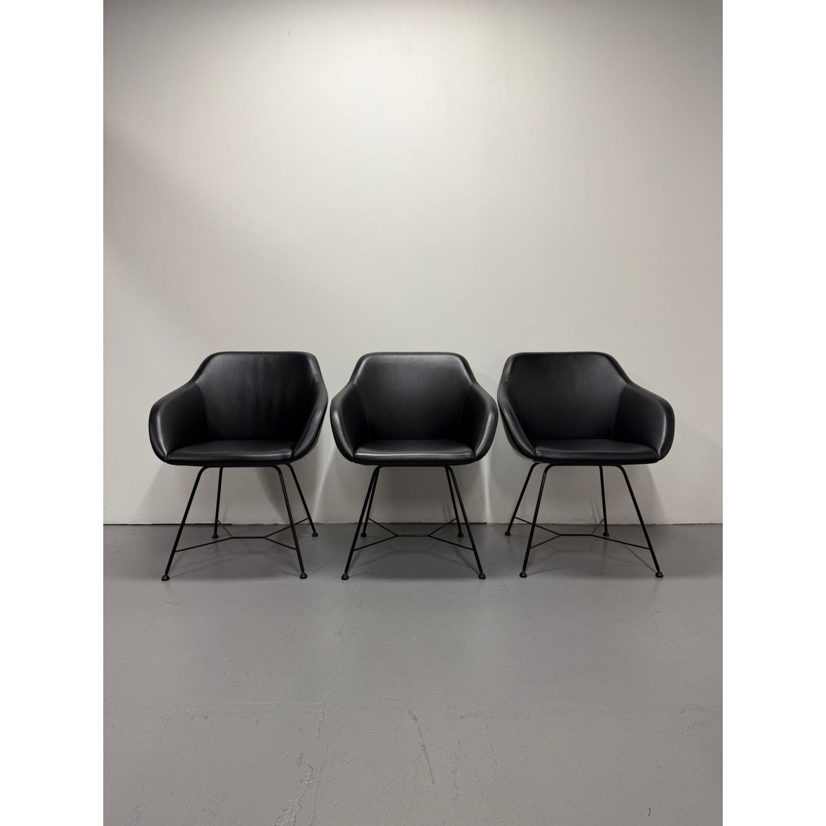 This version features a full black leather finish paired with a sleek black wire base ideal for meeting rooms, waiting areas, or stylish home offices, and equally suited as an accent chair in a living or bedroom setting.