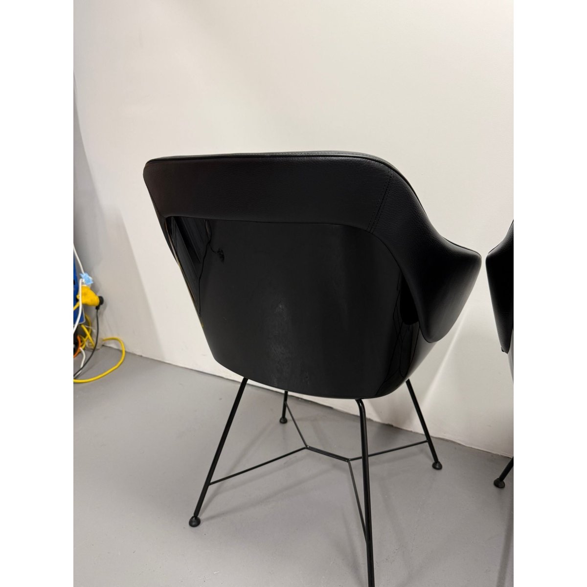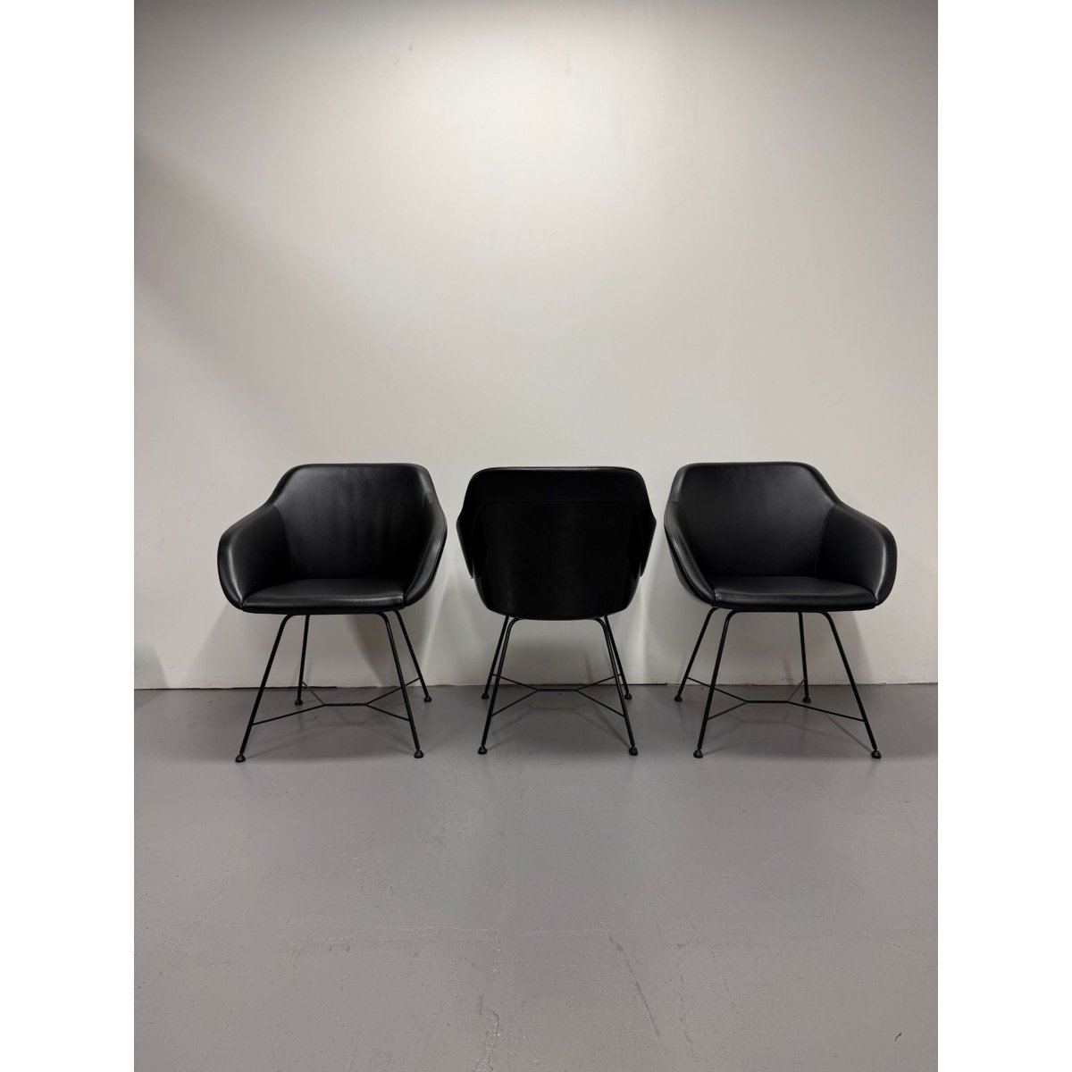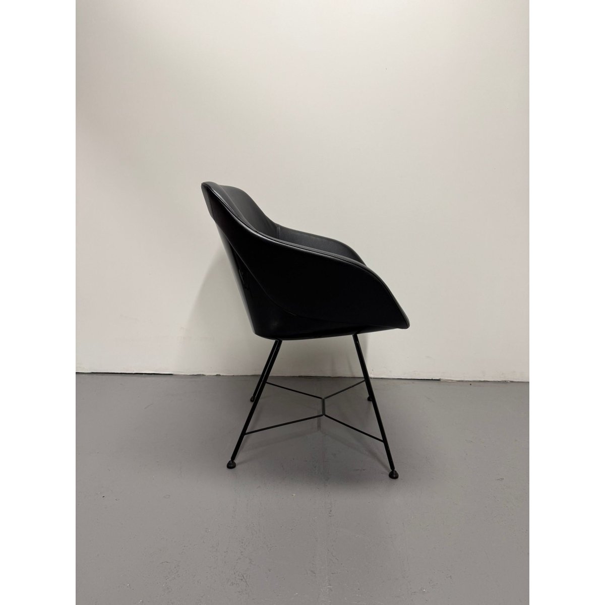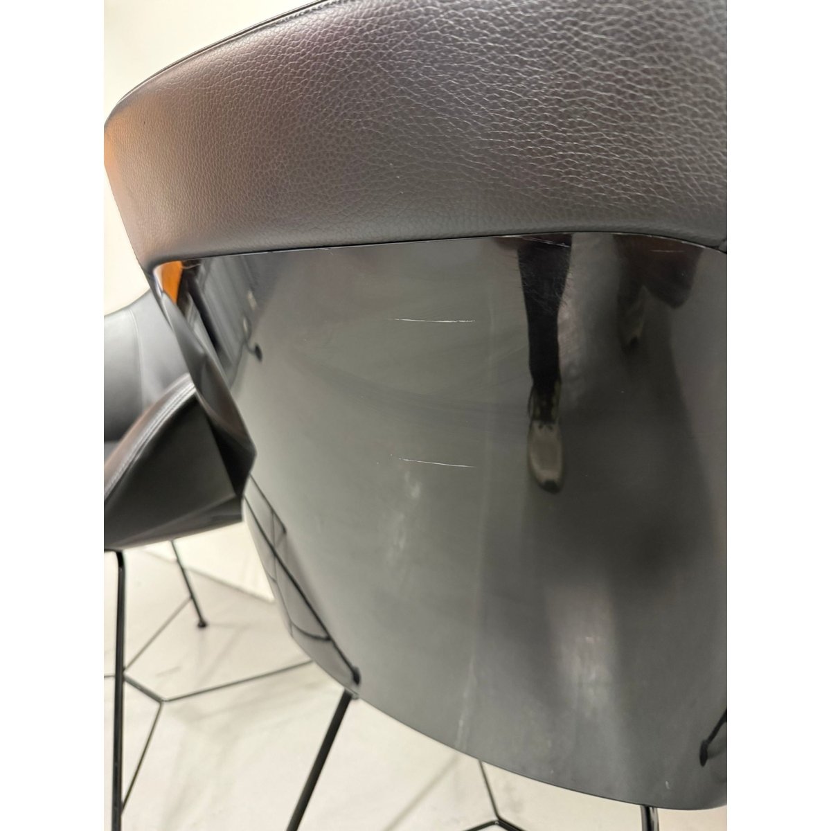 This version features a full black leather finish paired with a sleek black wire base ideal for meeting rooms, waiting areas, or stylish home offices, and equally suited as an accent chair in a living or bedroom setting.
