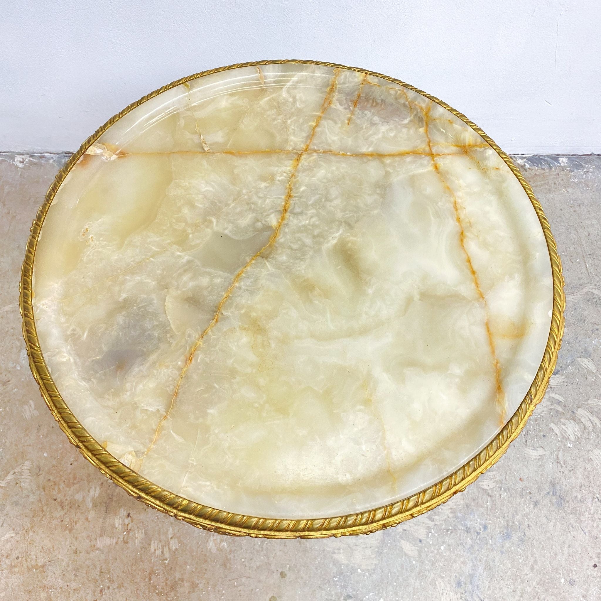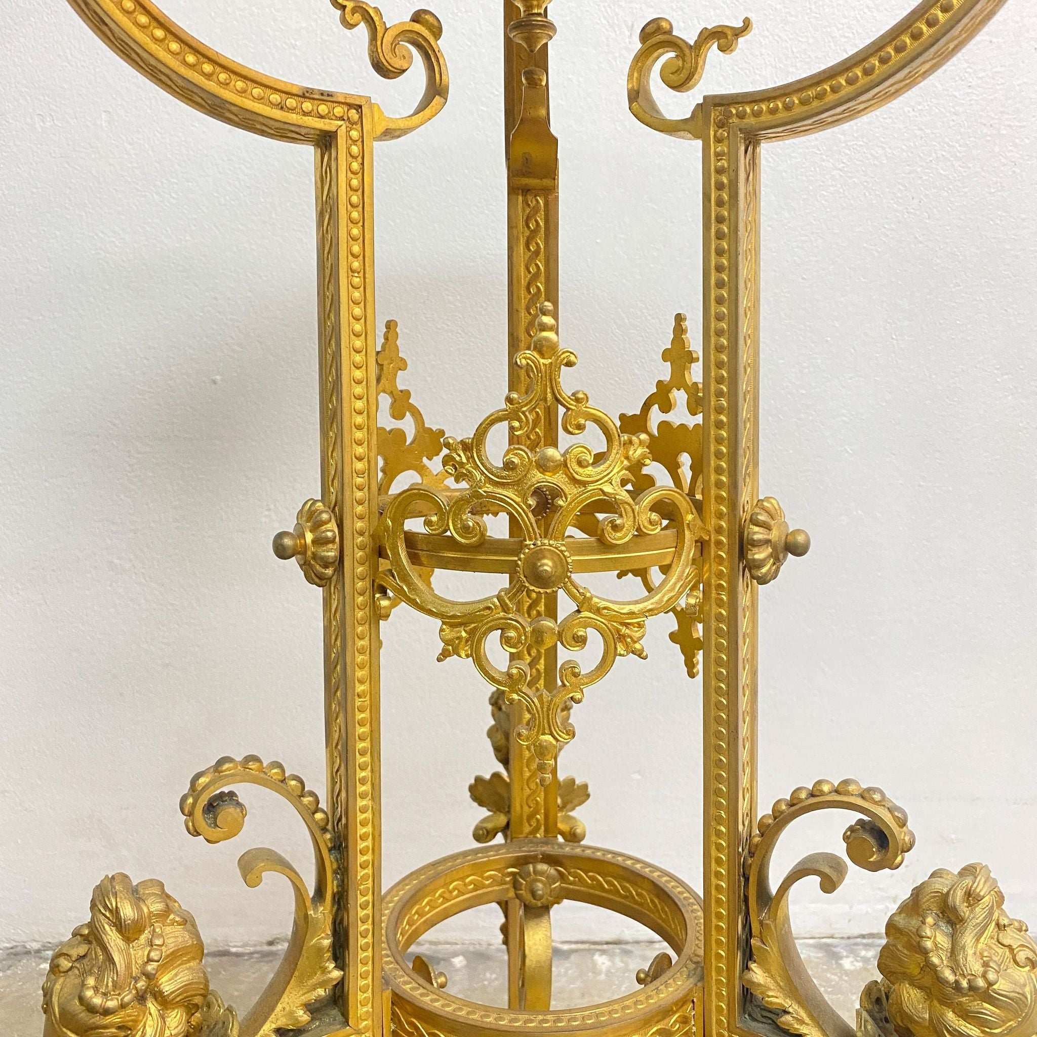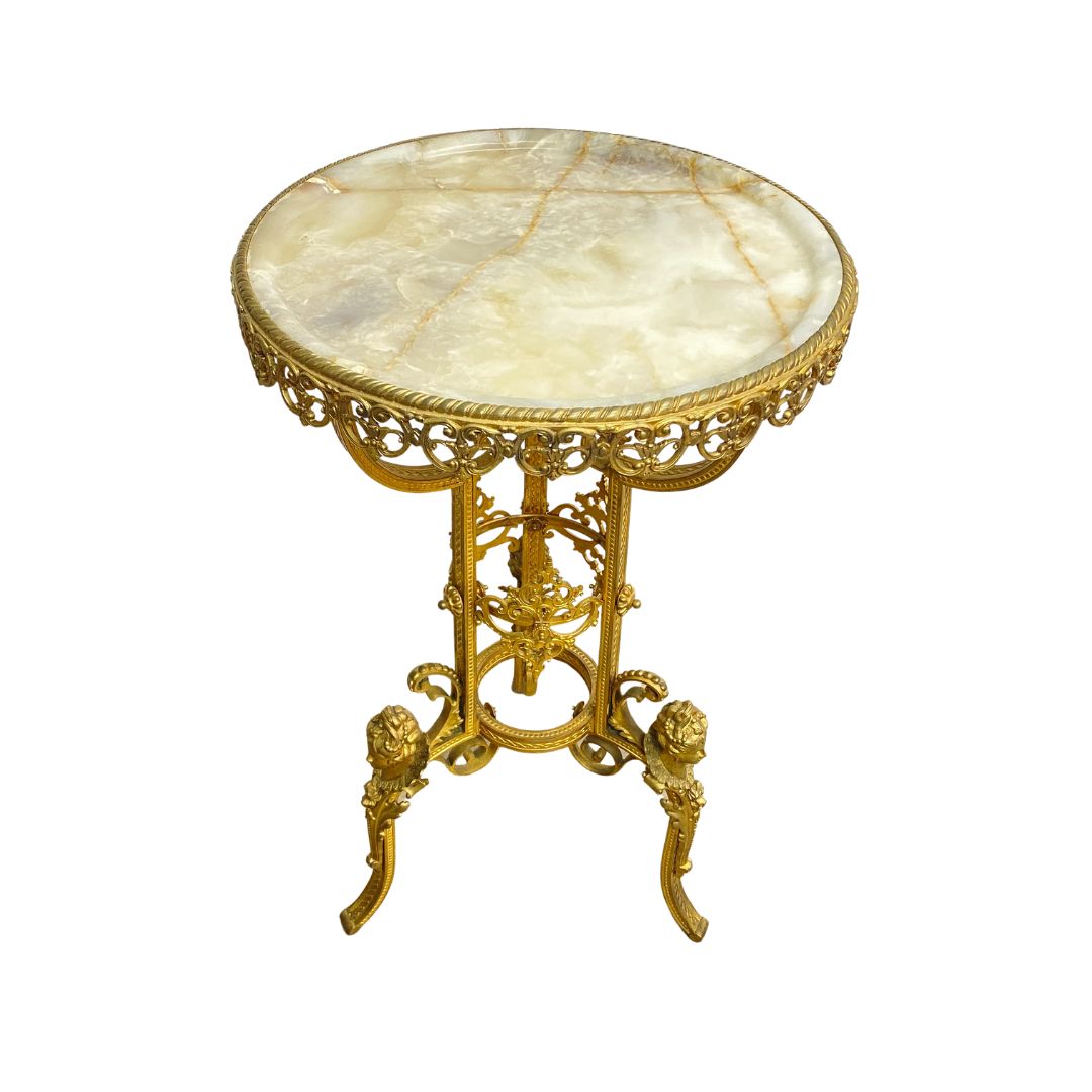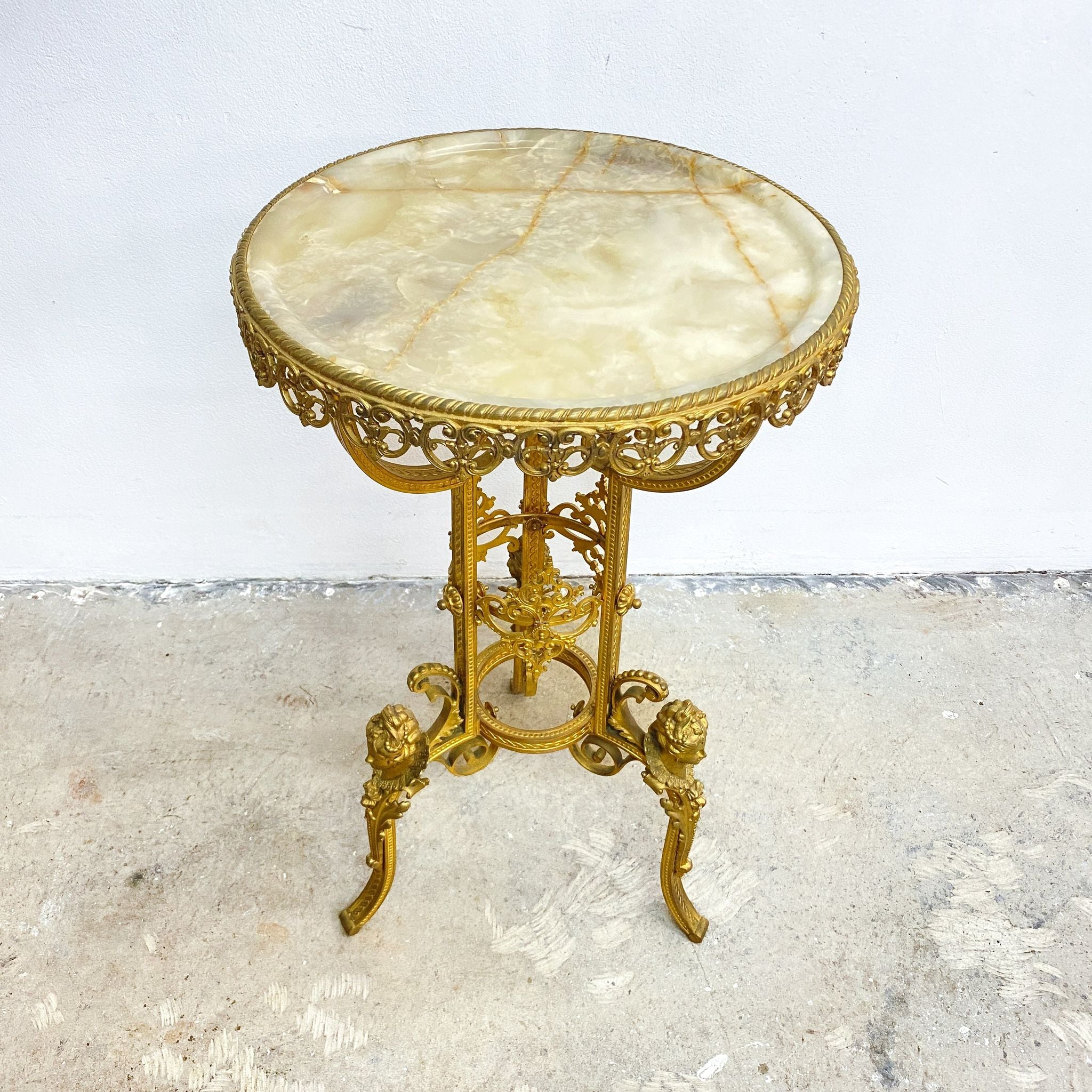French antique ornate gold gilt jardiniere or plant stand, with circular marble top, openwork scrolling border, supported by three cabriole legs. A very beautiful decorative piece in excellent condition with some signs of use commensurate with age.