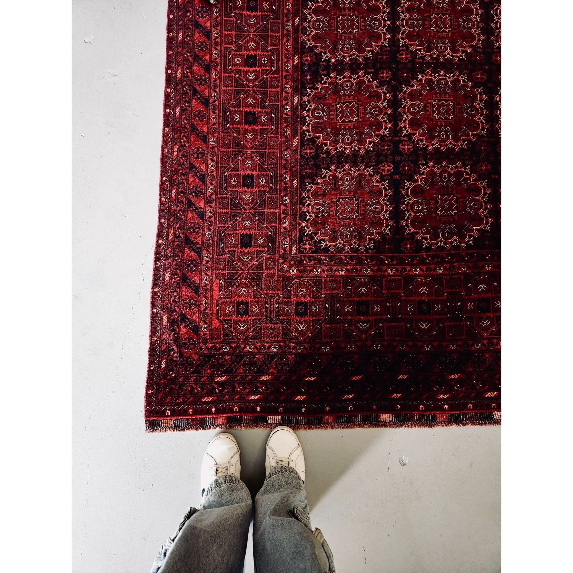 A luxurious antique finely handwoven Persian Saroki using a soft hand dyed Ghazni wool & silk composition. In excellent condition, but minor signs of wear as expected with age.