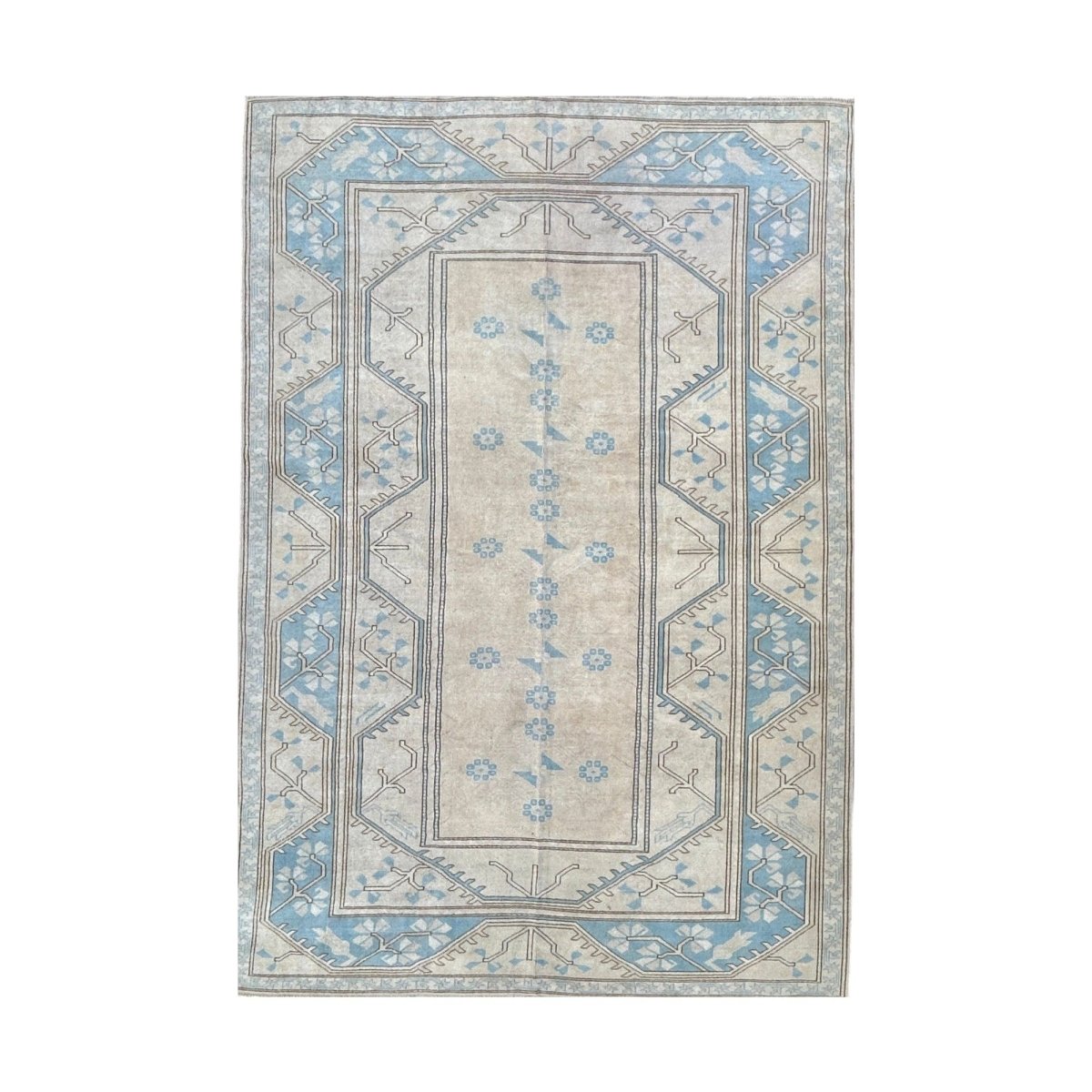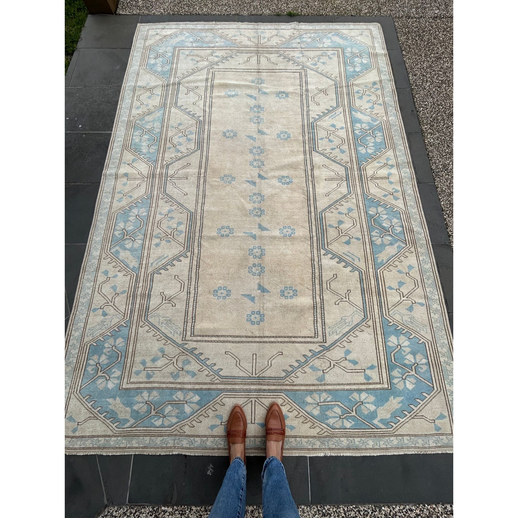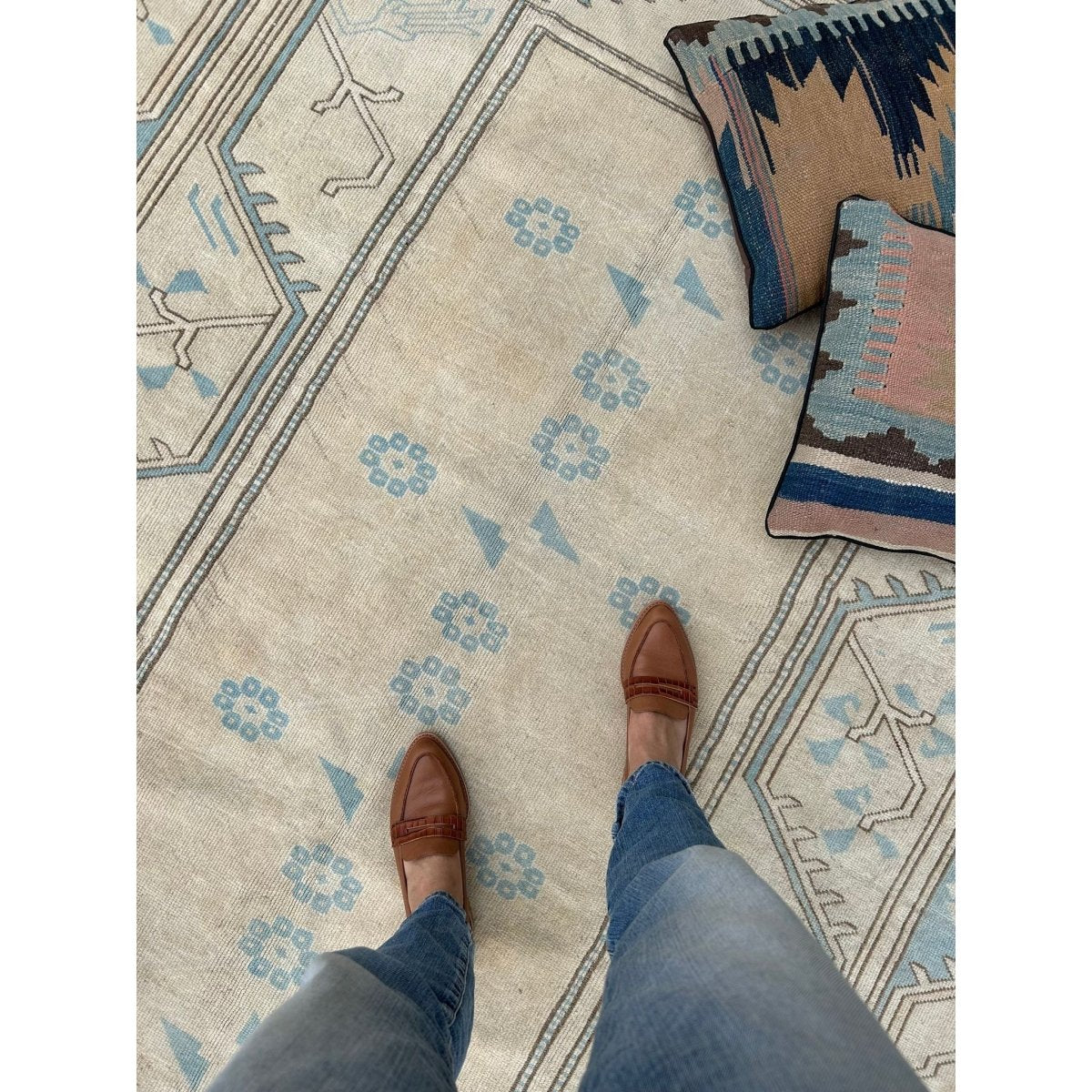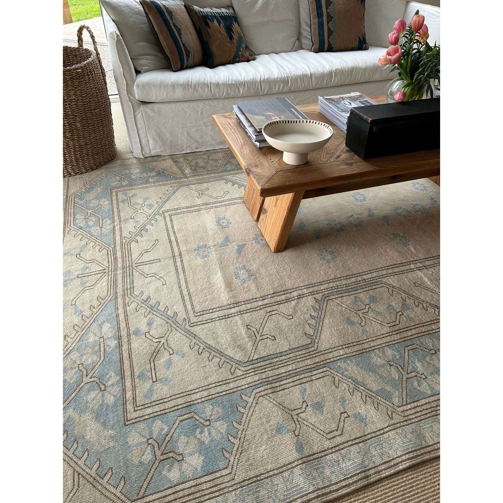 I see many of these vintage Turkish rugs in soft blues, pinks and beiges and thought I would get one in.