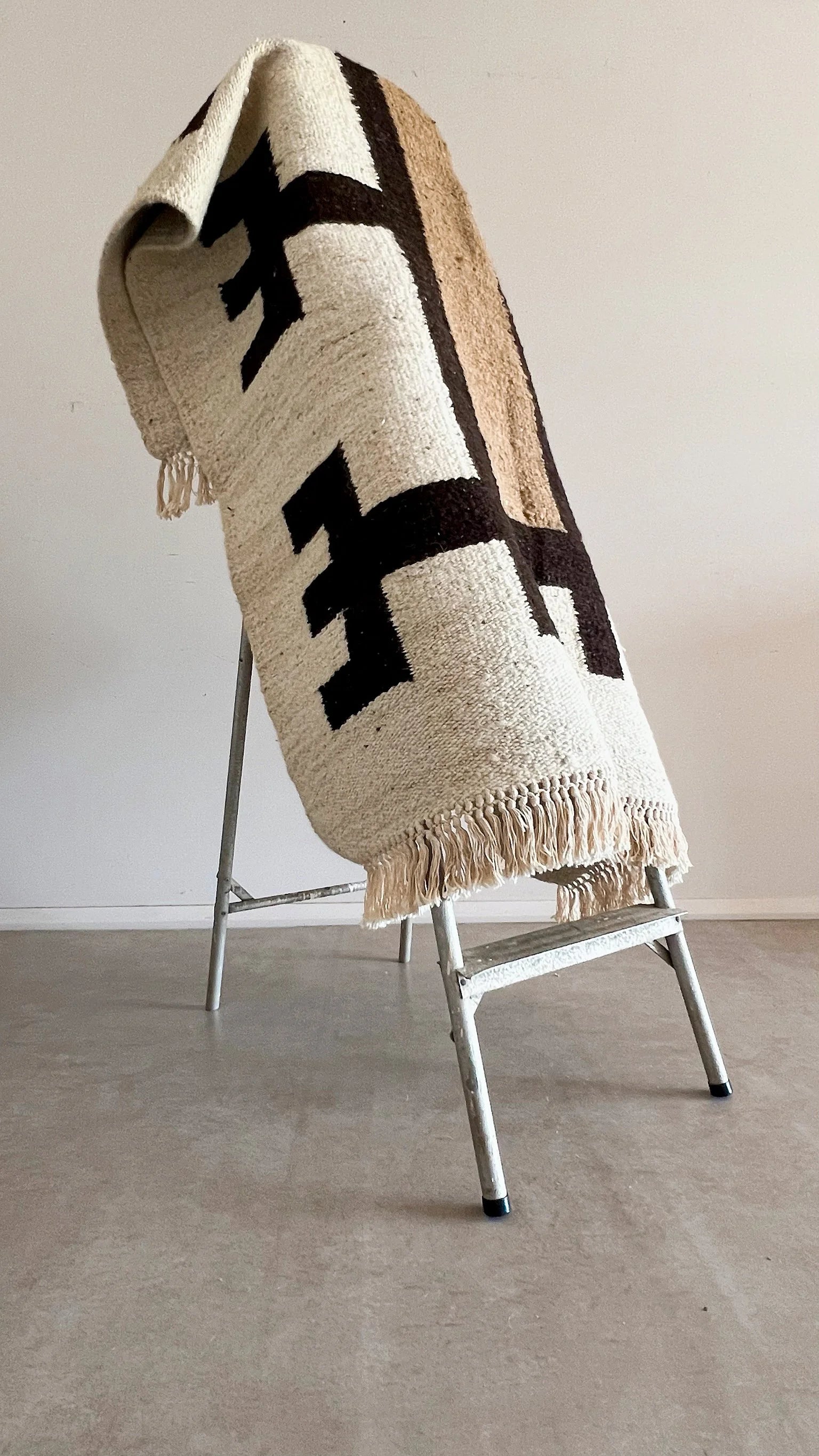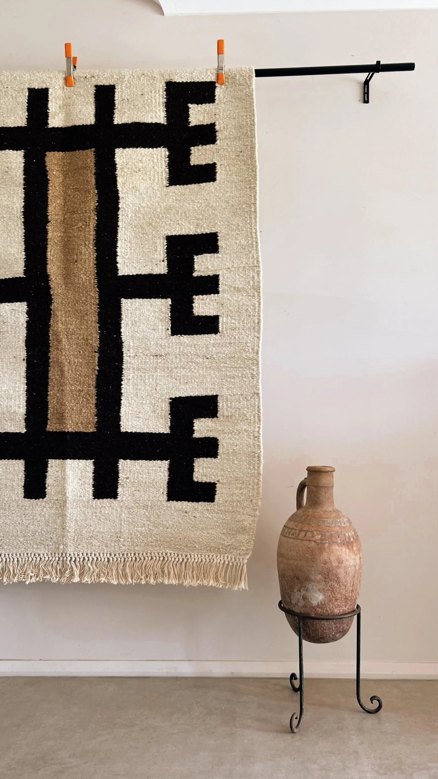 Handwoven using plant-based dyes, Masana carries warm, earthy tones and a linear design symbolising continuity. Textural and calm in presence.