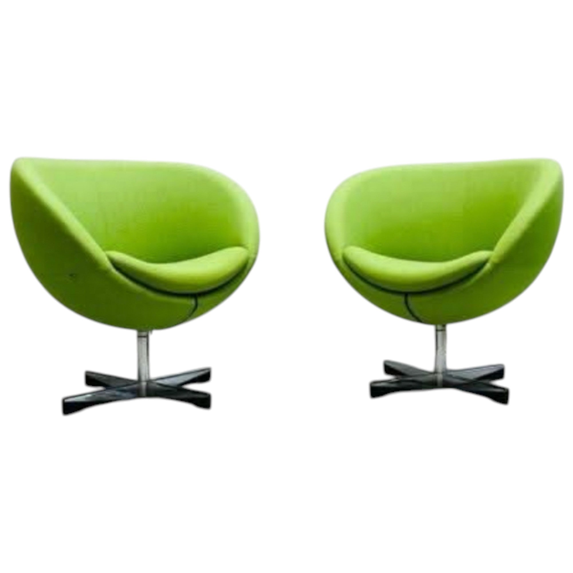 Originally termed the ‘Globus’ chair, the planet chair is a classic of renowned Norwegian designer Sven Ivar Dysthe. Produced in the 1960s by More Lenestolfabrikk, the chairs swivel and tilt. Upholstered in green wool with a chrome and timber base. In very good vintage condition.