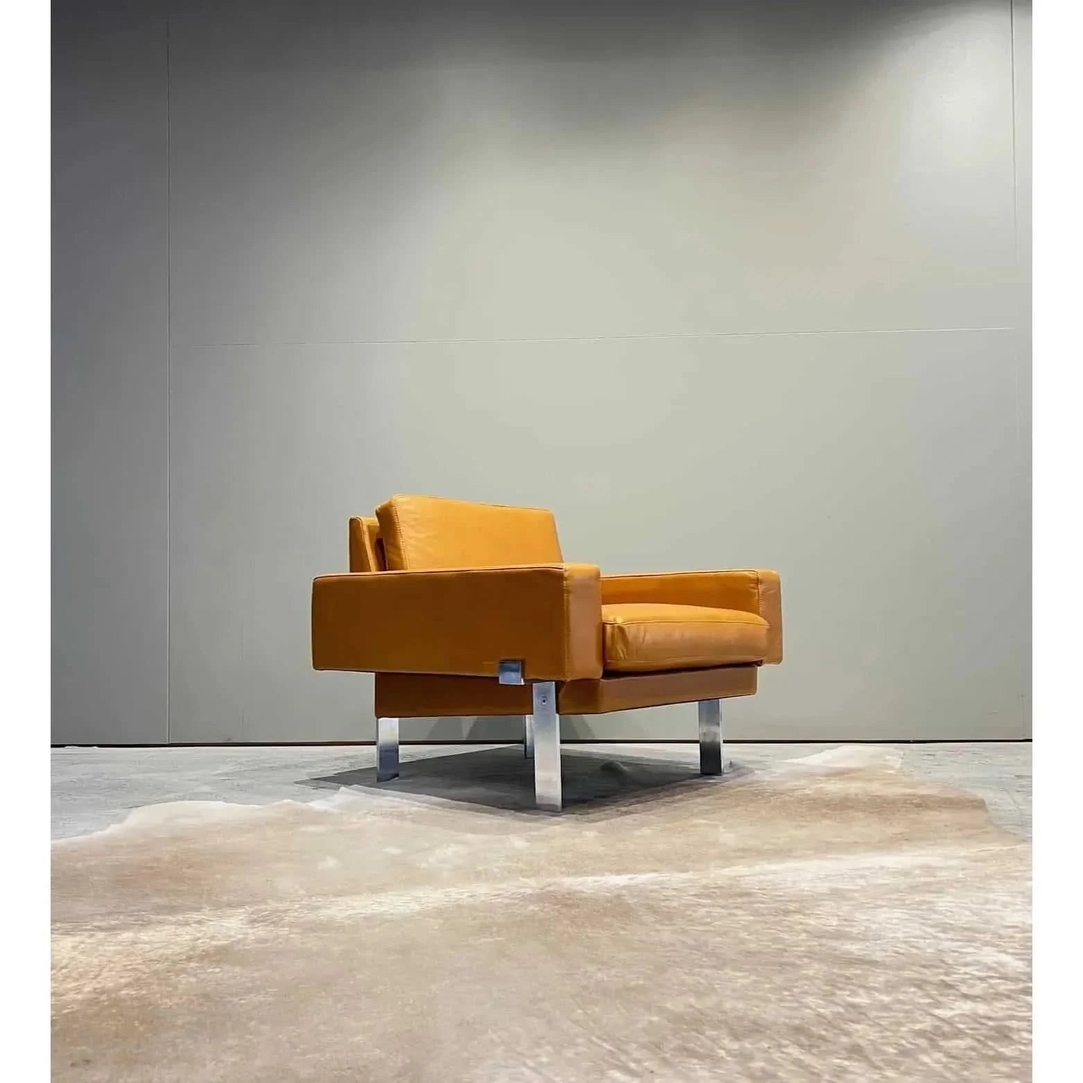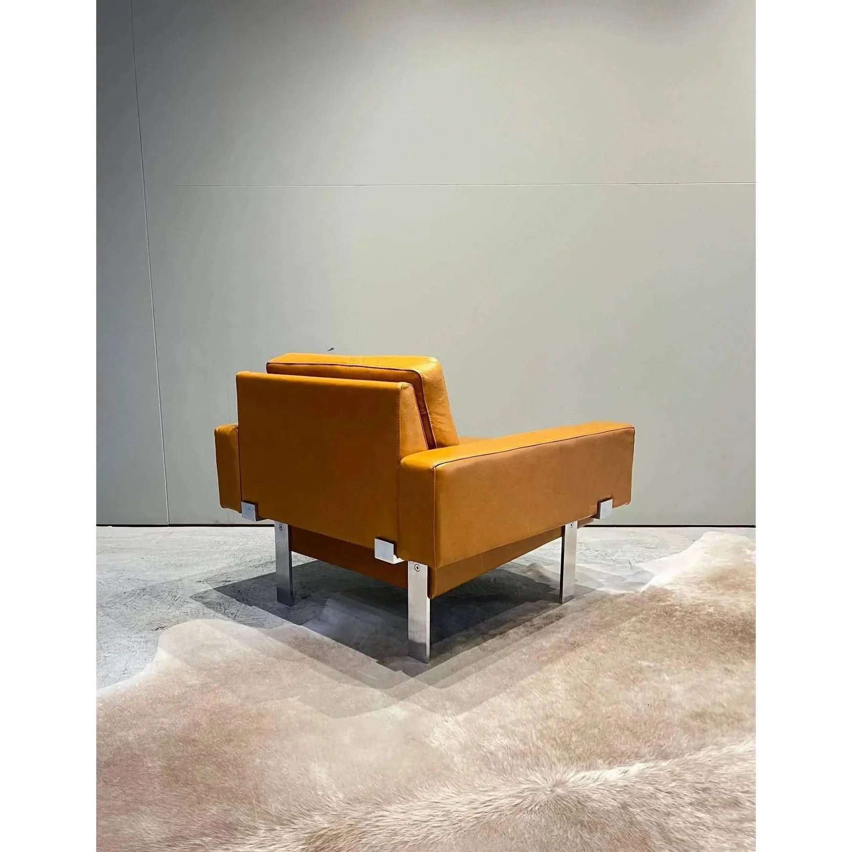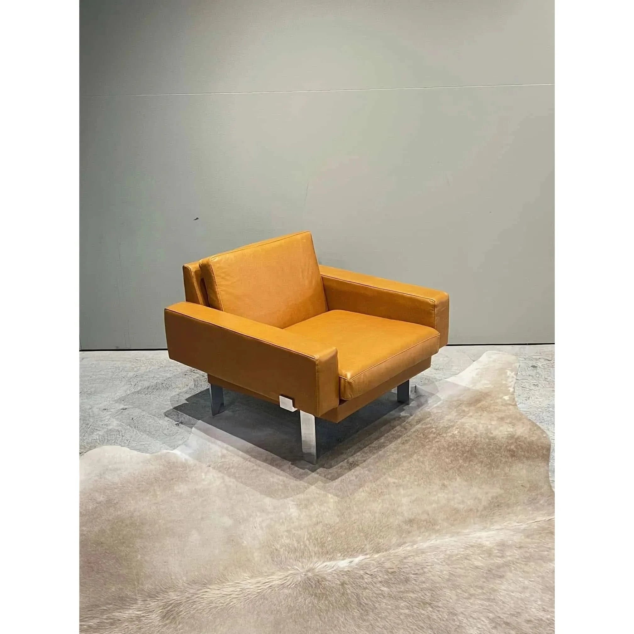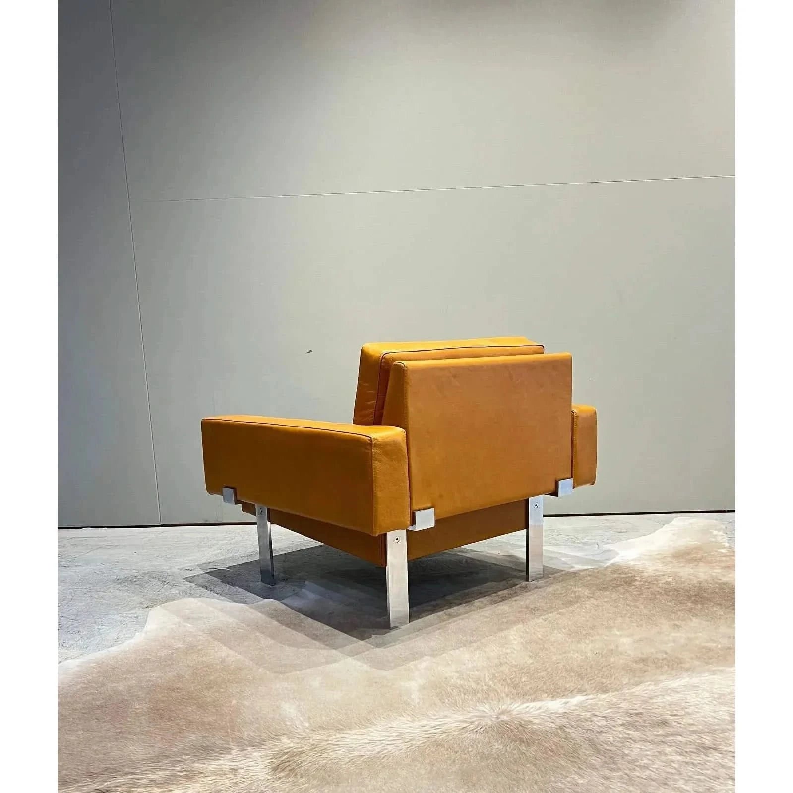 The Illum Wikkelsø leather armchair with chrome steel legs, crafted for Mikael Laursen in the 1960s. This mid-century modern leather armchair embodies Danish design with its sharp lines. Newly upholstered in luxurious cognac Italian leather sitting on top of its striking chrome steel legs. Perfect as a Scandinavian lounge chair, making it a statement piece for Australian homes or offices.