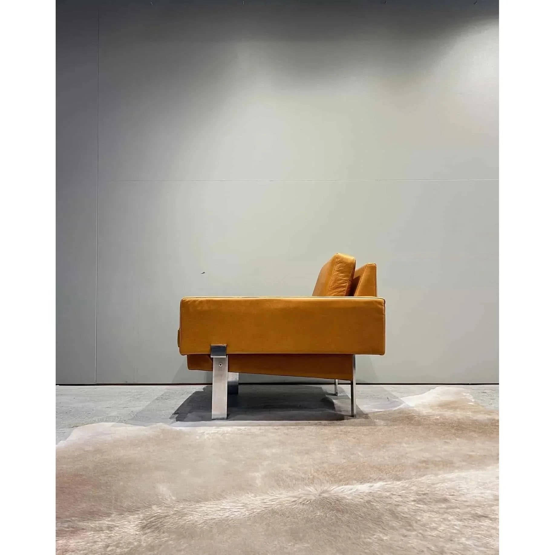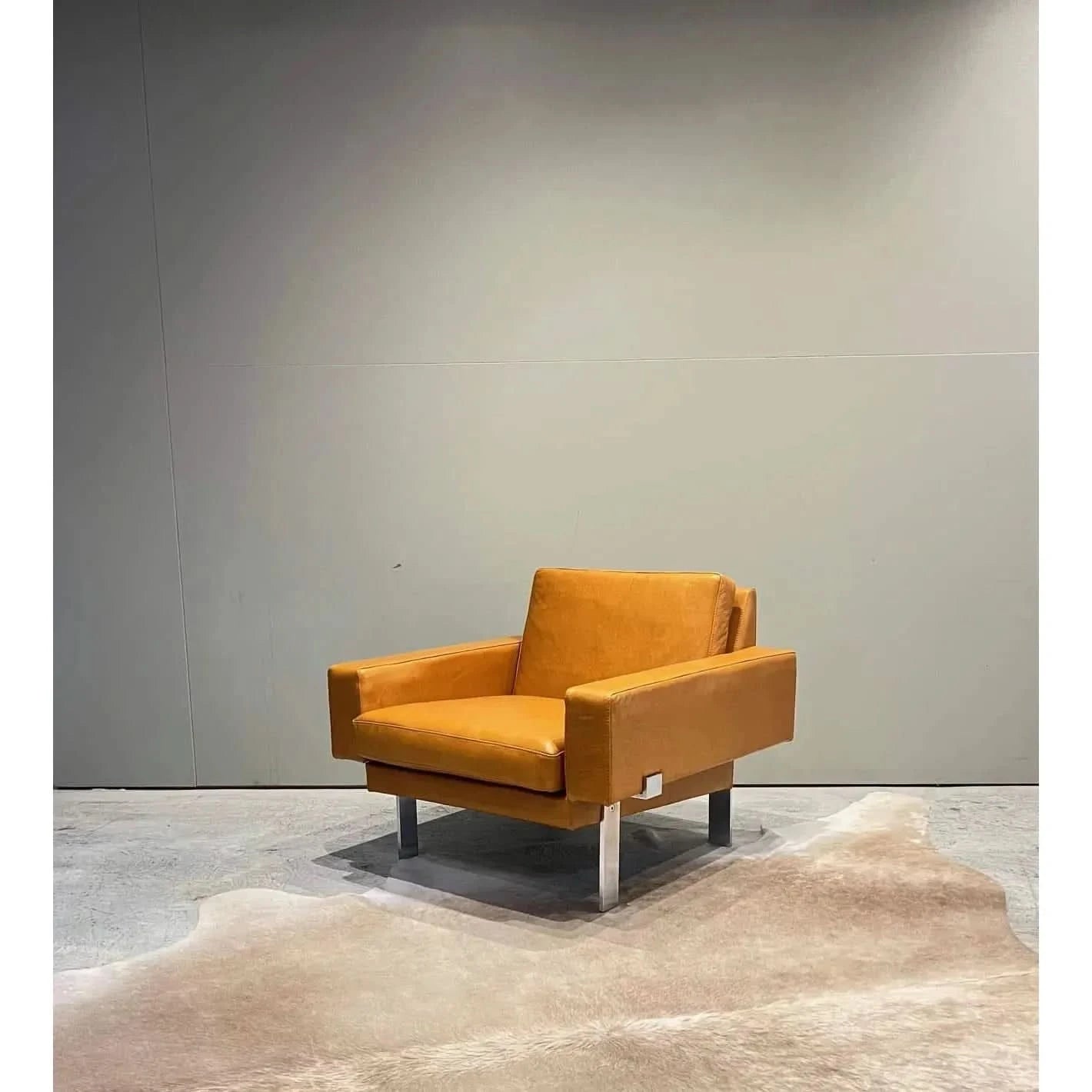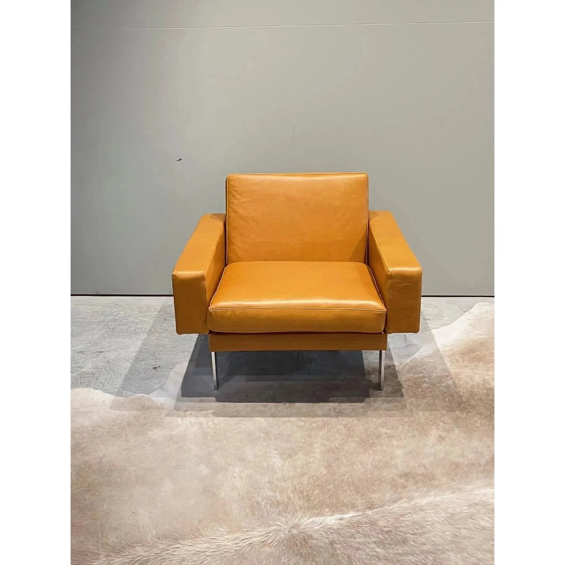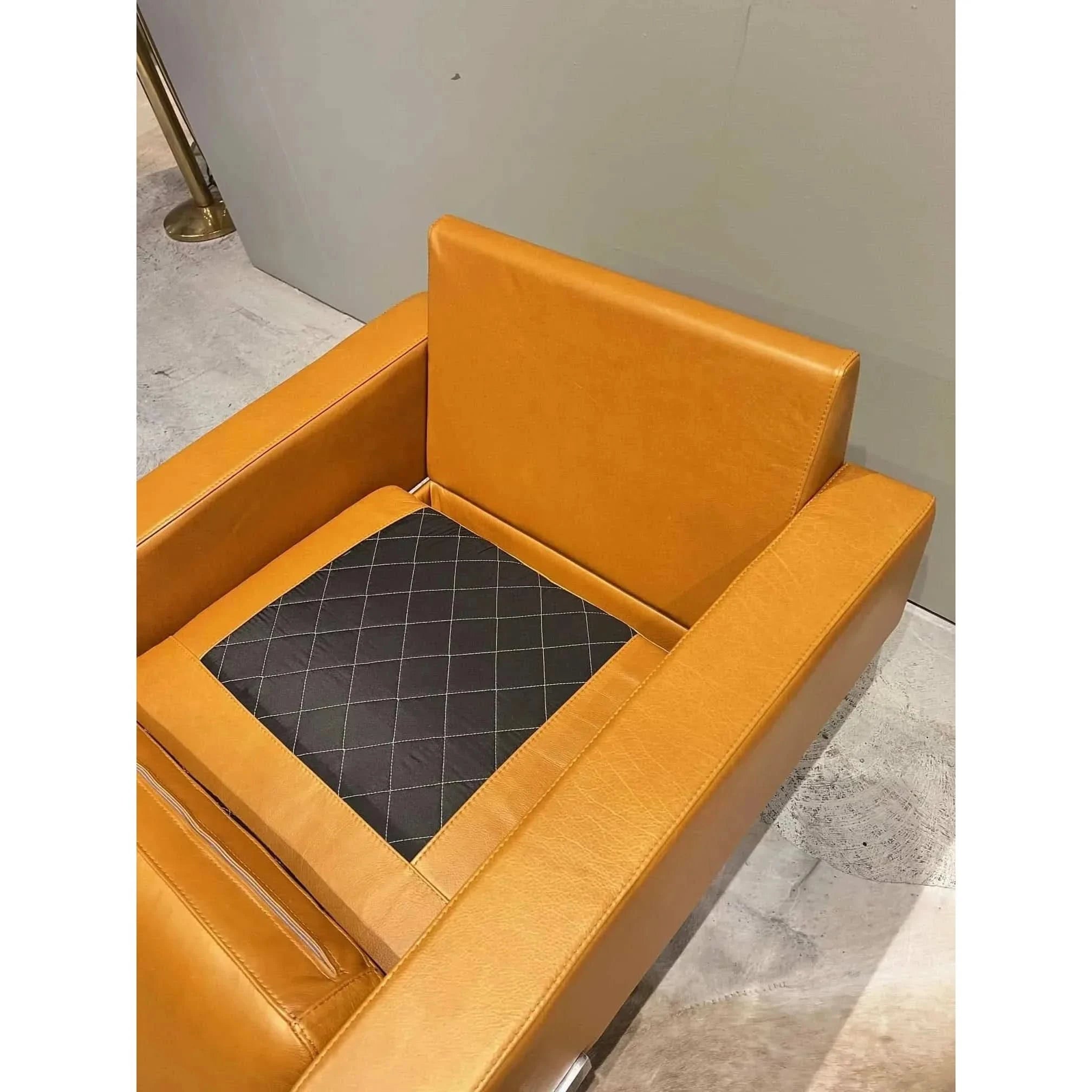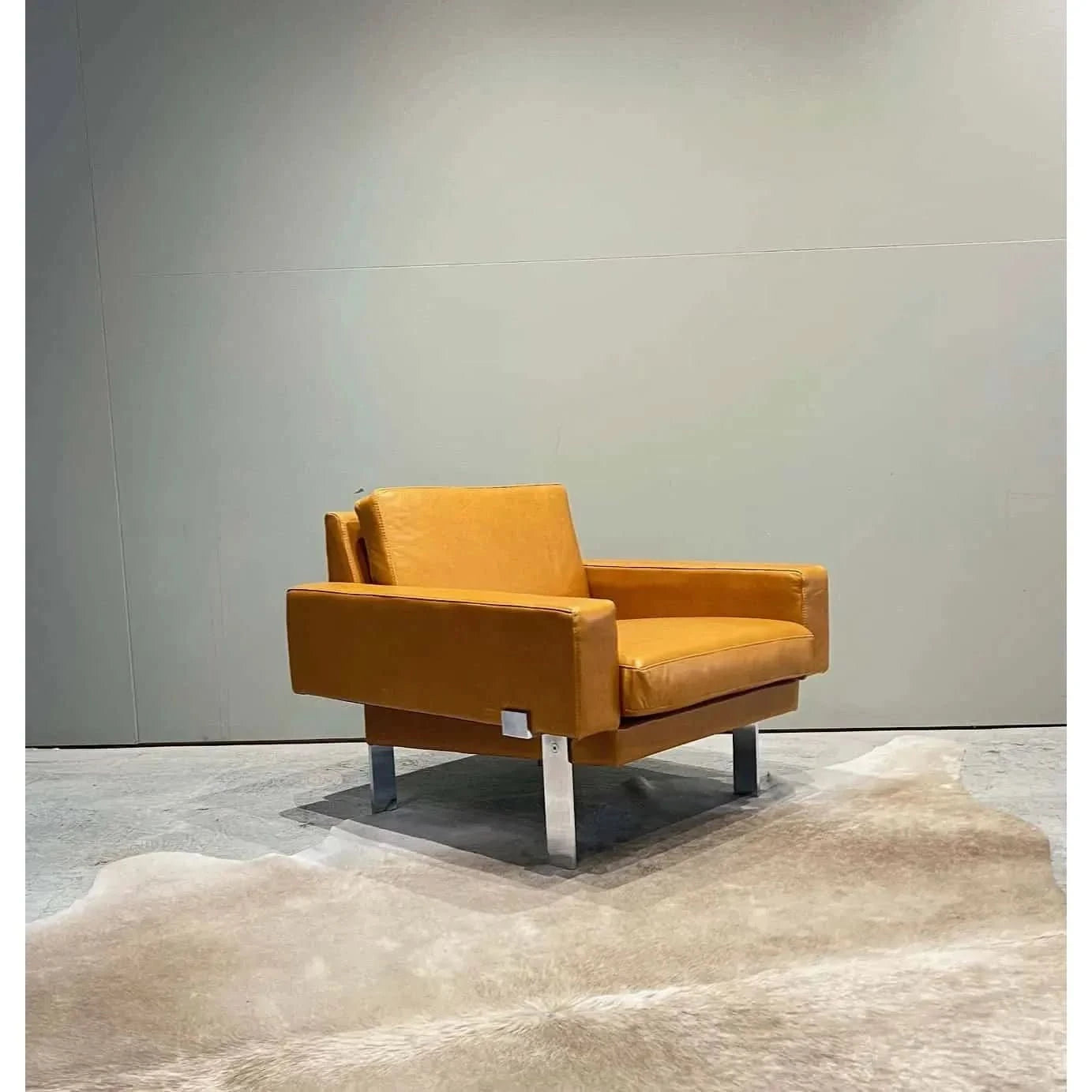 The Illum Wikkelsø leather armchair with chrome steel legs, crafted for Mikael Laursen in the 1960s. This mid-century modern leather armchair embodies Danish design with its sharp lines. Newly upholstered in luxurious cognac Italian leather sitting on top of its striking chrome steel legs. Perfect as a Scandinavian lounge chair, making it a statement piece for Australian homes or offices.