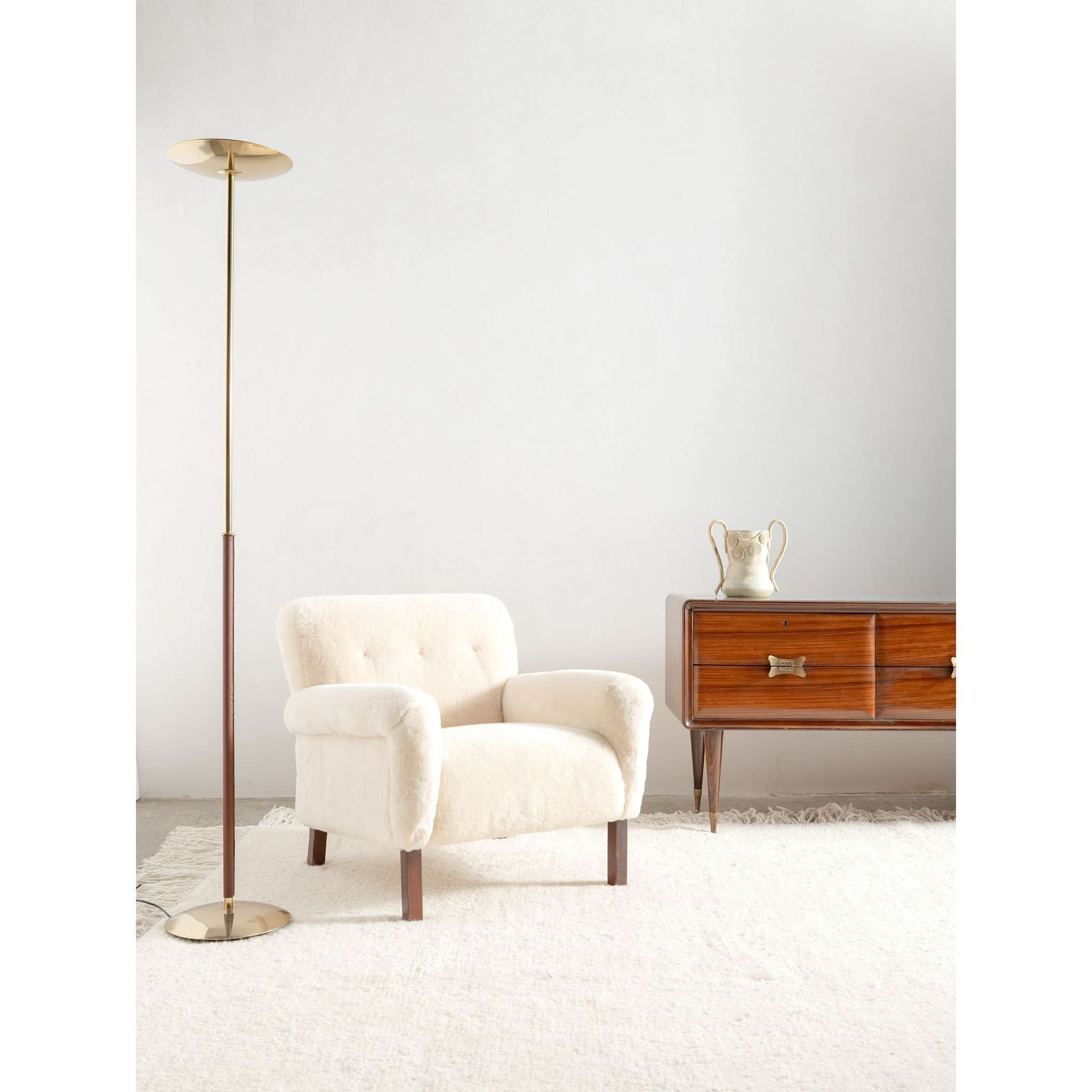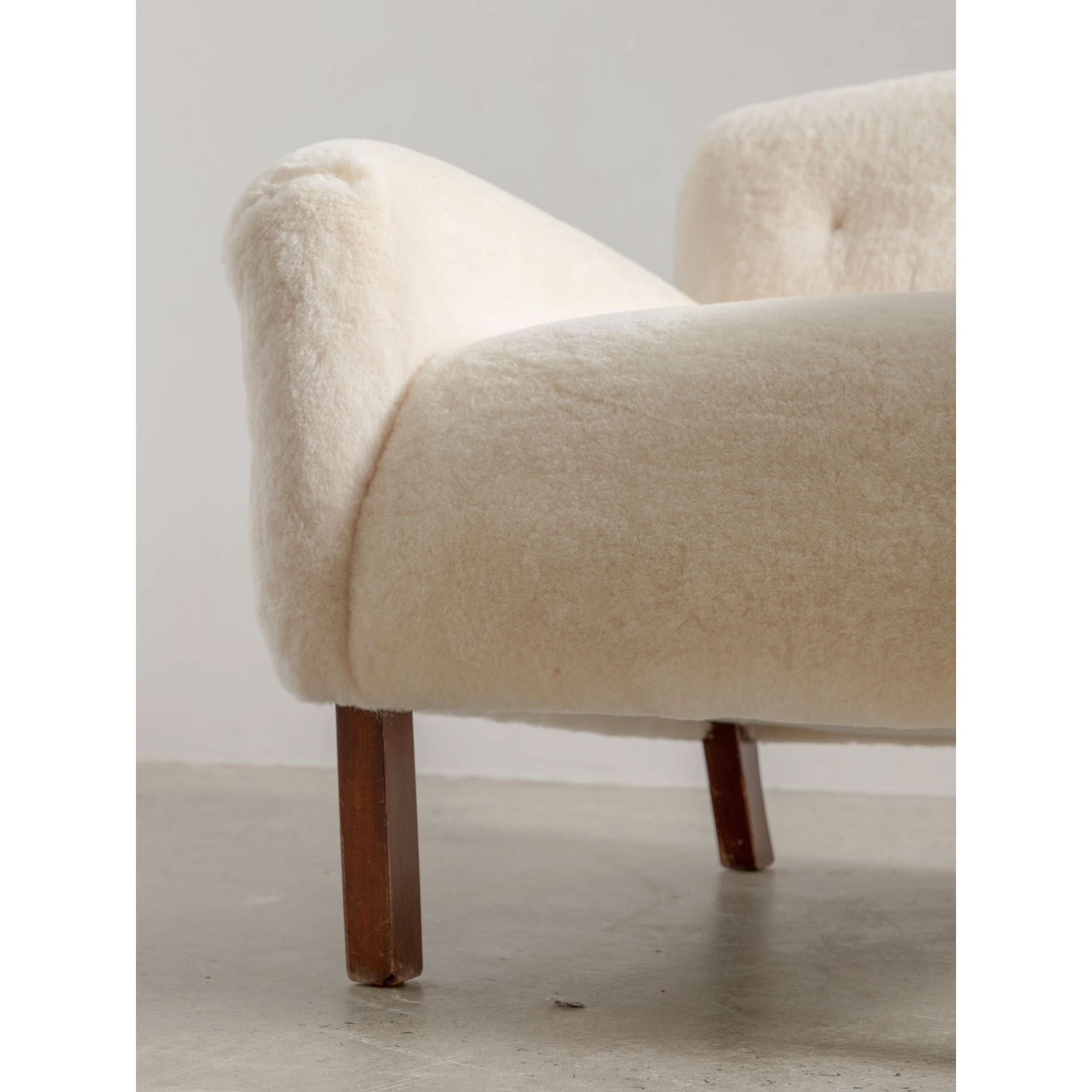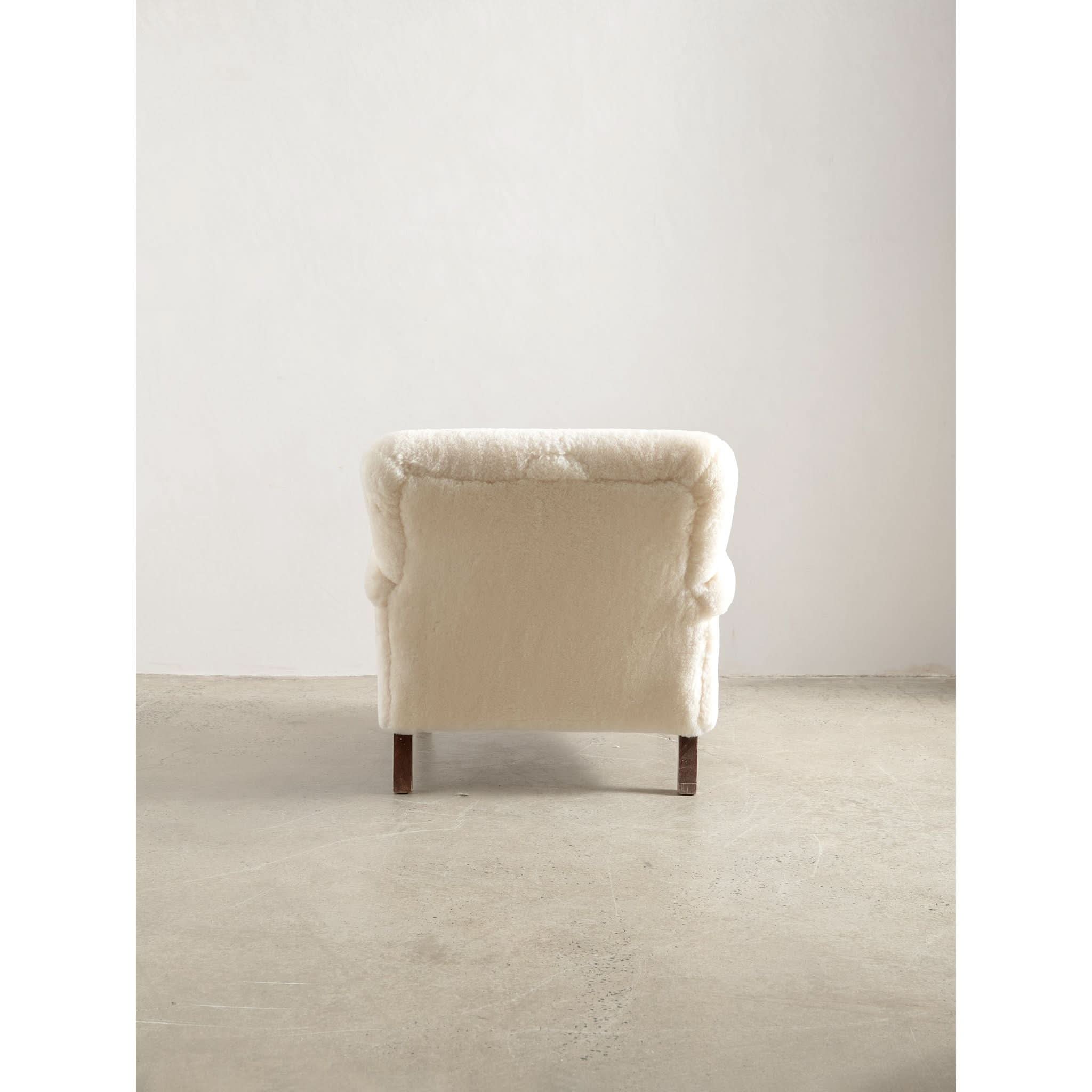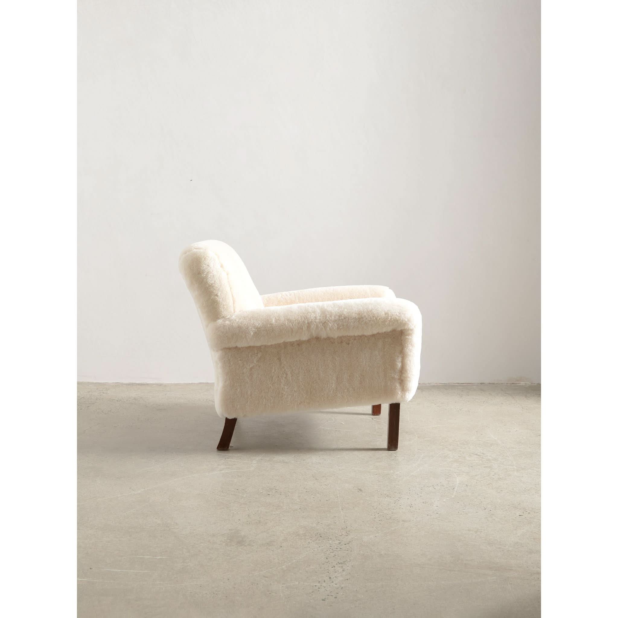 Sit back into the timeless elegance of the 1960s with the exquisite solid armchair, a testament to the artistry of mid-century design. Meticulously reupholstered in the finest cream sheepskin, the piece offers a sumptuous blend of texture and warmth, inviting you to sink into its soft embrace.