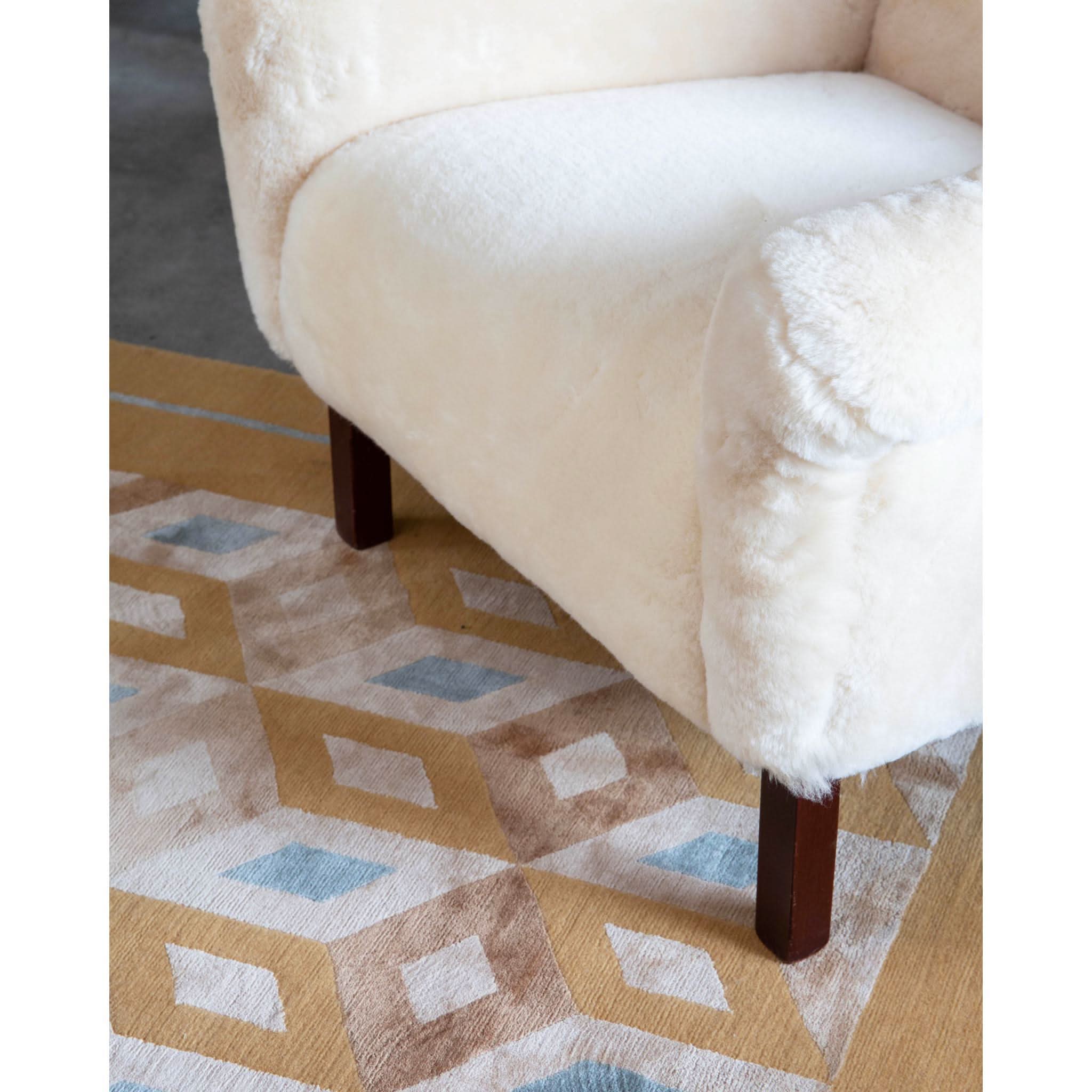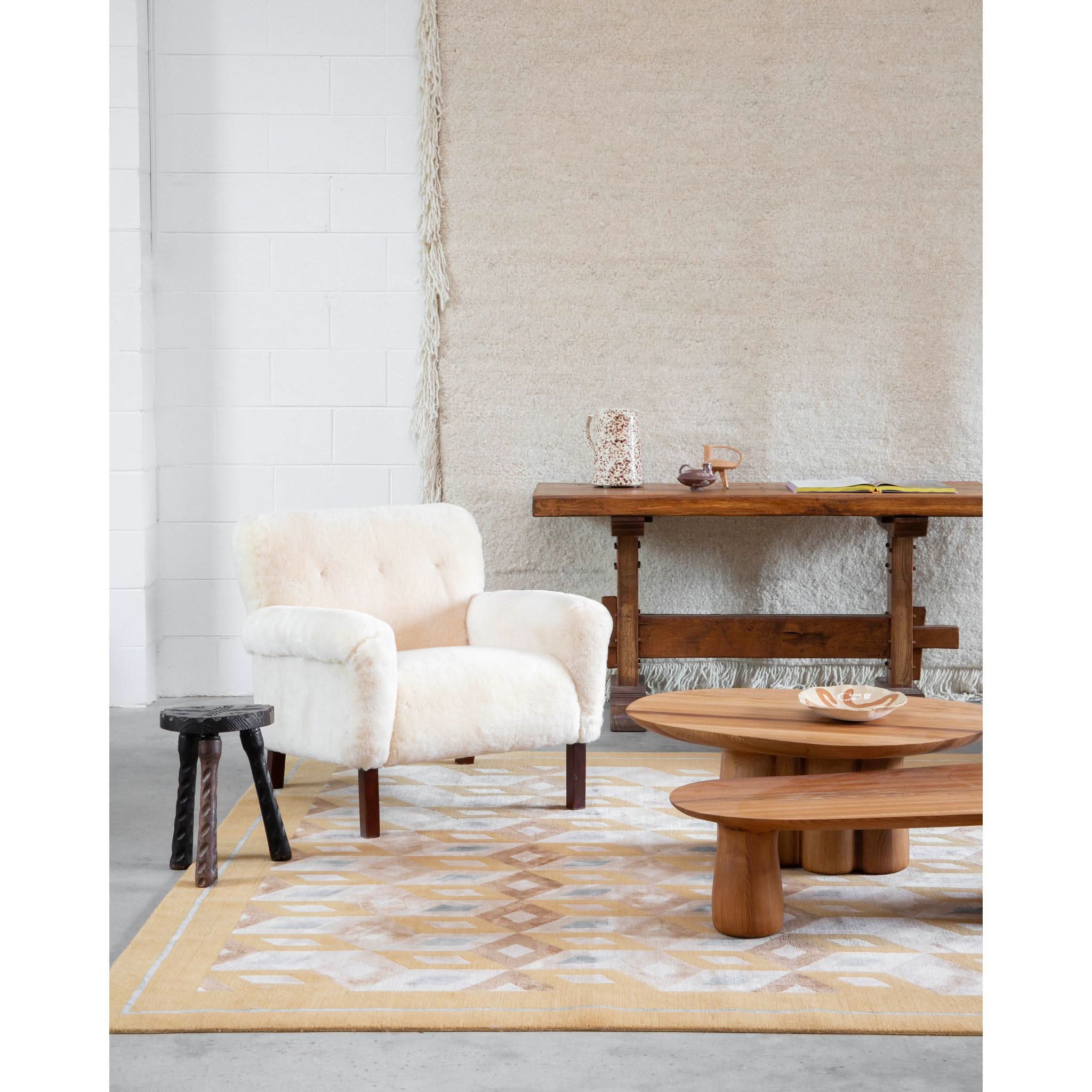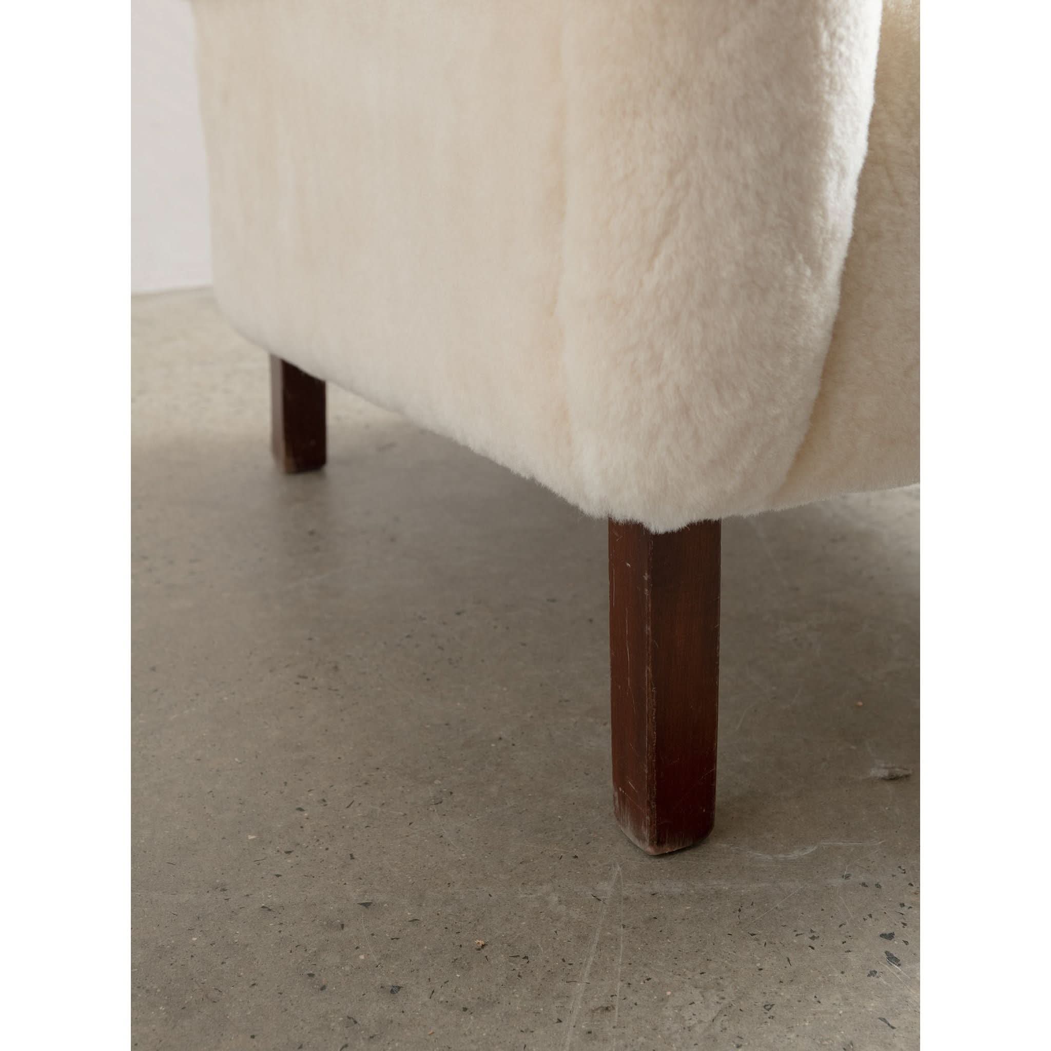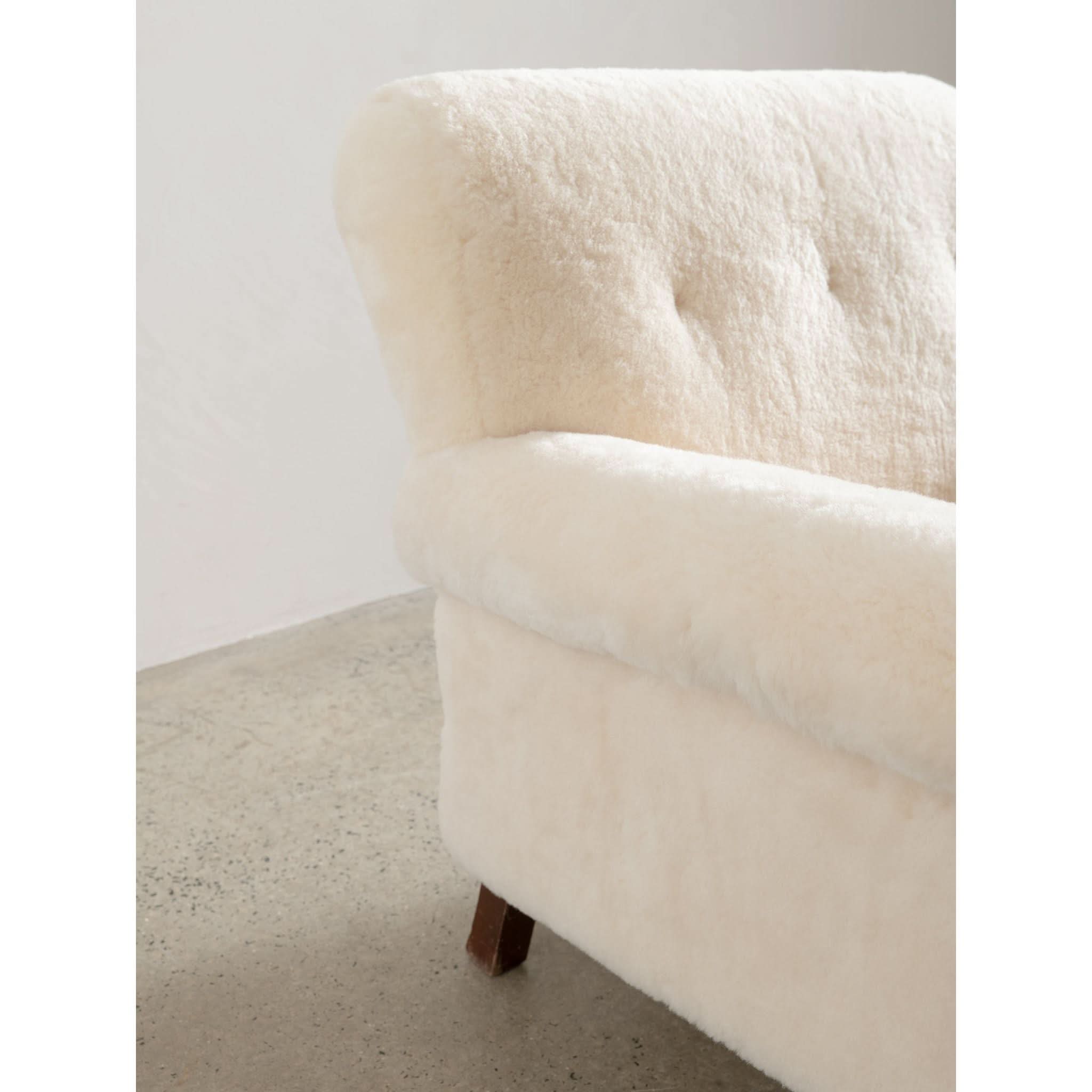 With a solid wood frame, clean lines and sturdy build, the sheepskin adds of layer of modern luxury and a harmonious balance of vintage charm and contemporary comfort.
