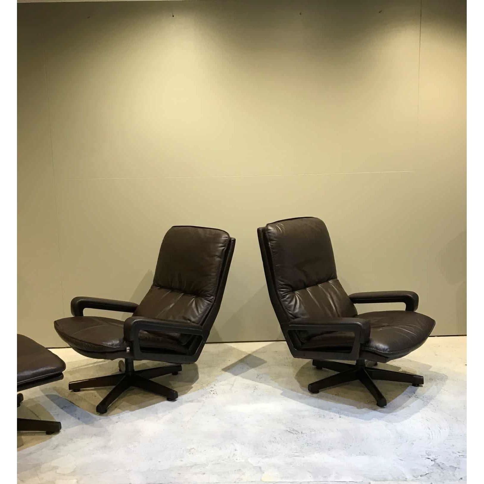 King, swivel, leather lounge chair, by Andre Vandenbeuck, for Strassle, Switzerland 1970s.