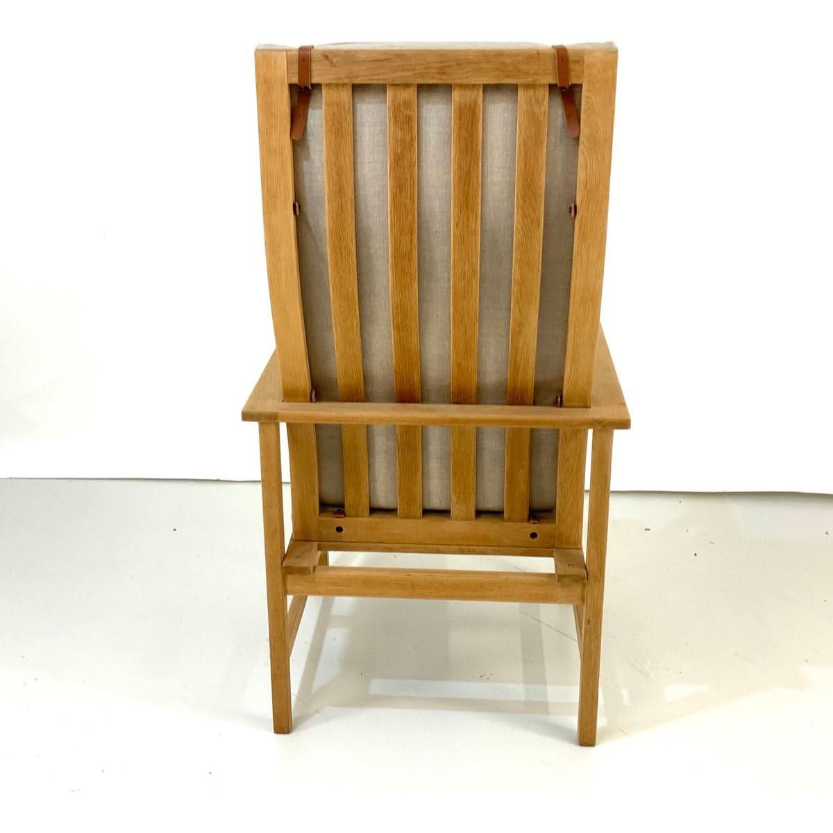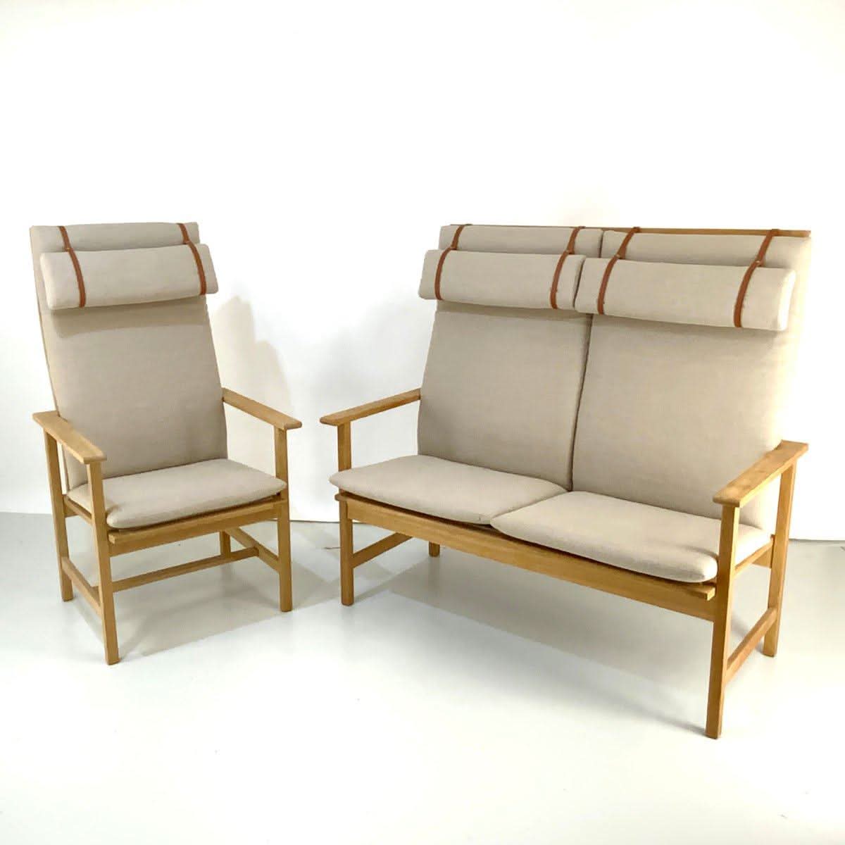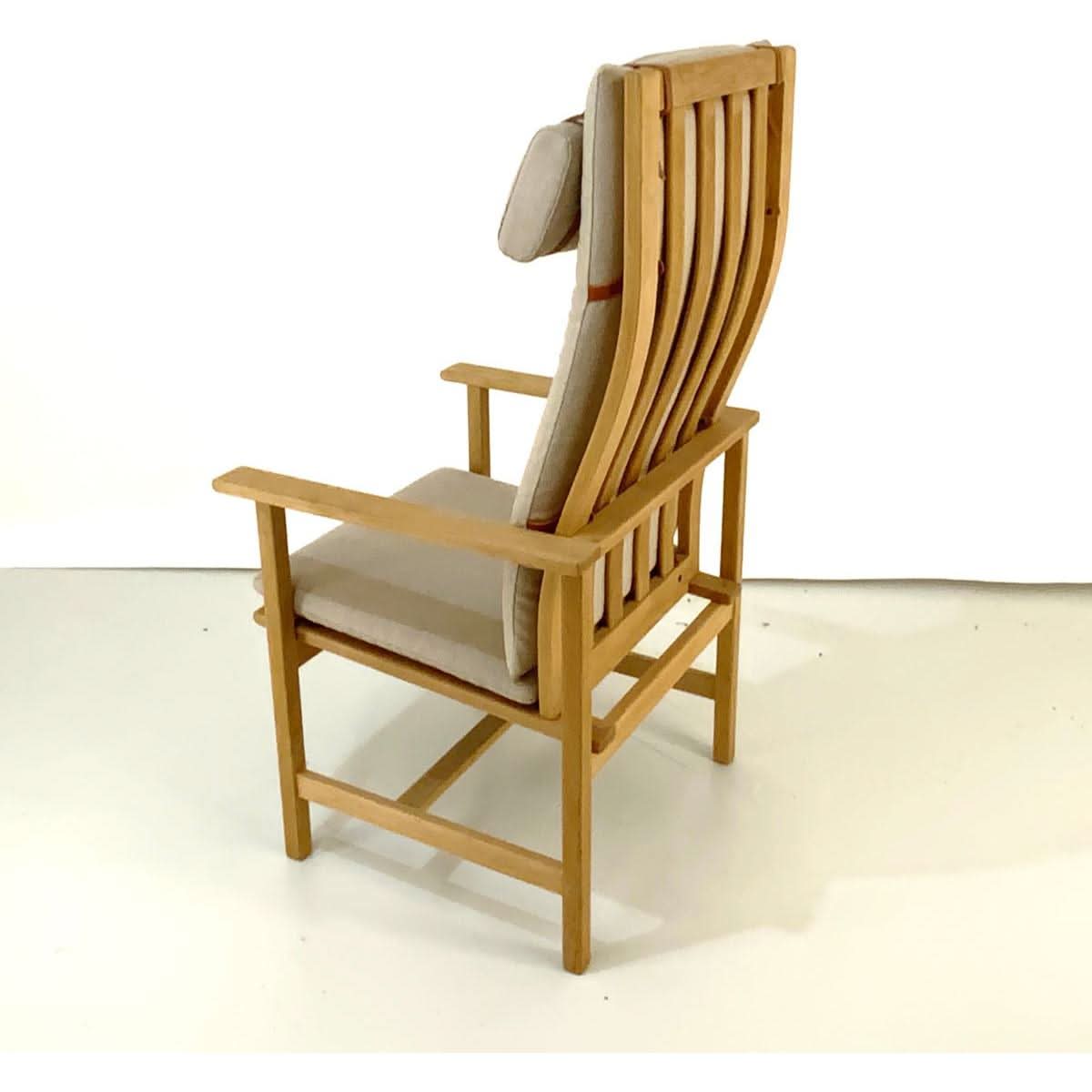 Slatted Oak High-back Single Chair (electric series). Now upholstered in linen. Matching 2-seater & 3-seater sofas also available.