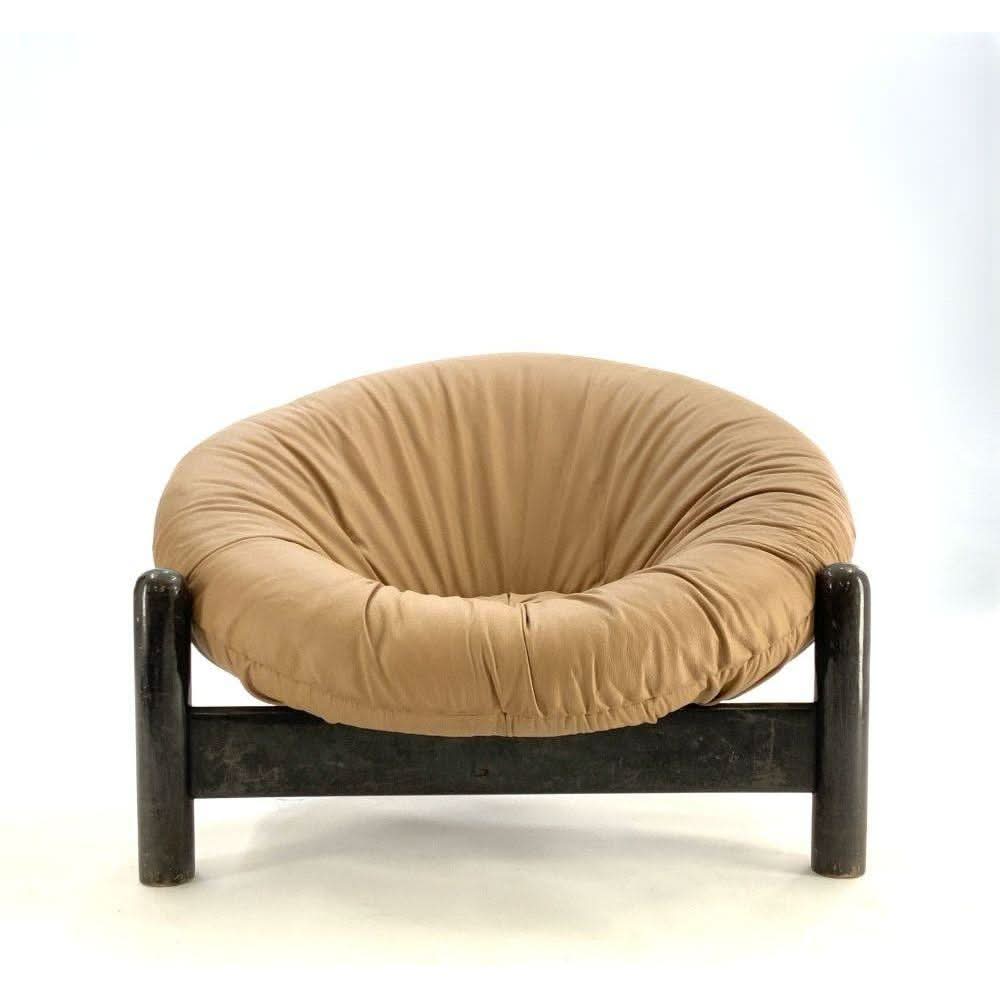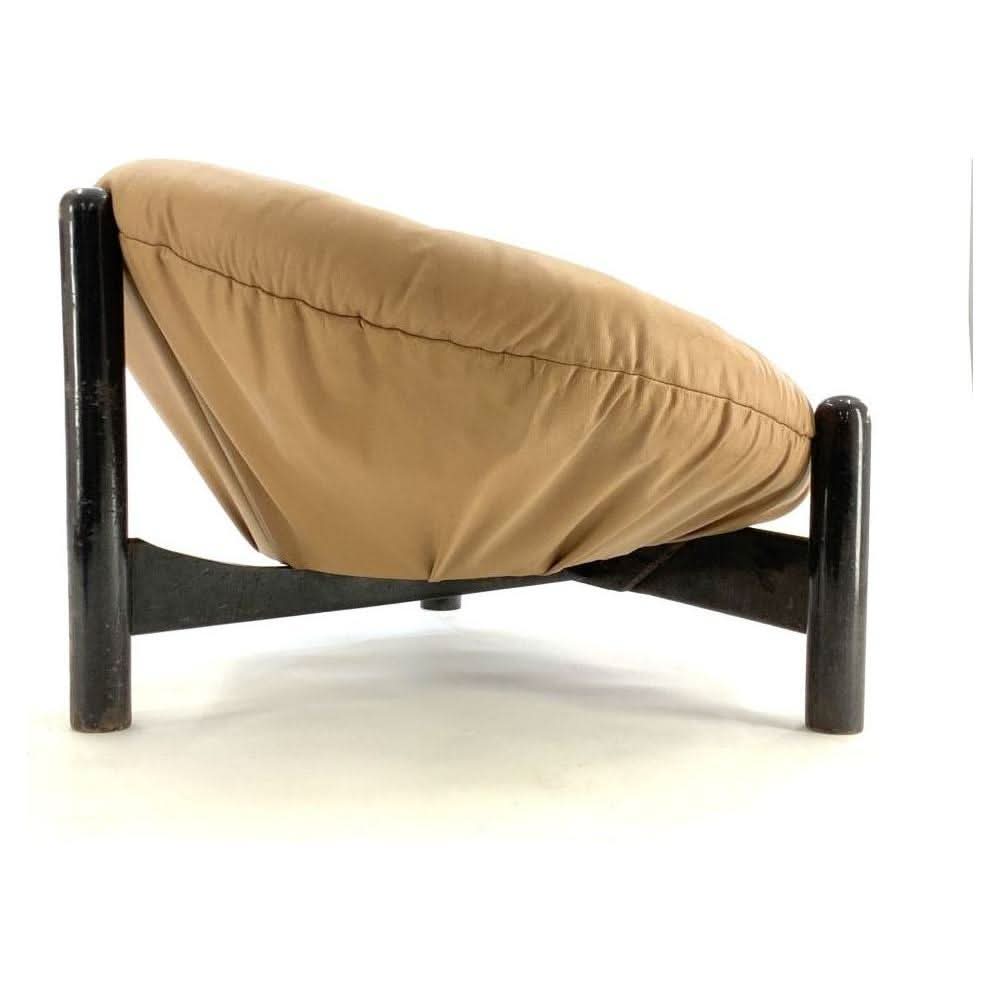 Original Brazilian Tan Leather and Black Lacquered Frame Easy Chair in the style of Percival Lafer.