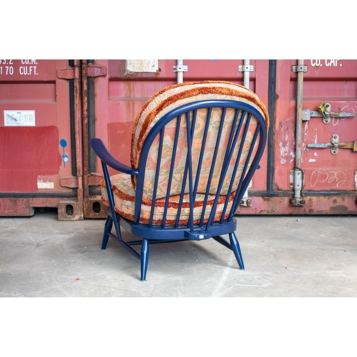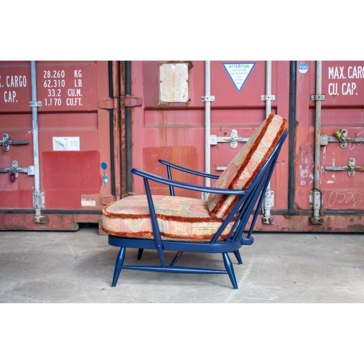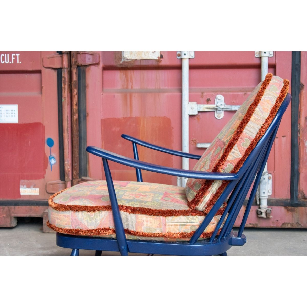 The solid timber frame — likely beech — has been painted in a bold navy blue, giving this mid-century classic a fresh, unexpected edge. While the original finish has been lost, the painted surface adds individuality and contrast, perfect for eclectic interiors or creative spaces.