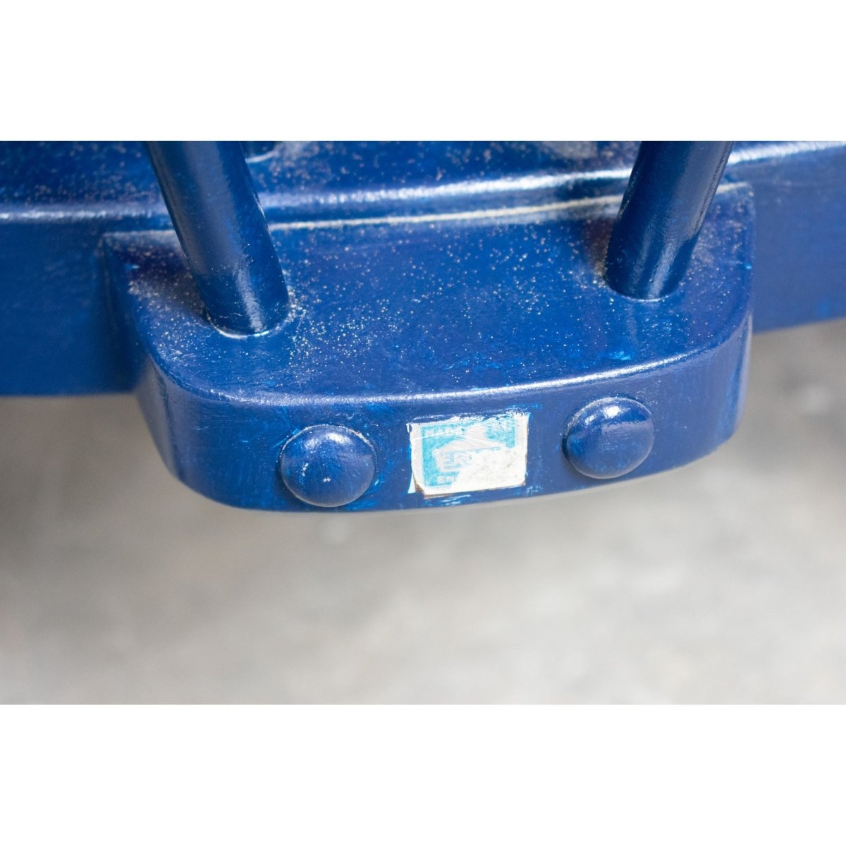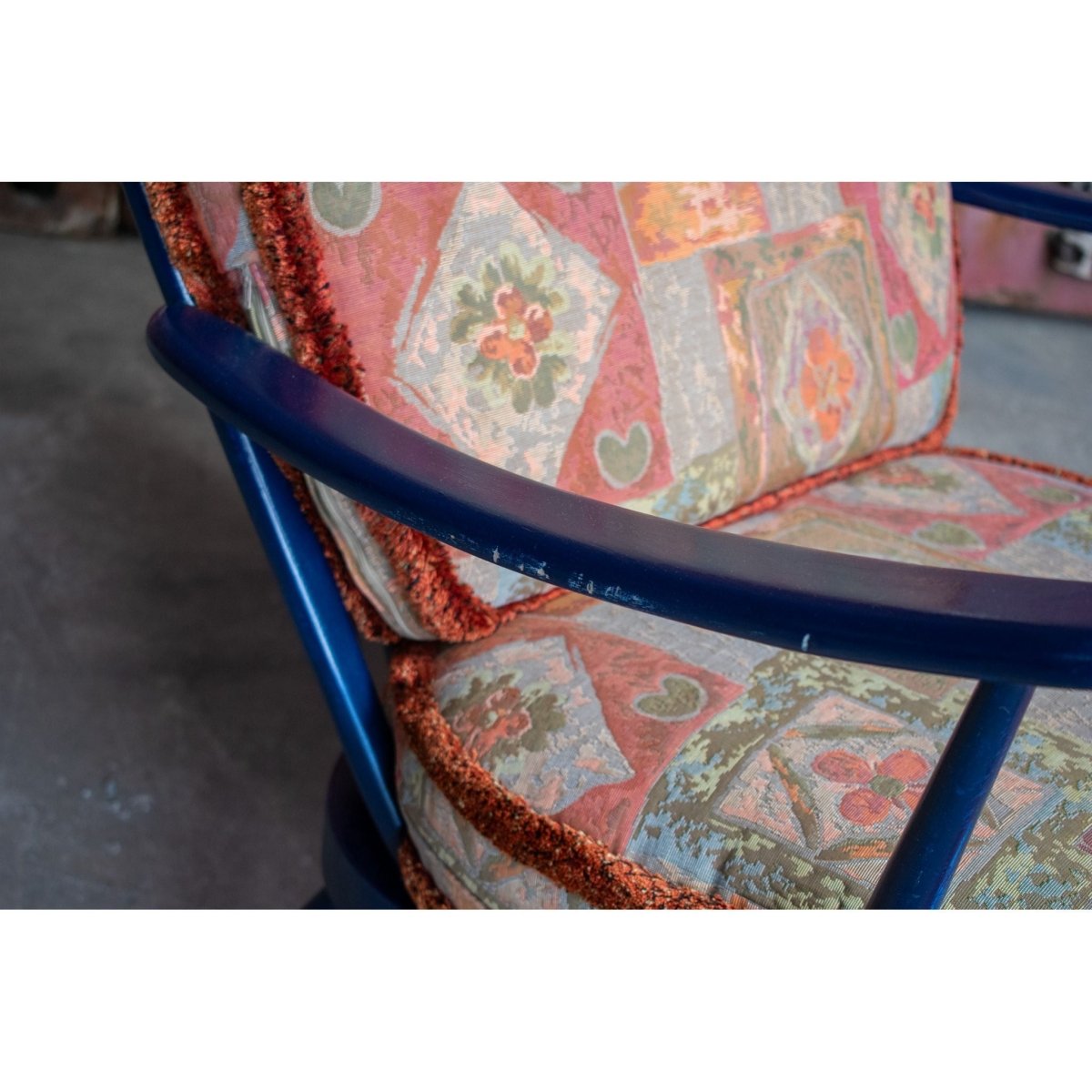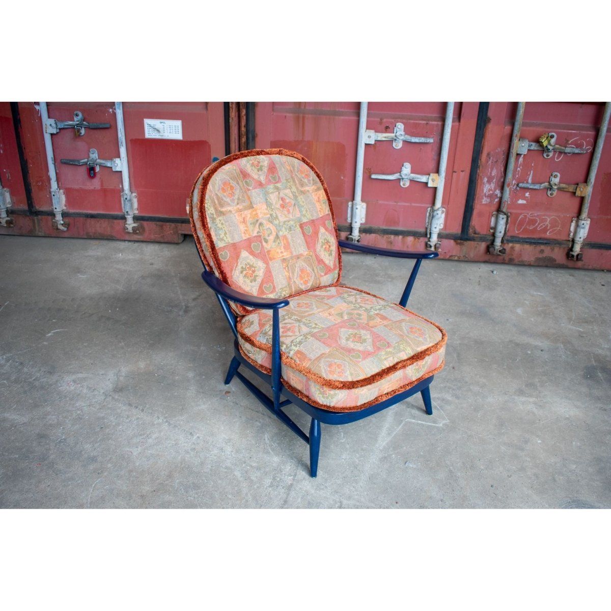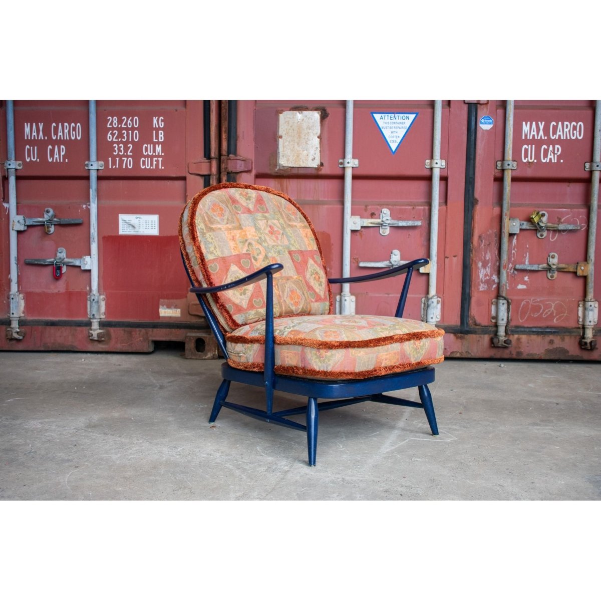 The solid timber frame — likely beech — has been painted in a bold navy blue, giving this mid-century classic a fresh, unexpected edge. While the original finish has been lost, the painted surface adds individuality and contrast, perfect for eclectic interiors or creative spaces.