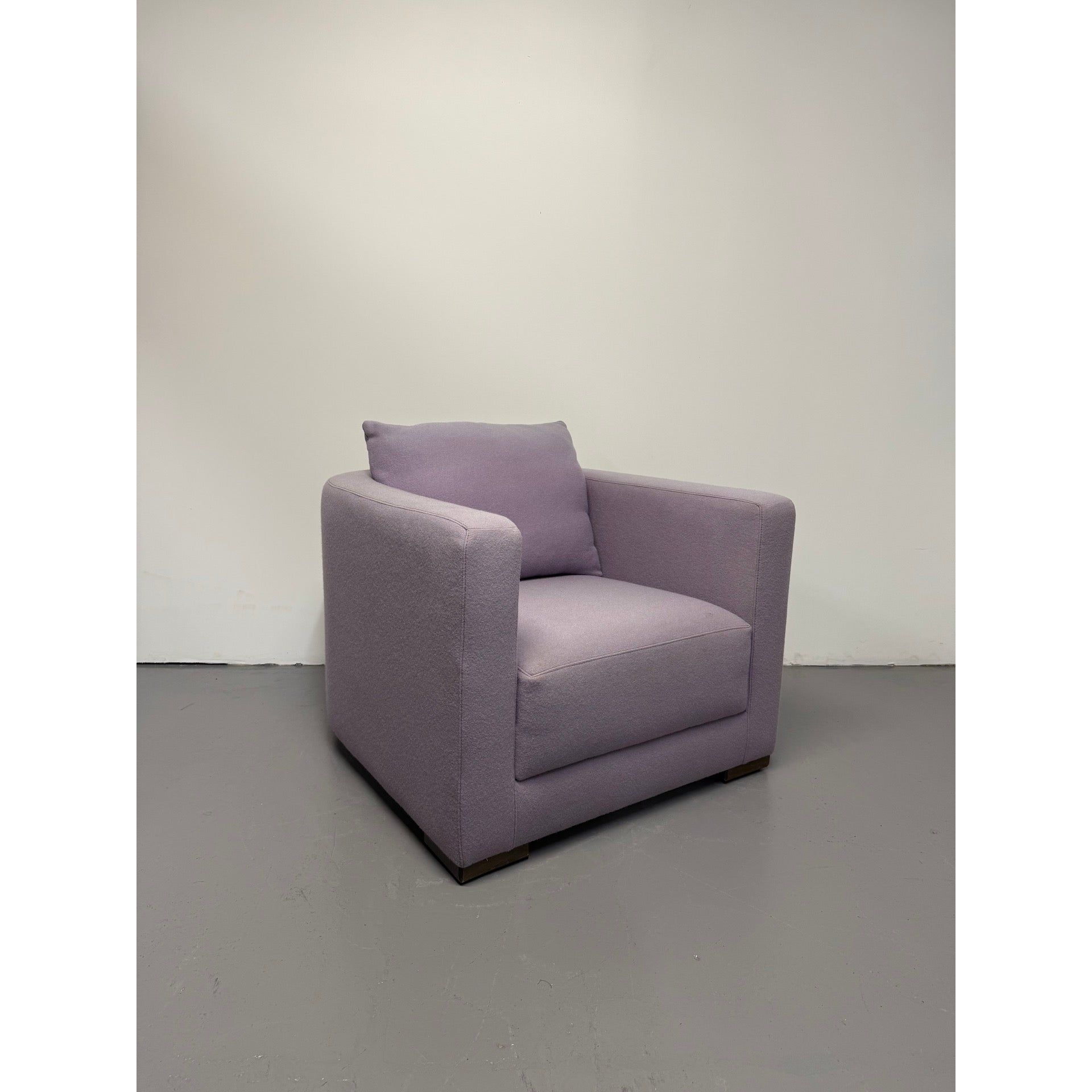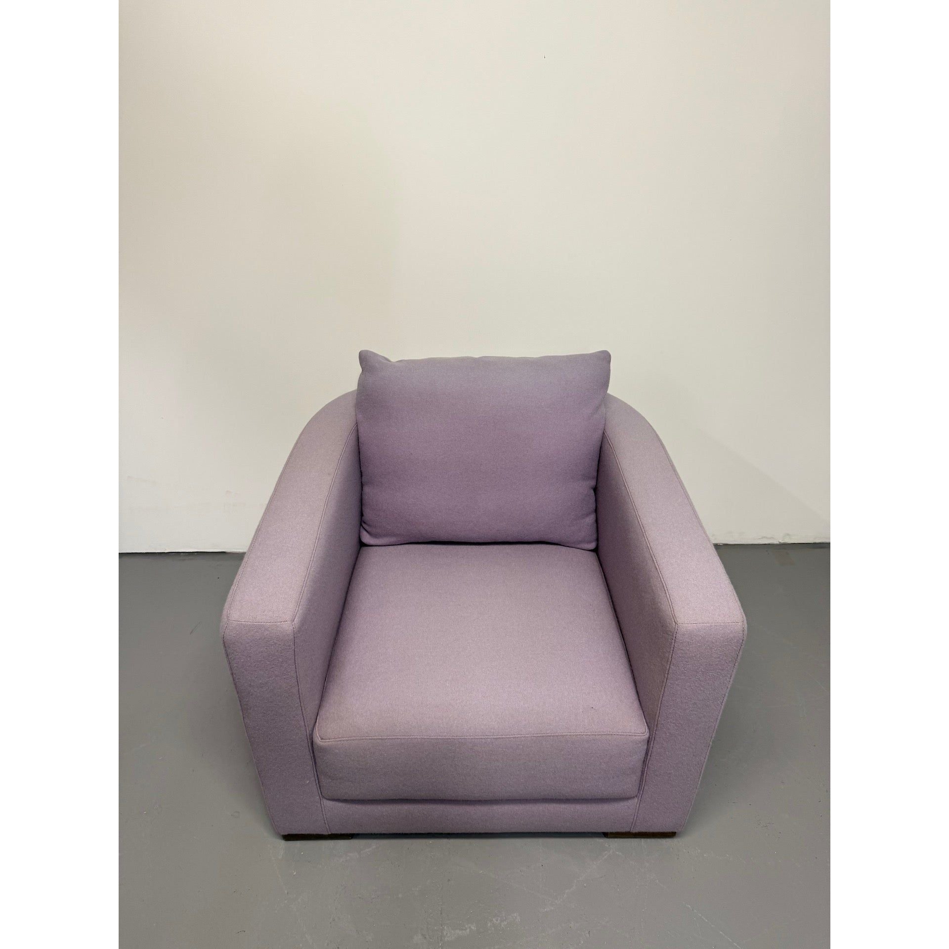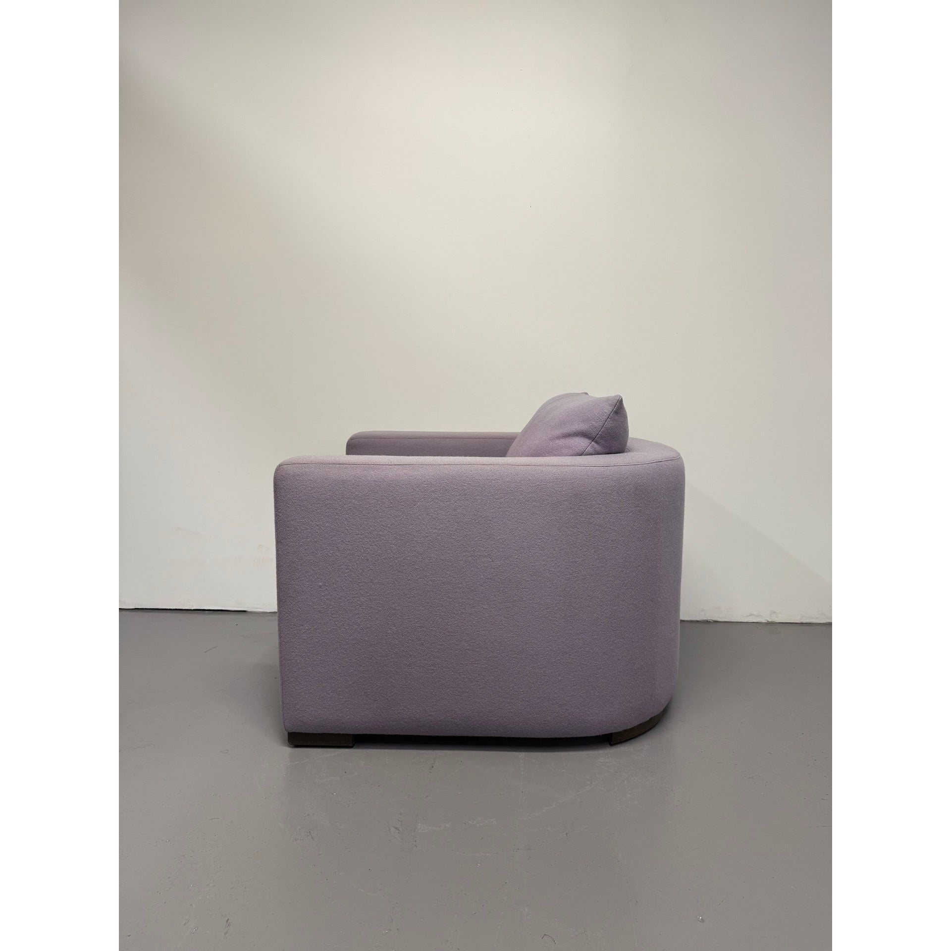 The Oscar Tub Arm Chair by Jardan is an Australian-made piece that blends sculptural design with everyday comfort. Upholstered in a soft purple wool fabric, it brings a refined yet playful tone to any space. With its solid timber base, plush cushioning, and curved design, the Oscar is perfectly suited to both residential and commercial settings.