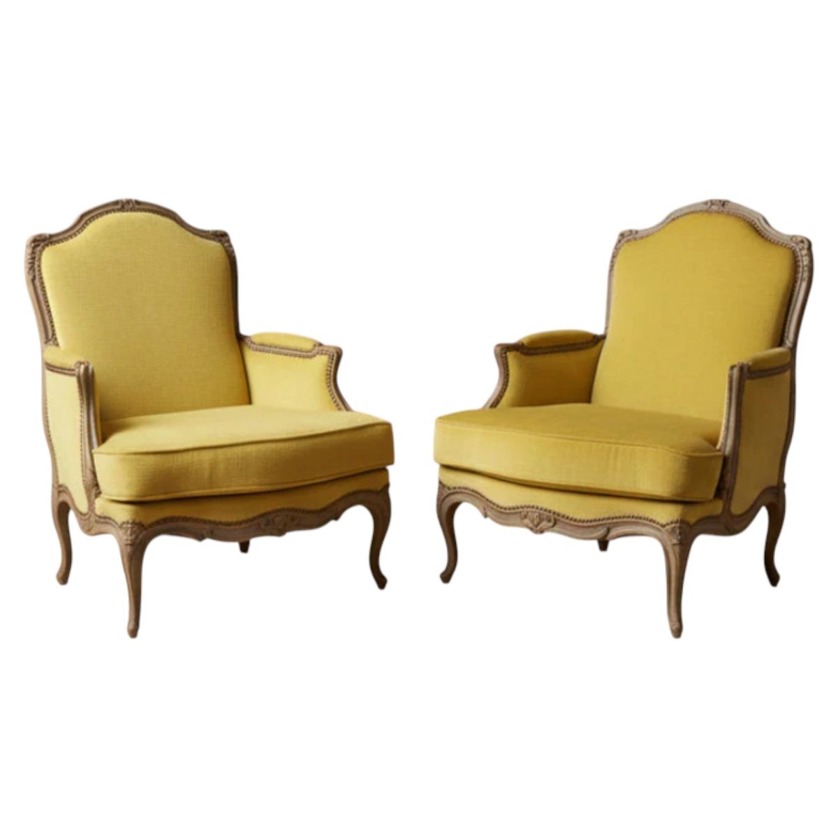 Transport yourself to a Parisian salon with this stunning pair of walnut fauteuils from around 1900, masterfully crafted in the coveted Louis XV tradition. Each chair showcases a sculptural silhouette with ornately carved foliate details gracing the backrest and frieze, while the cabriole front legs feature hand-carved floral motifs and refined reeding. Dressed in luxurious green fabric with brass stud embellishments and piped removable cushions, they deliver both visual drama and inviting comfort. The upholstery remains in pristine condition, and reinforced back bracing guarantees years of reliable support. These are the kind of statement pieces that anchor a room with Continental sophistication and timeless allure.