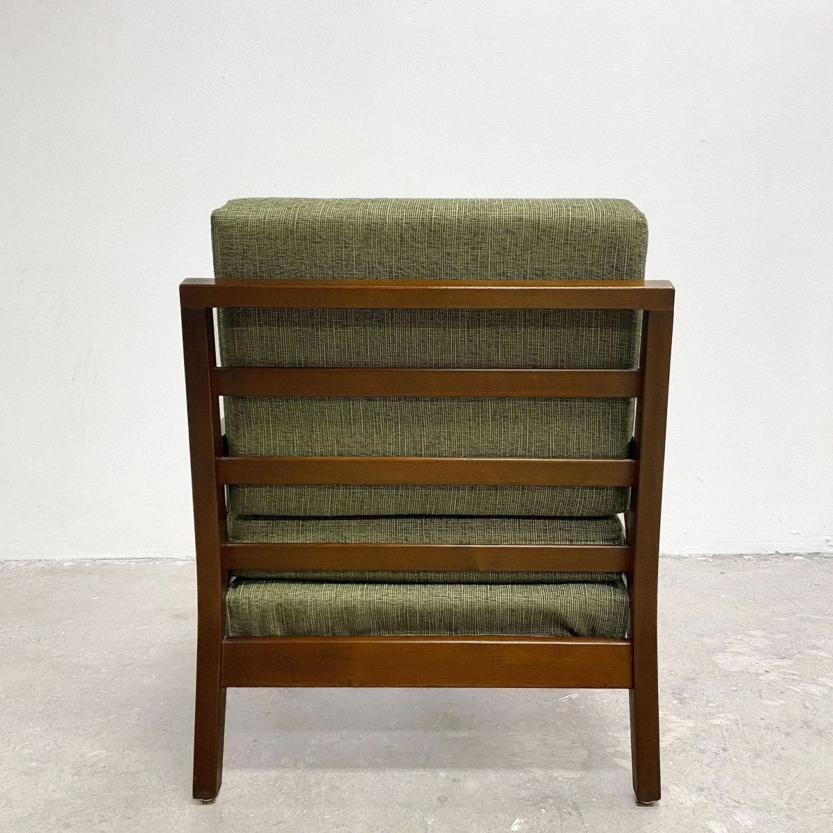 Frame in good original condition with minor signs of use commensurate with age. Newly upholstered removable/washable cushion covers and new removable seat cover over the springs .