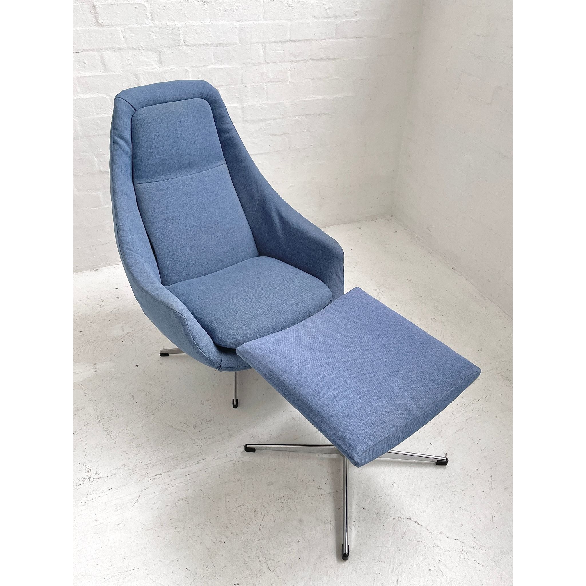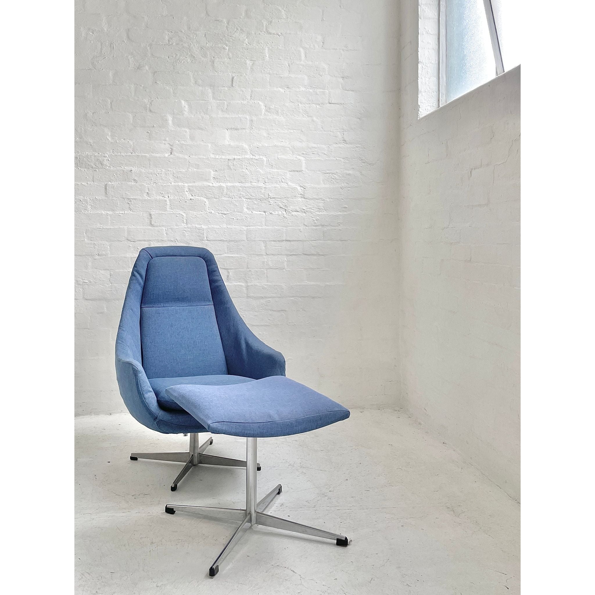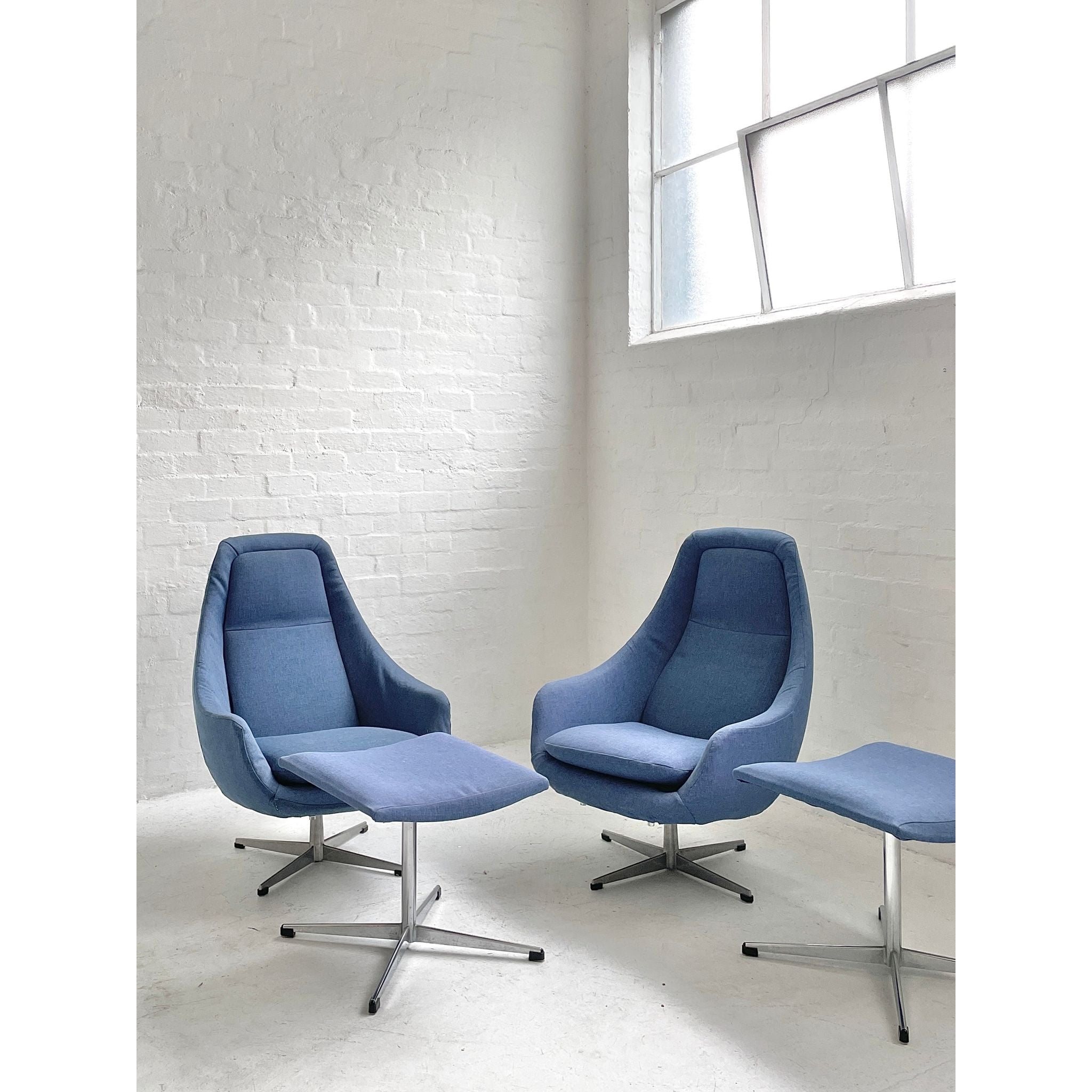 Produced by unknown maker/designer. Recent non-original upholstery. In vintage condition. Two available.