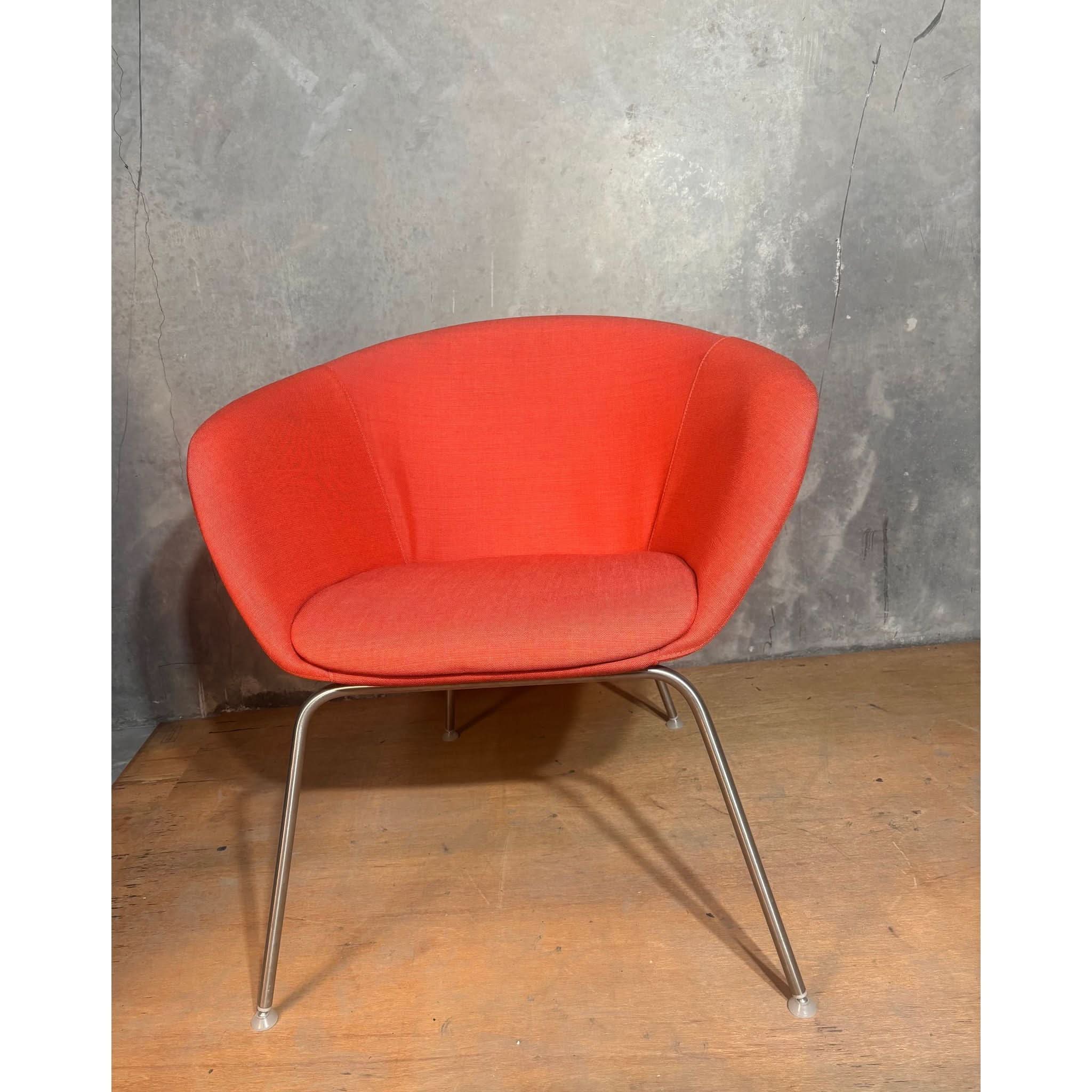 Comfortable upholstered bucket chair as a stand alone multi-purpose chair.