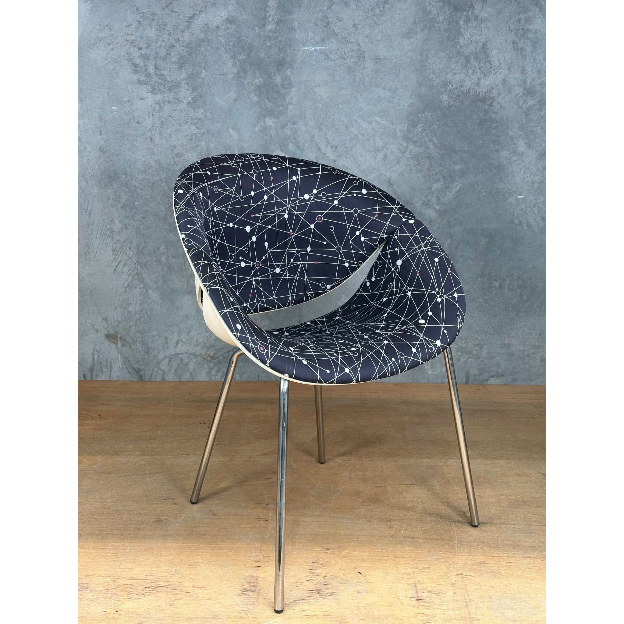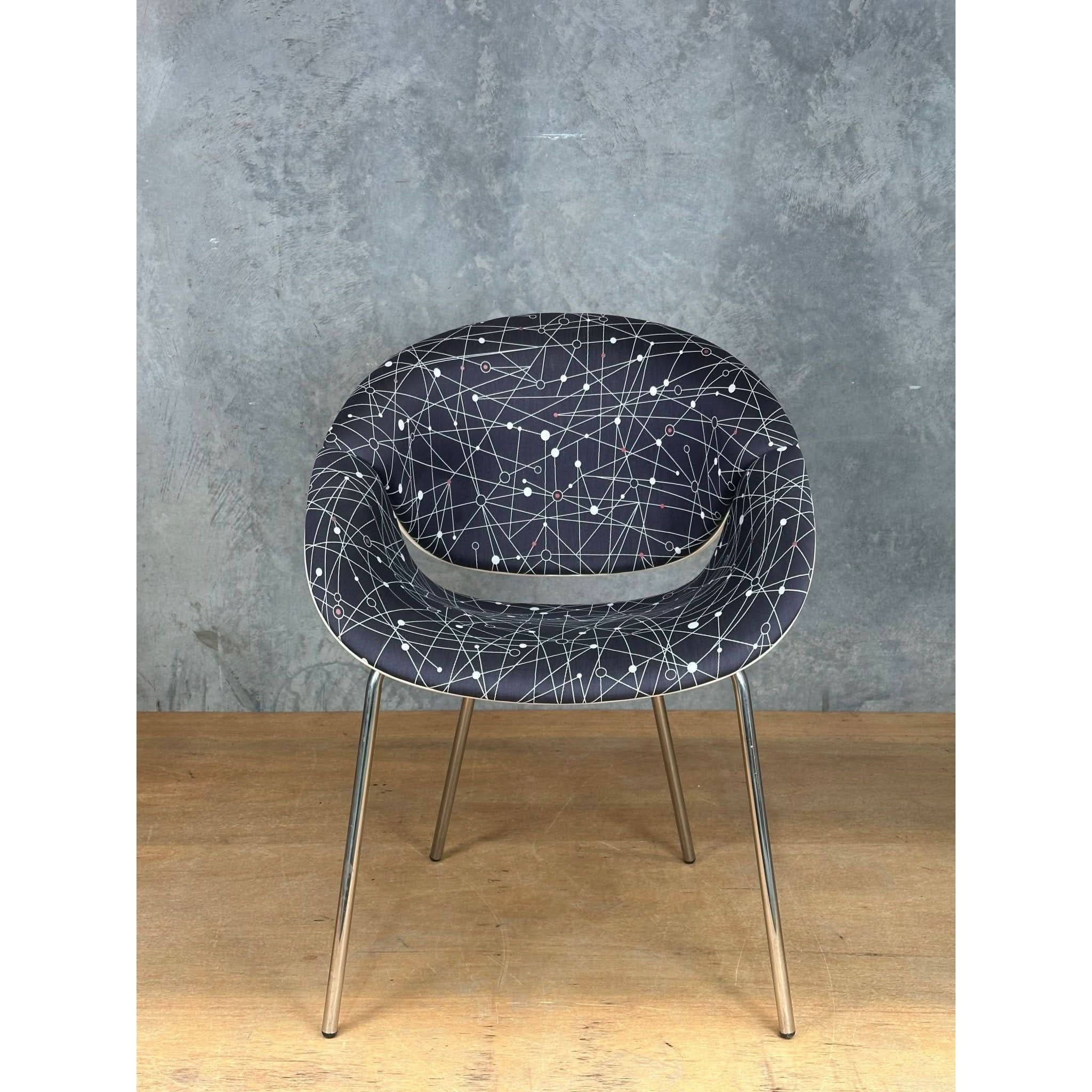 The seat and the back of this chair join to make a smile. They fit the image of a cheerful and happy home, made even more evocative by the patterns.