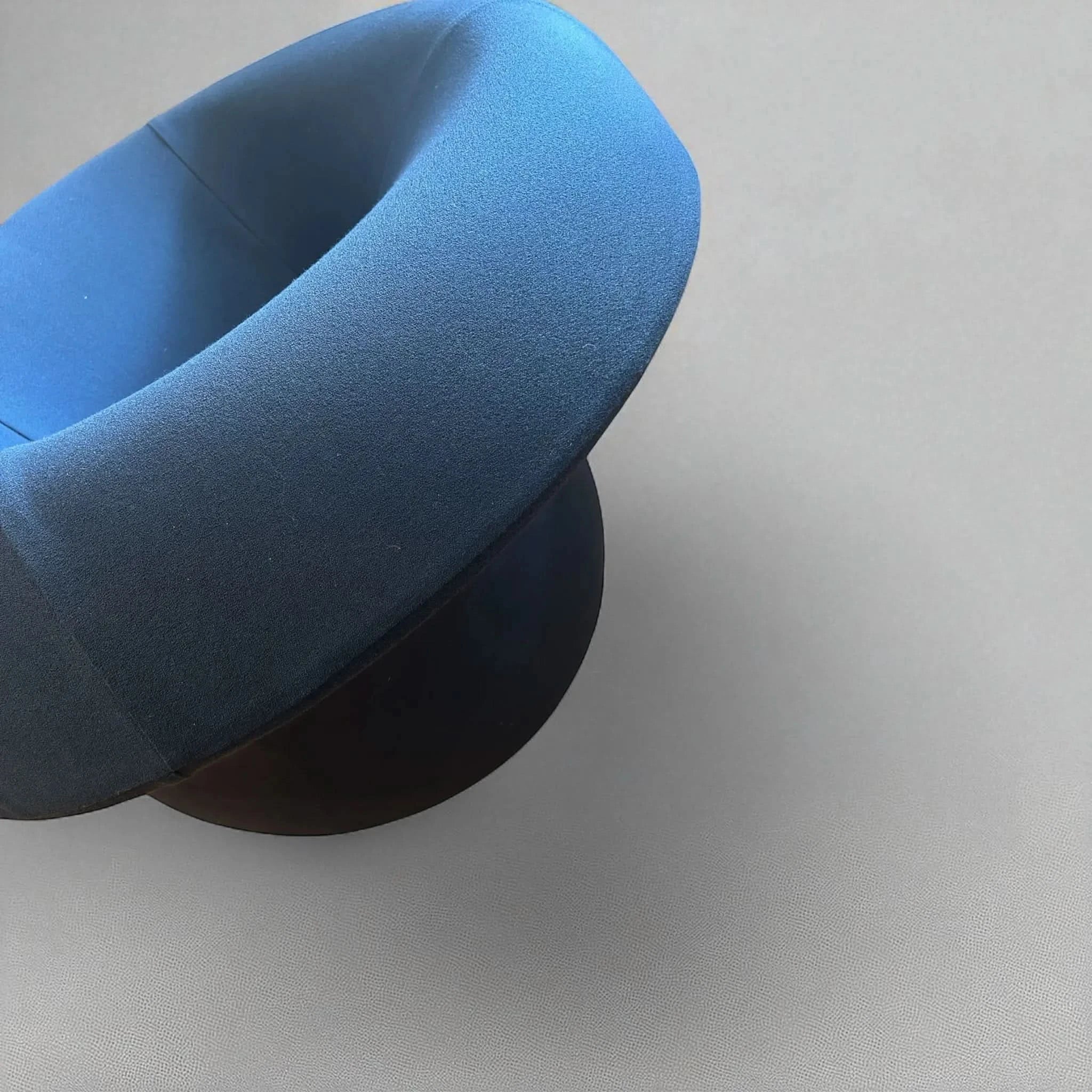 This example has been expertly reupholstered in Sustainable Living Fabric’s Chelsea range, a textile that balances contemporary durability with refines aesthetic appeal. The chair is constructed from resilient foam, ensuring both structure and comfort, while maintaining the integrity of Pesce’s original vision.