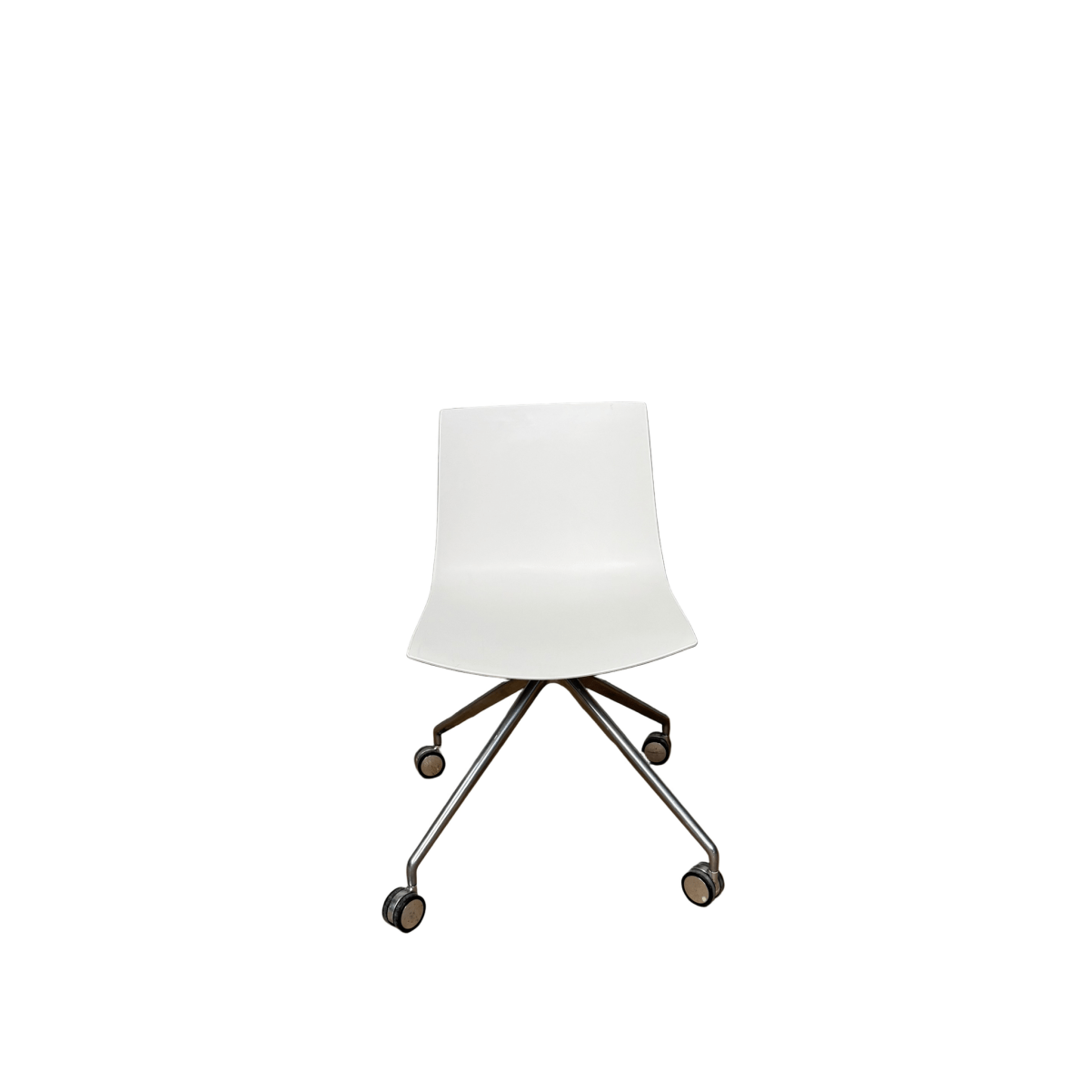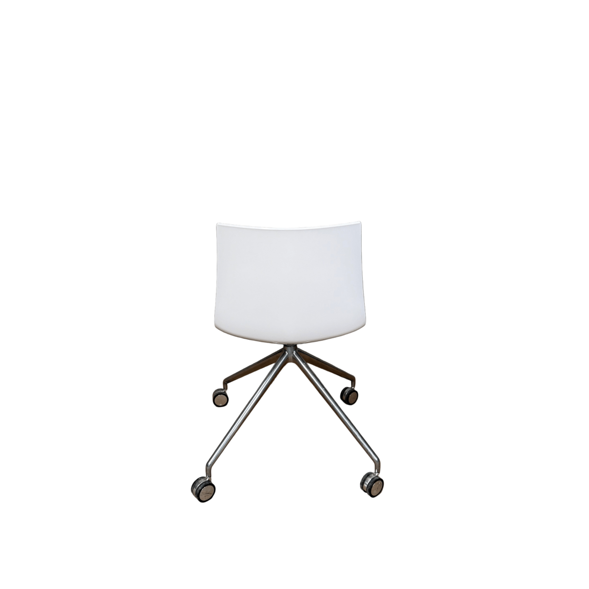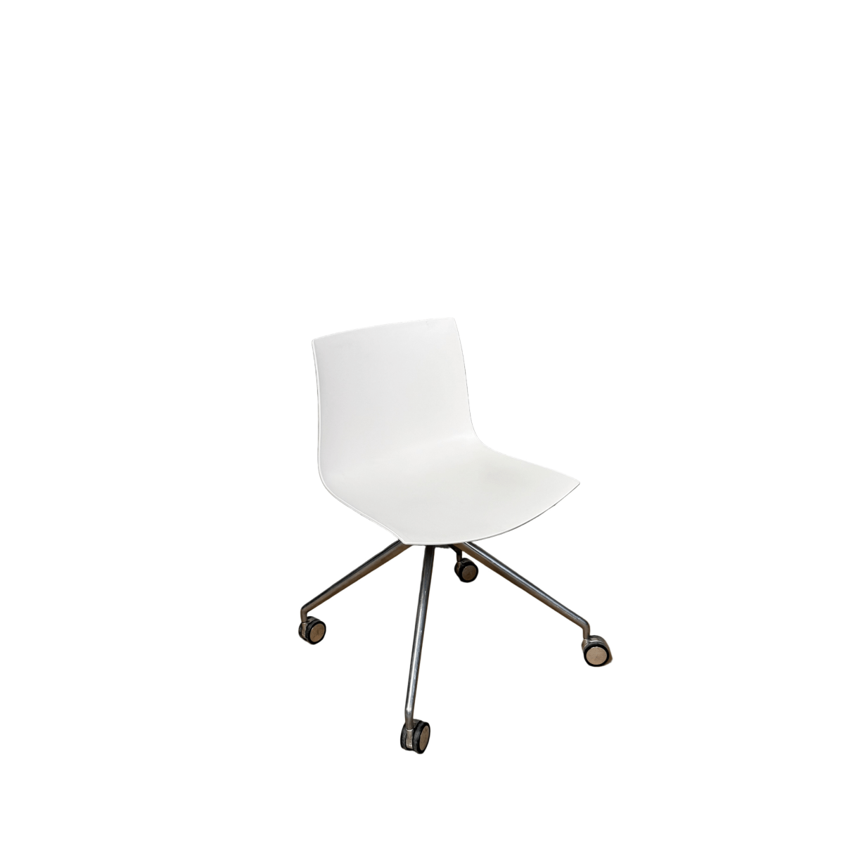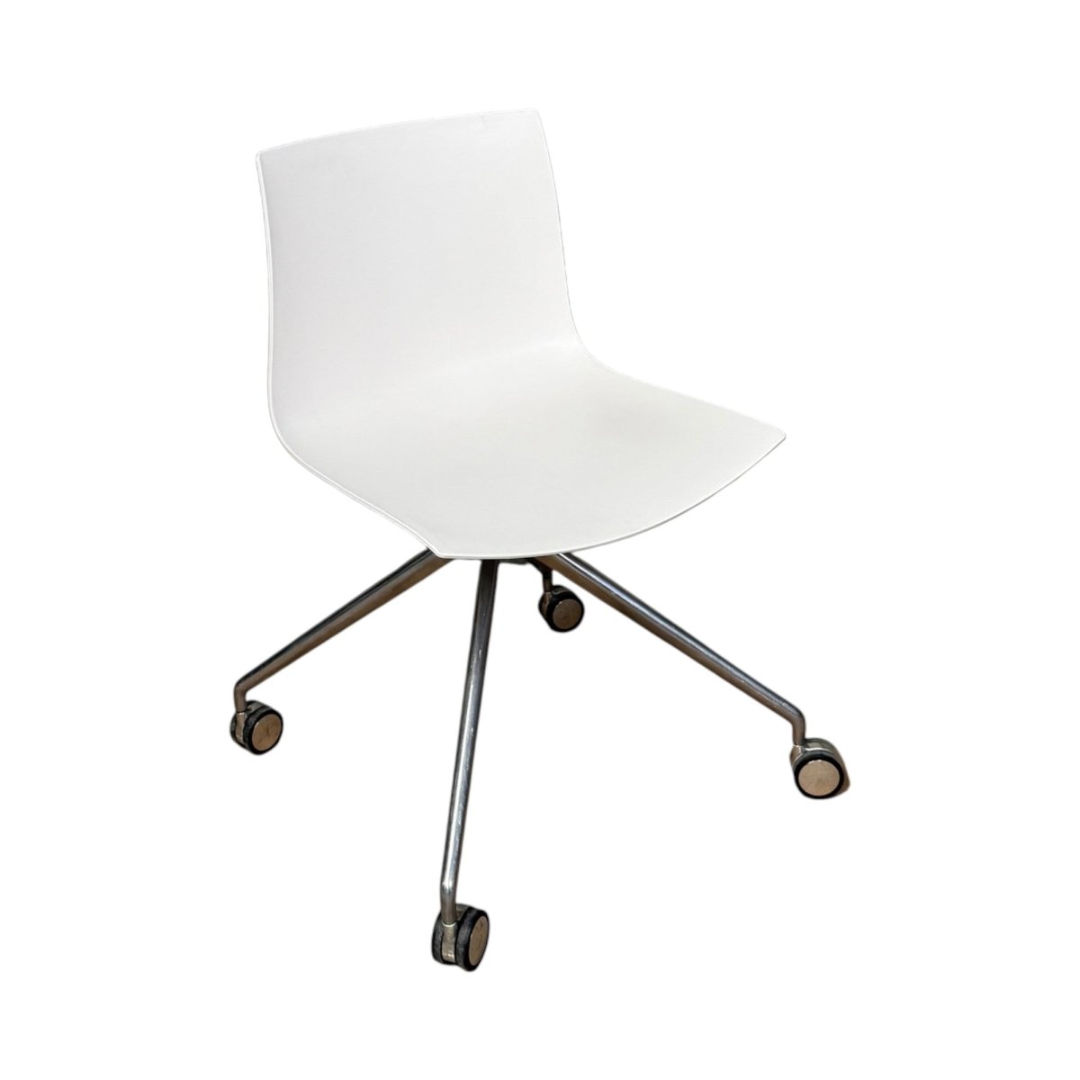 The Arper 46 white office chair combines minimalist Scandinavian design with ergonomic functionality. Featuring a sleek white finish and four-star wheel swivel base, this chair delivers smooth mobility and stability for contemporary workspaces. The thoughtfully engineered seat provides comfortable support for extended periods, while its refined silhouette complements modern office aesthetics. Ideal for professionals seeking a balance of style and practical performance.