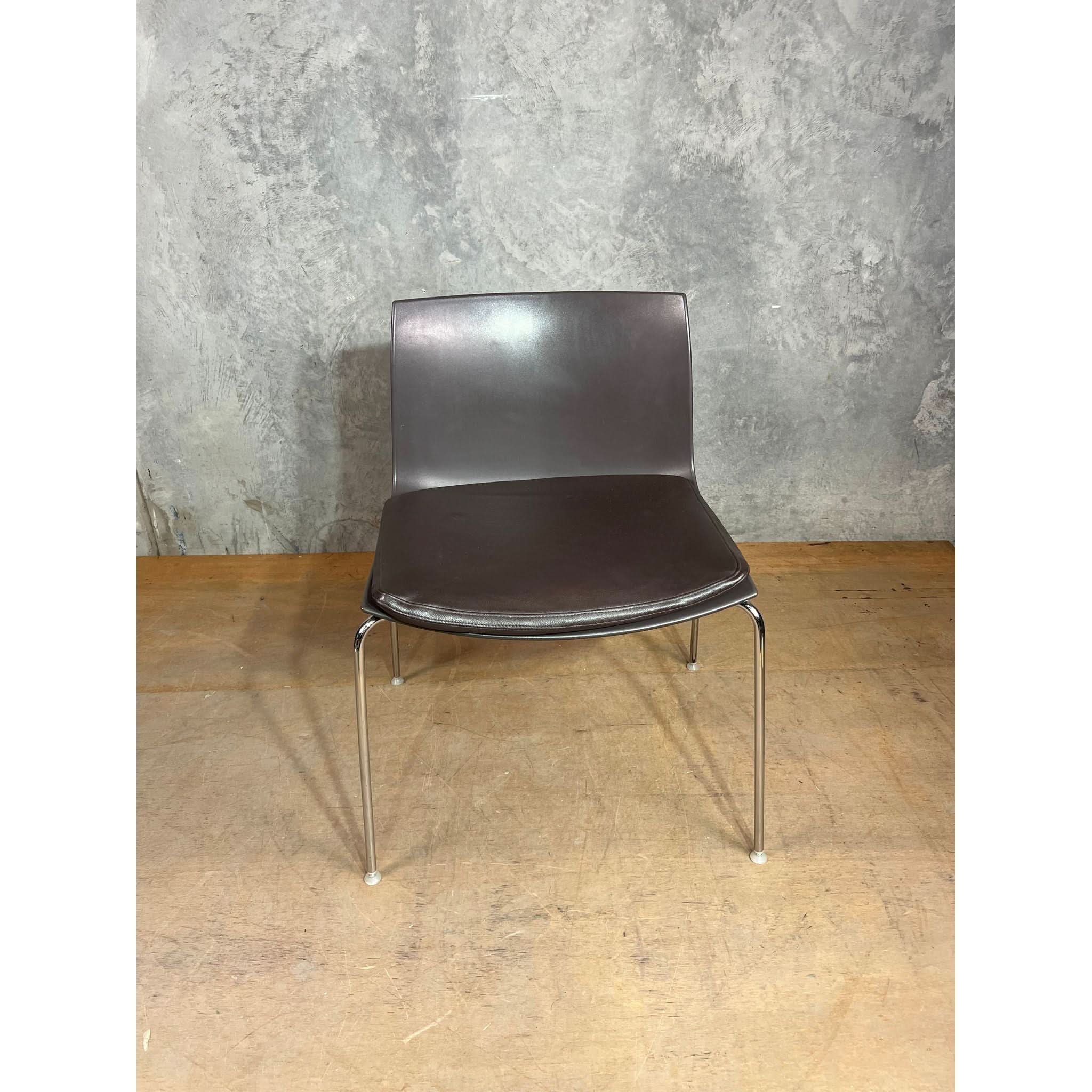 This fabulous Catifa 46 dining chair, designed by Lievore Altherr Molina has sleek, clean, contemporary look. Created for the Italian manufacturer Arper, the shape of the seat provides great comfort and a slim line profile. This versatile piece can be used as a dining, conference, side or guest chair. It will add drama and sensuality to any modern interior with its mid century sensibility.