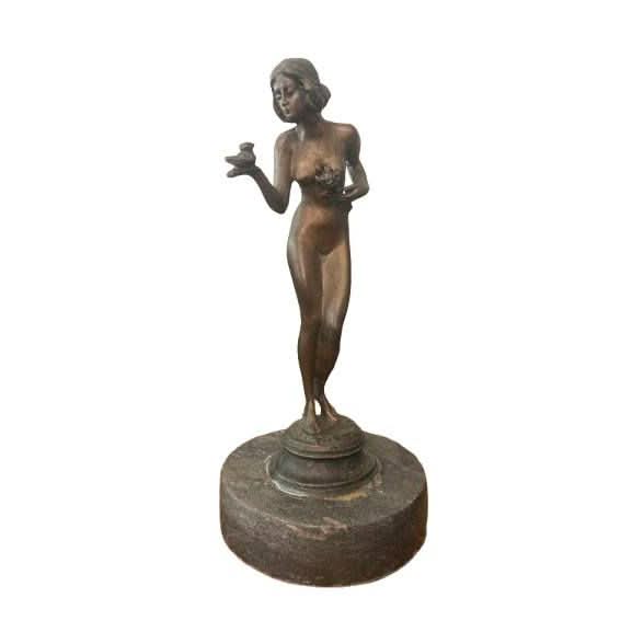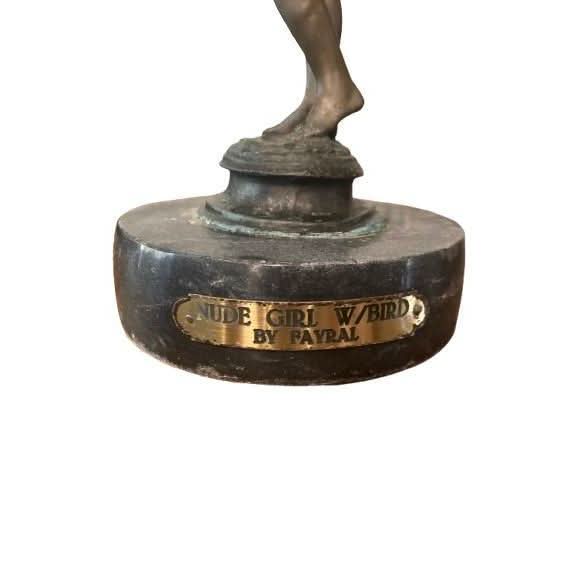 Lovely Fayral Bronze Statue titled "Nude girl with bird" in good condition.