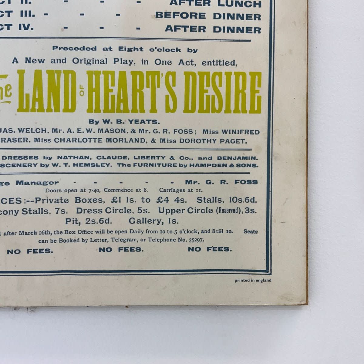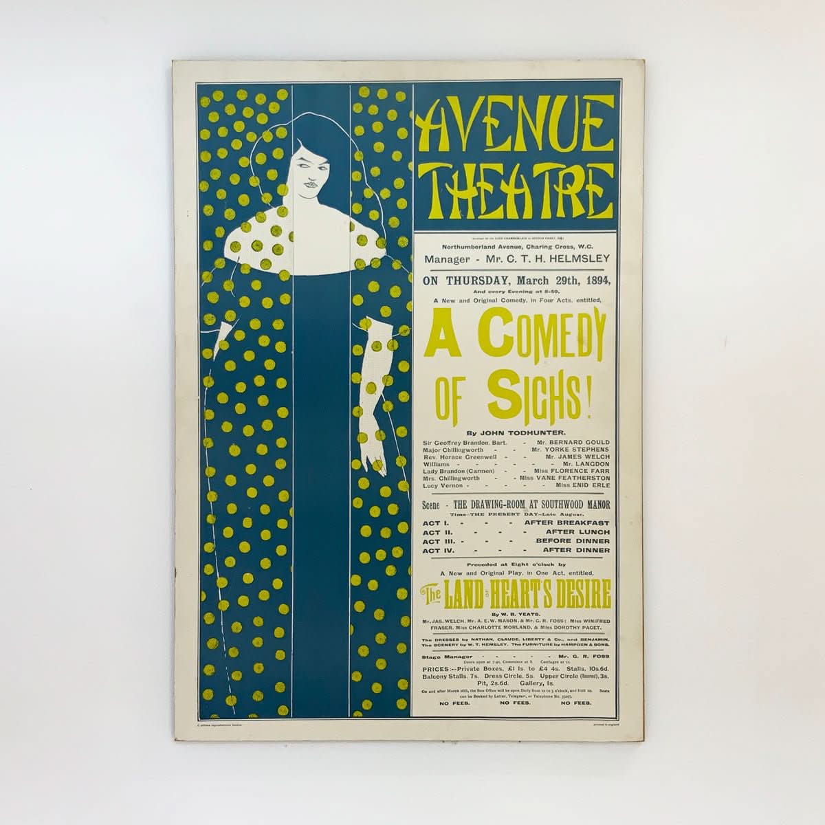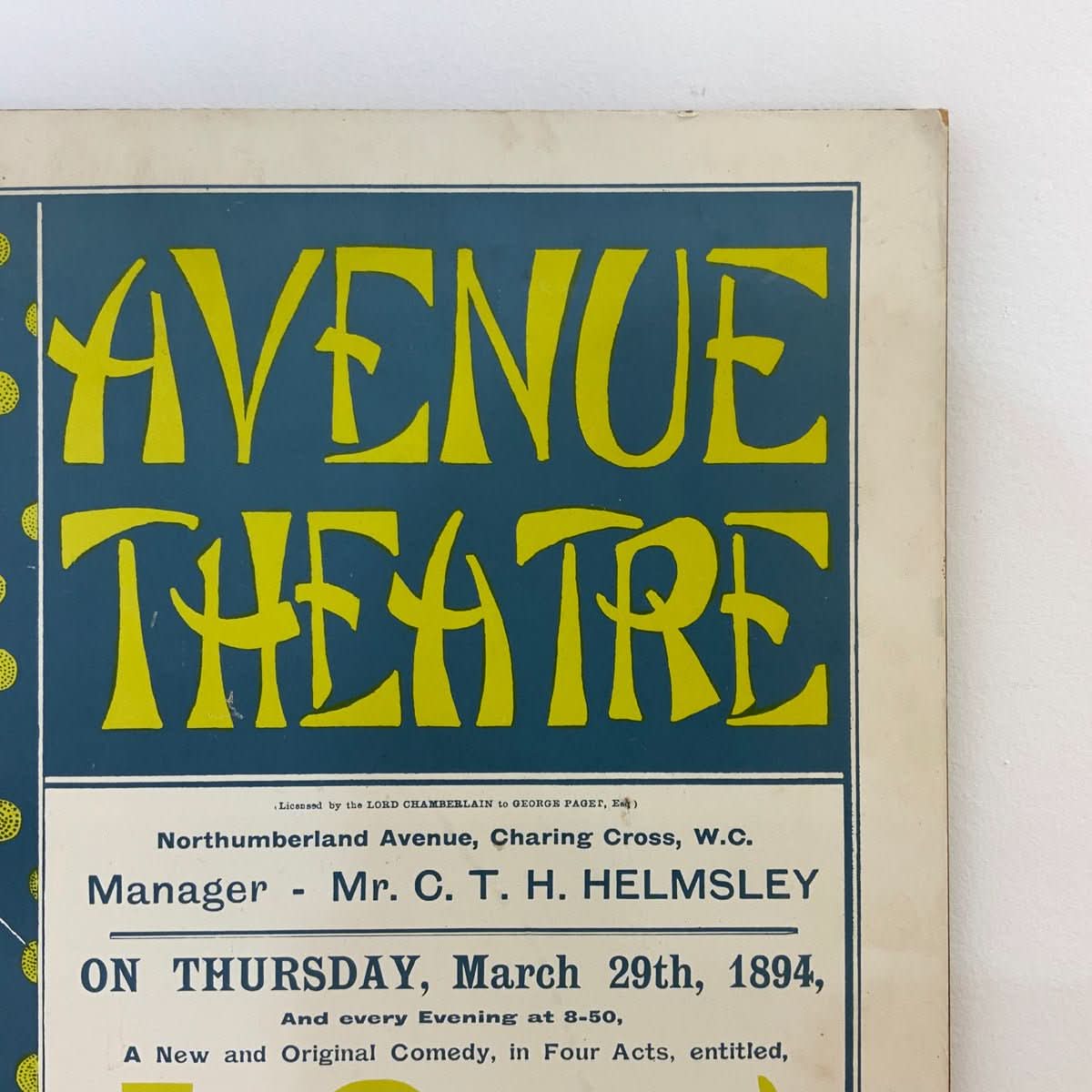 Vintage reproduction print of 1894 Avenue Theatre poster, board mounted. Please see images for condition.