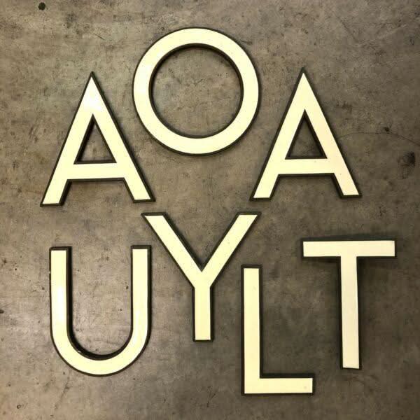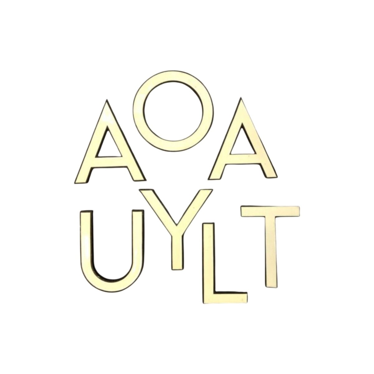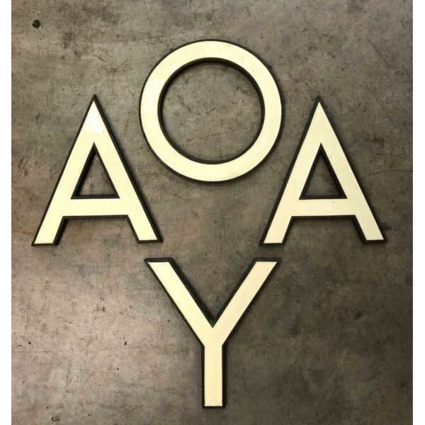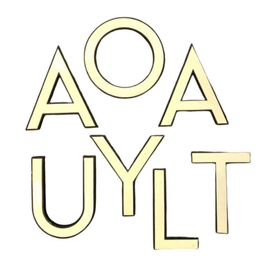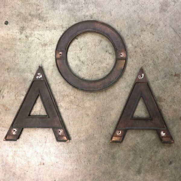 Large brass and cream enamel Deco 1930’s industrial building letters. Sold as a set or individually for $135 each.