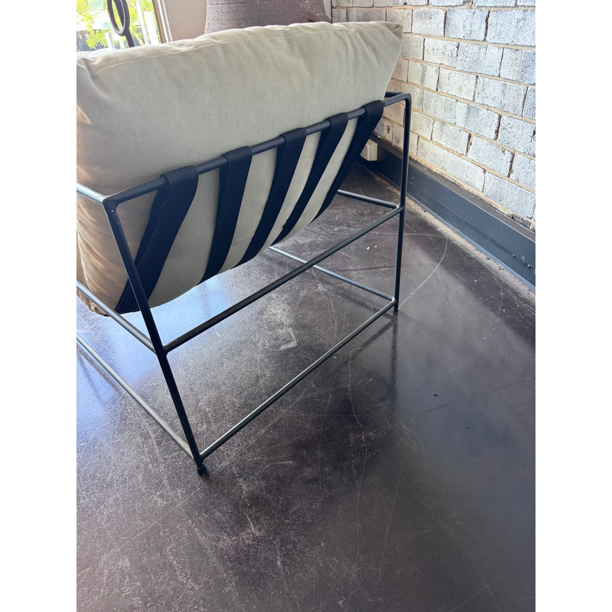 - Minimalist black steel frame