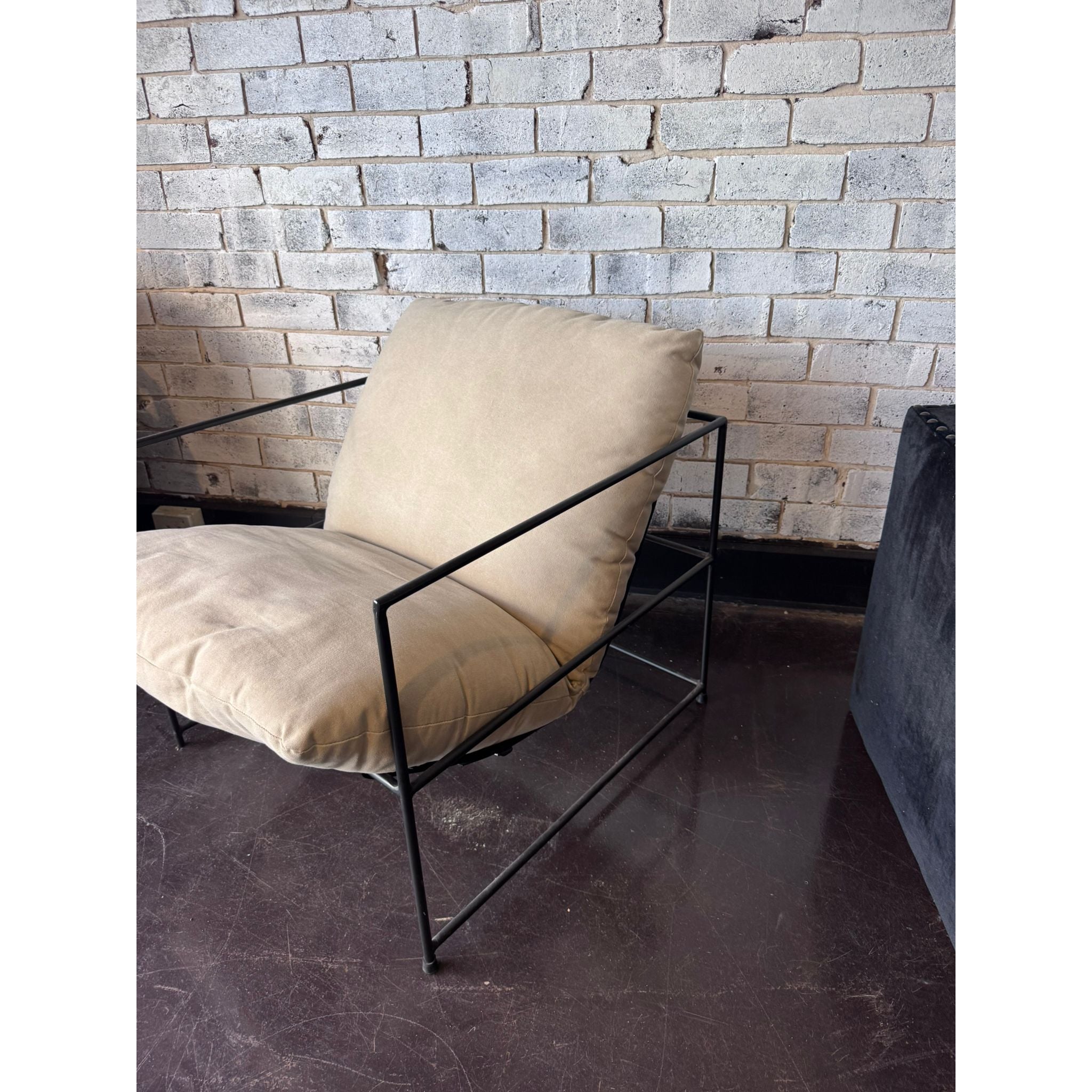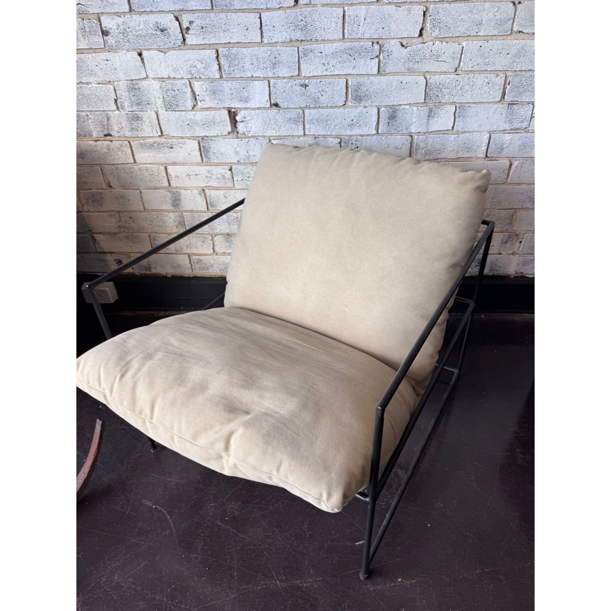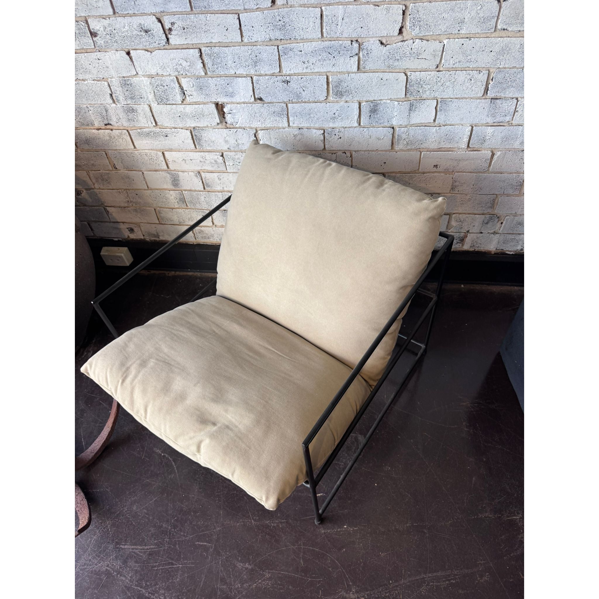 - Deep, plush beige seat and back cushions