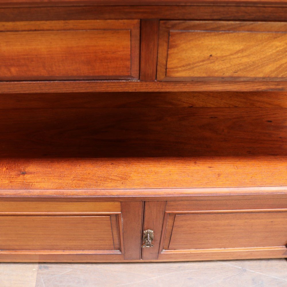 It features two drawers above a large open display area, with cupboard storage below — perfect for serving, storing, or displaying. The fine cedar grain and soft patina reflect its age and quality, while the simple lines allow it to blend beautifully into any room.