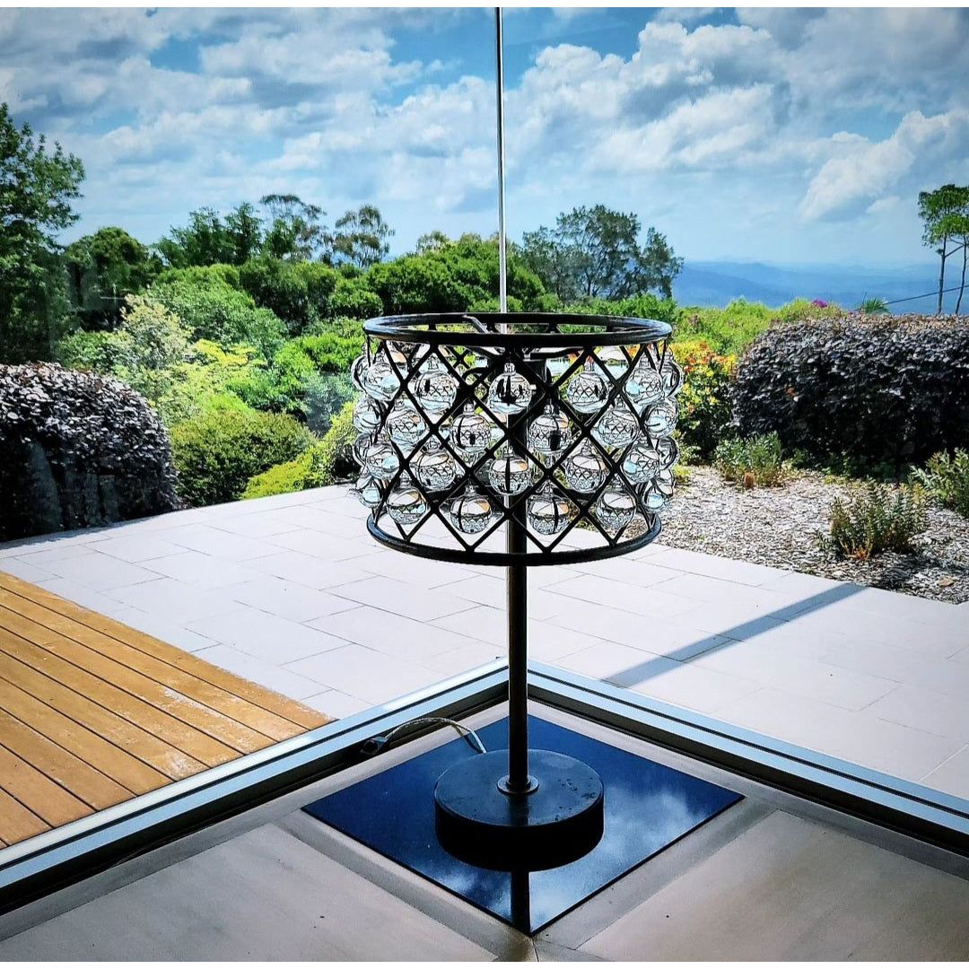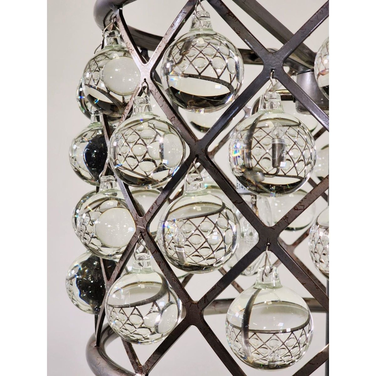 The design resembles a celestial arrangement of suspended planets. Each sphere intricately captures and reflects the light, creating a mesmerising interplay of reflections and refractions. The result is an almost kaleidoscopic display, showcasing patterns of galactic beauty reminiscent of a cosmic dance.