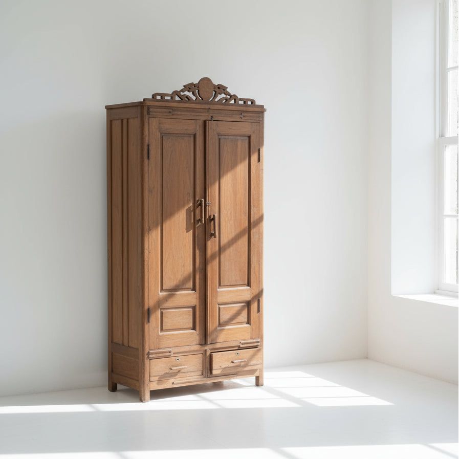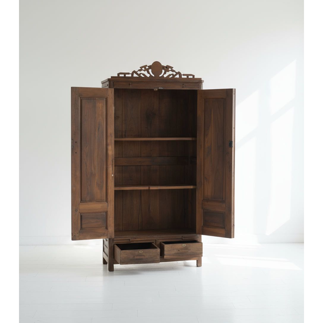 This wardrobe is as functional as it is decorative. The rich, warm patina of the aged teak brings depth and authenticity to the surface, making it ideal as a statement piece in a modern or traditional interior.