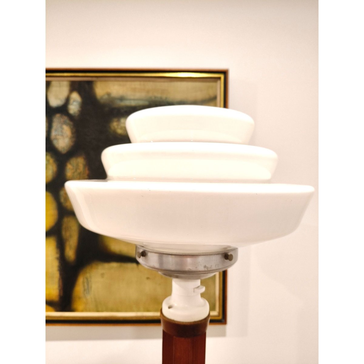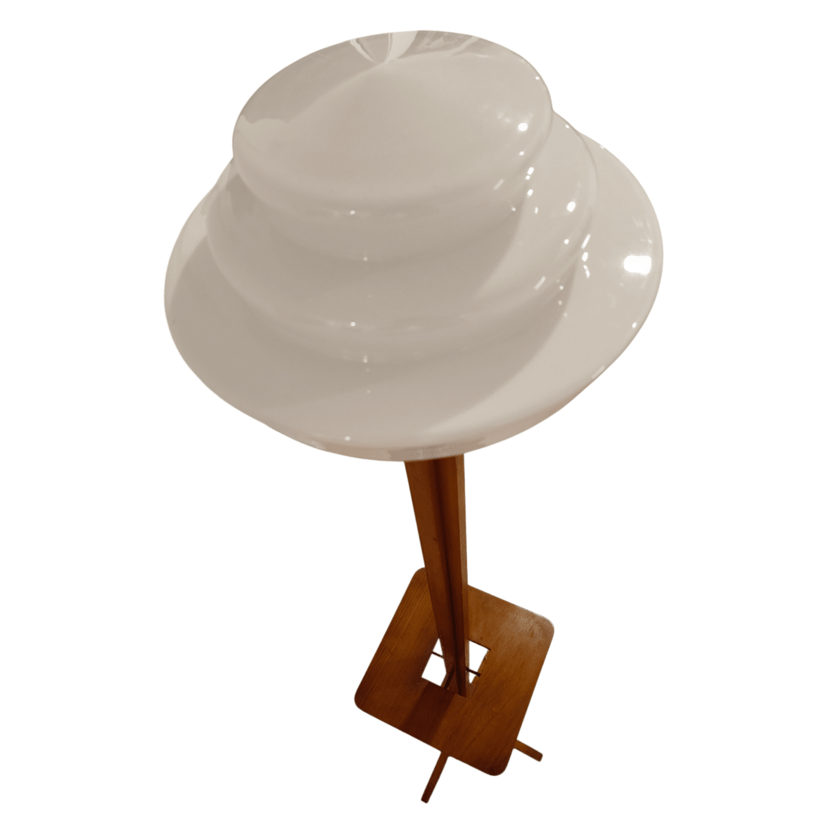 A truly unique piece paired with an art deco beehive milk glass shade.