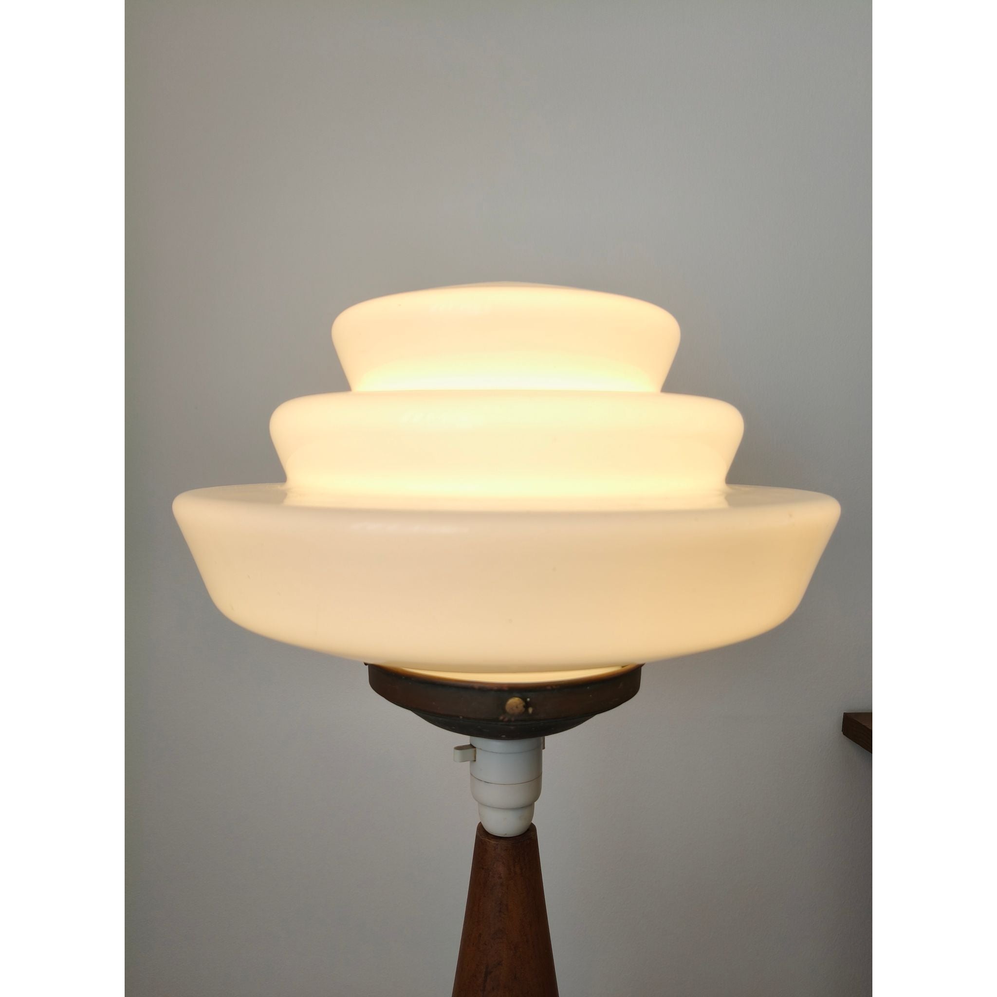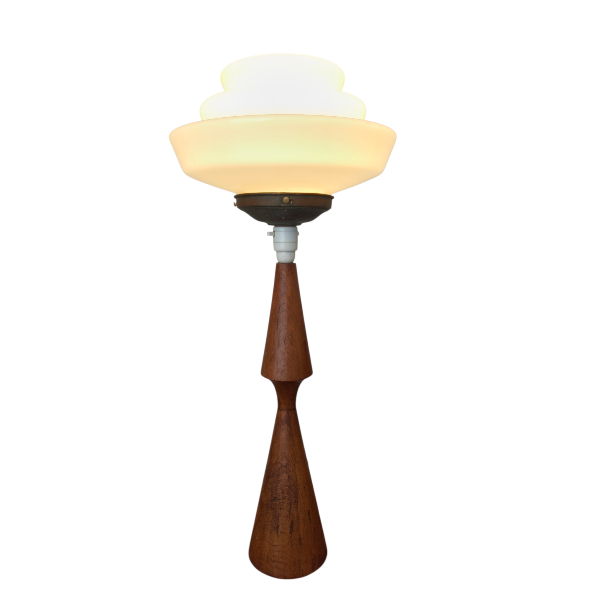 Solid teak. Heavy. Unique one off piece. Comes with glass shade as shown.