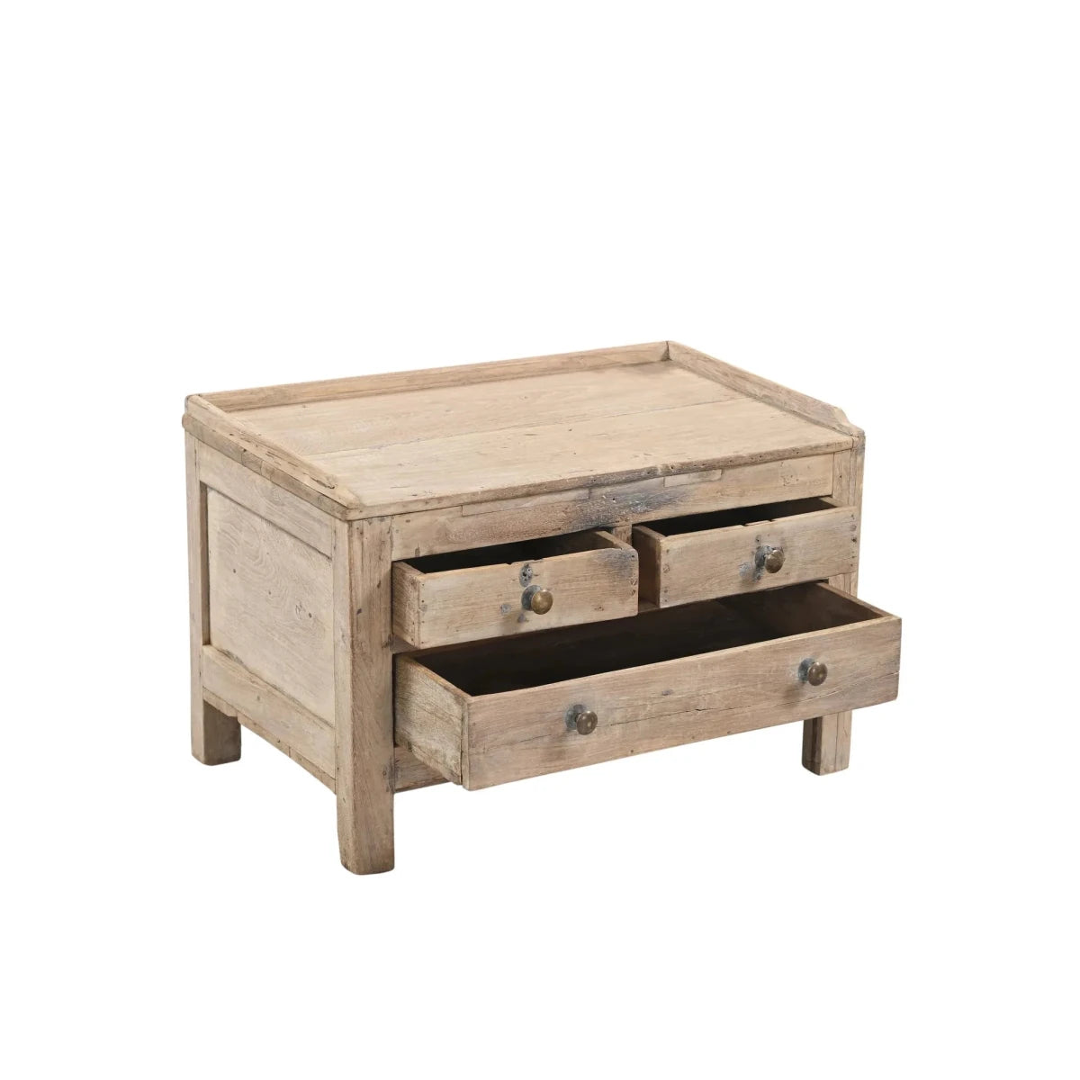 originally used as a small work table this vintage Indian teak chai table now re-purposed as a kids bed side ,