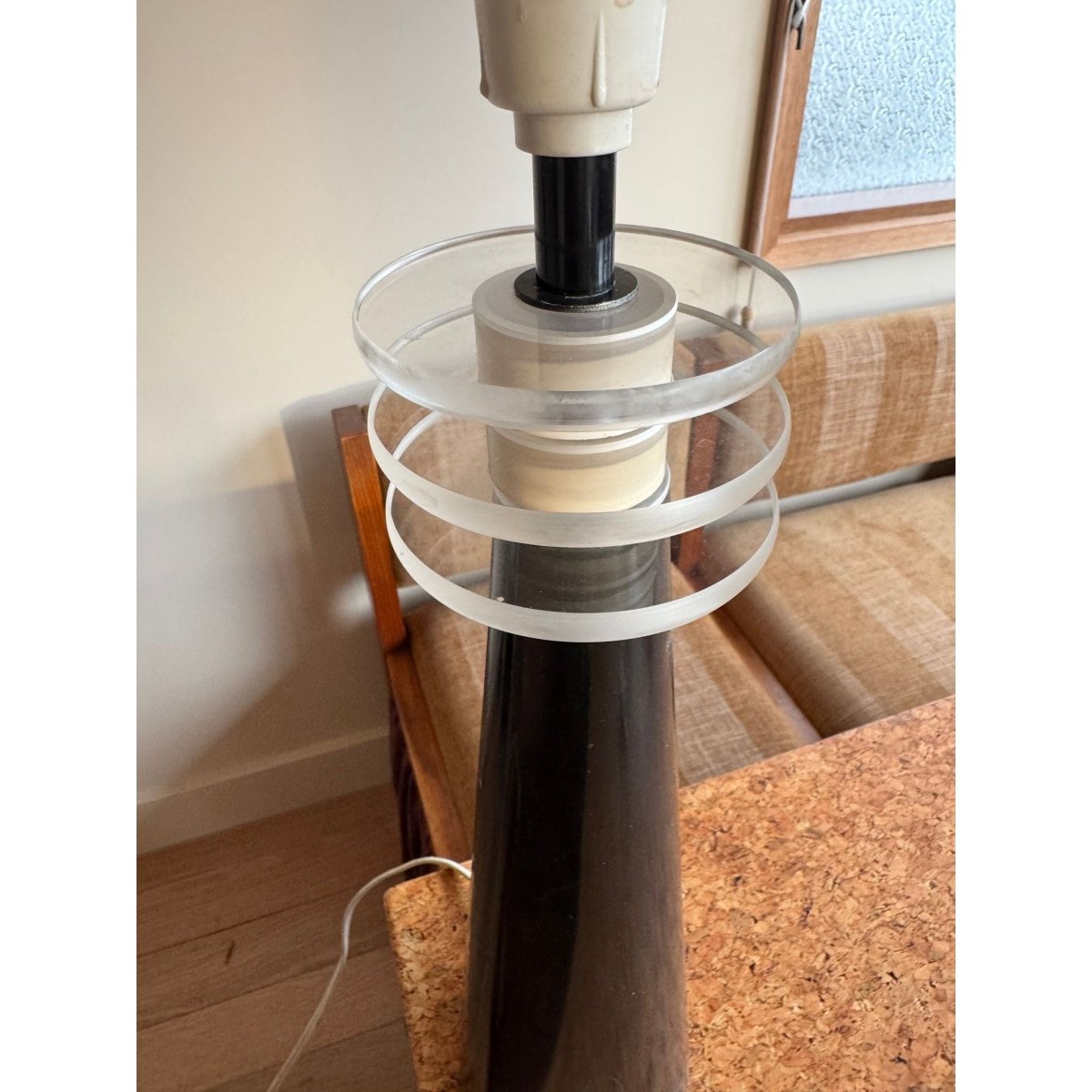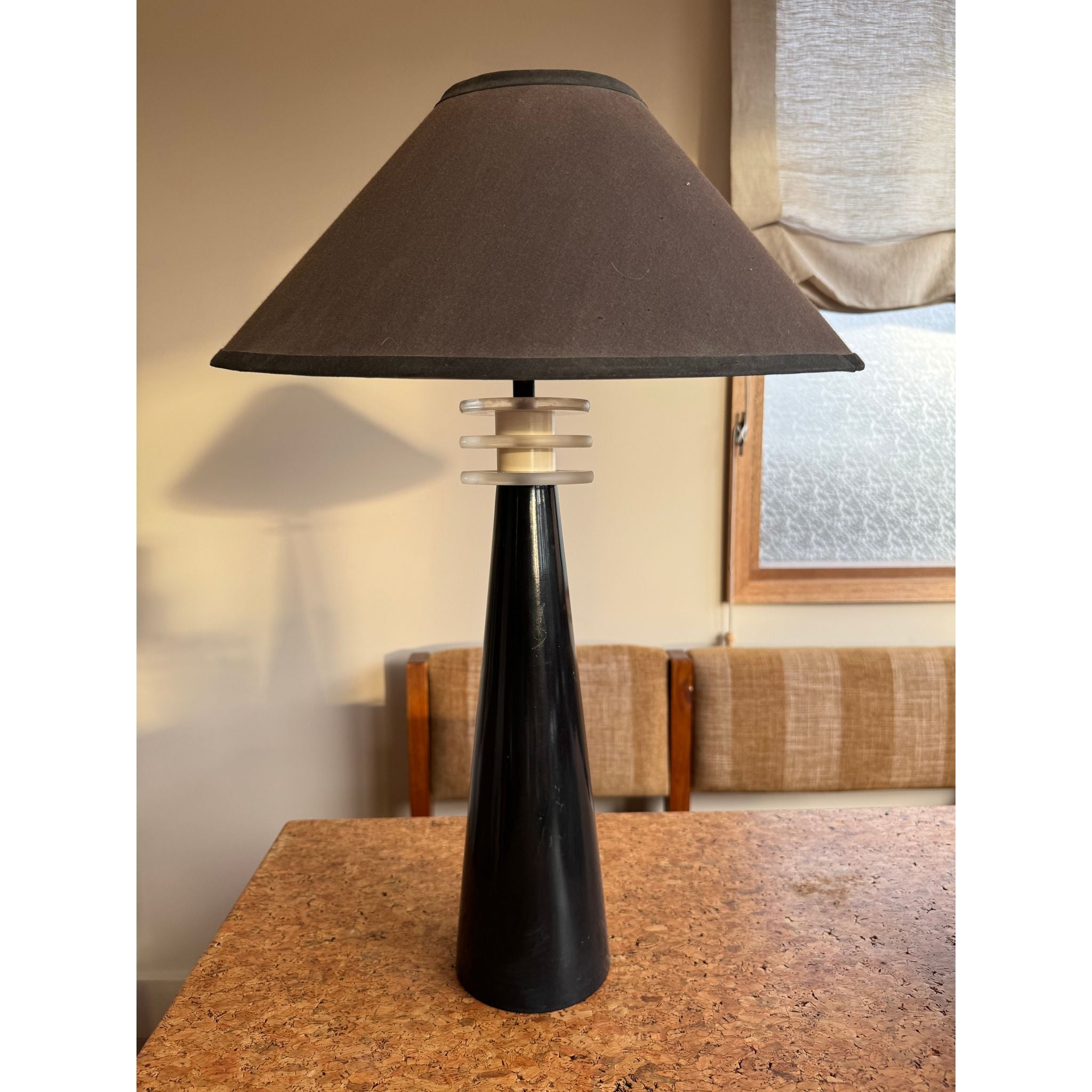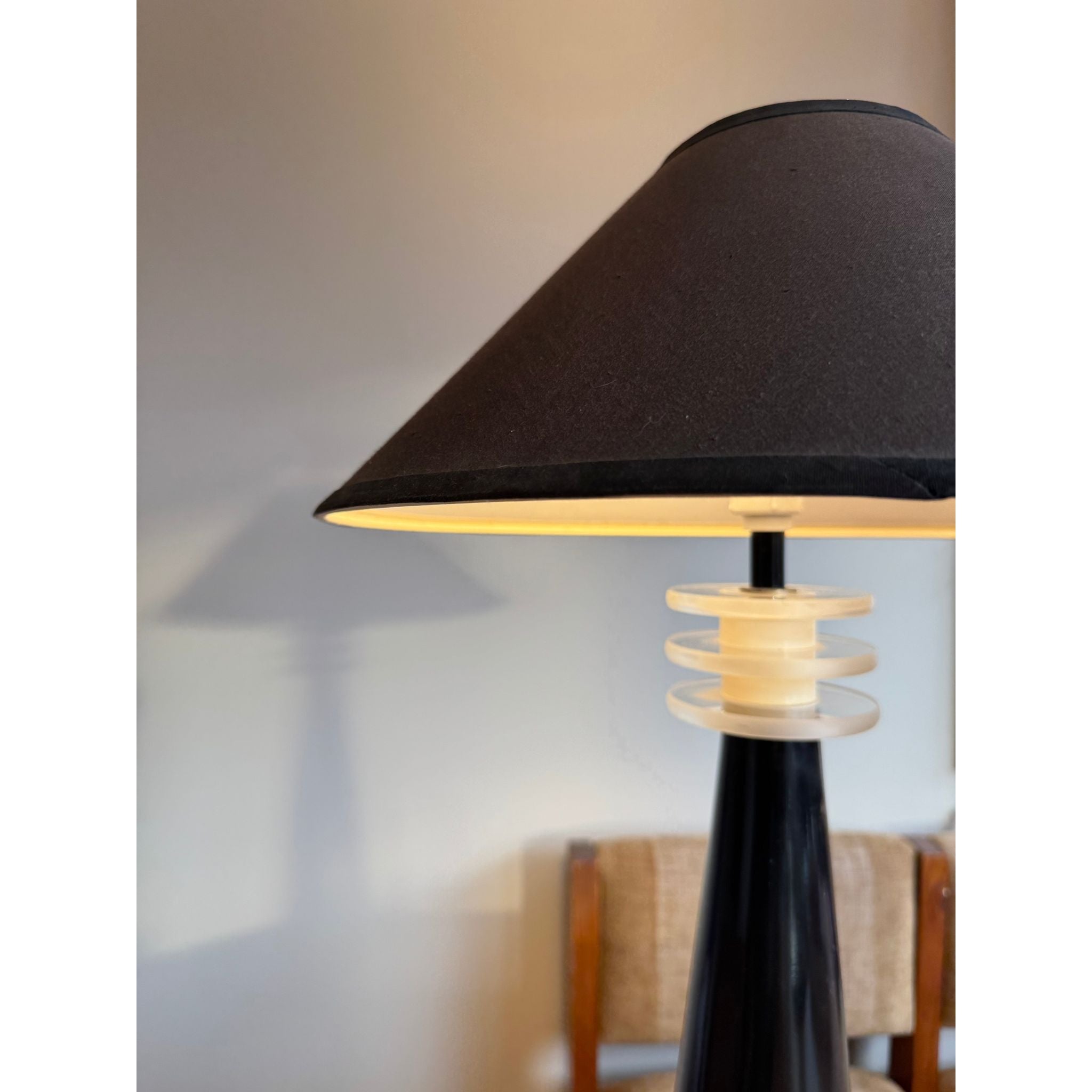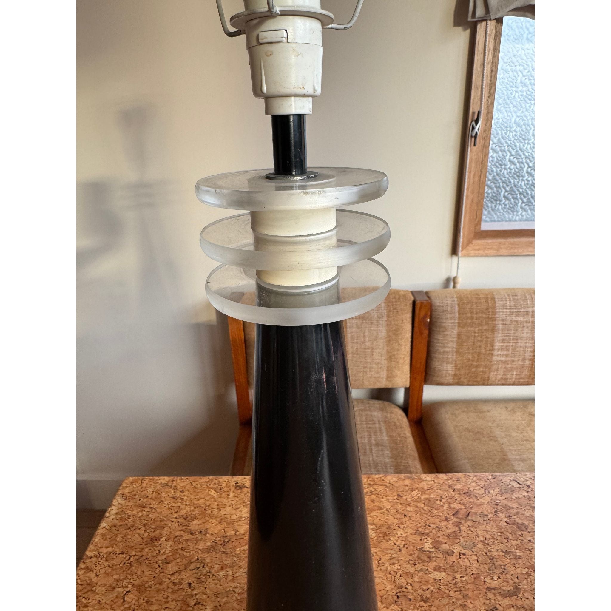 Gorgeous vintage gloss black ceramic lamp with lucite detail.